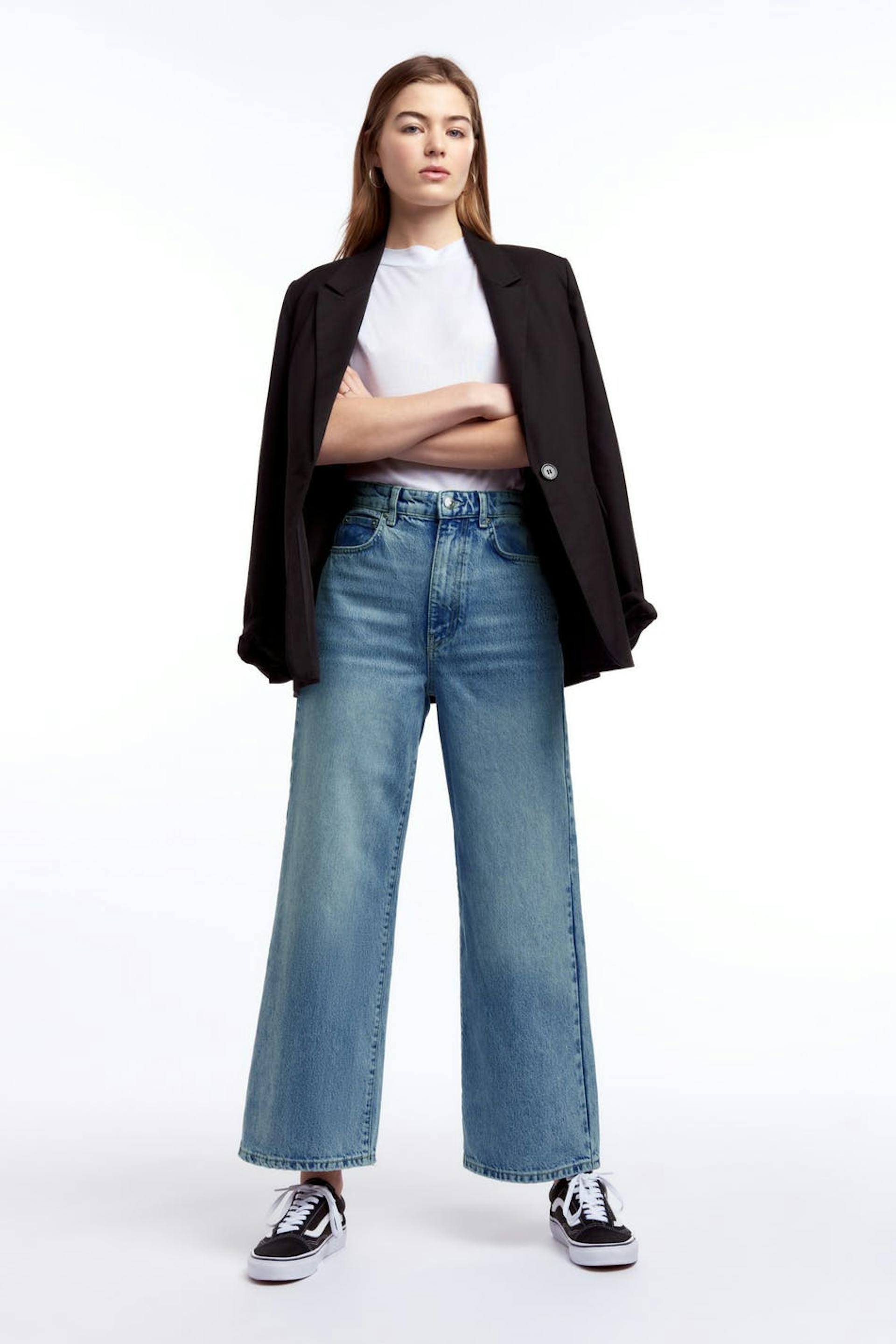 Petite jeans with a regular fit. The jeans are light-blue, petite and non-stretch. They are made of denim and have a high waist and wide, short legs. Perfect for those who are 160 cm (5 ft 3 in.) or shorter.