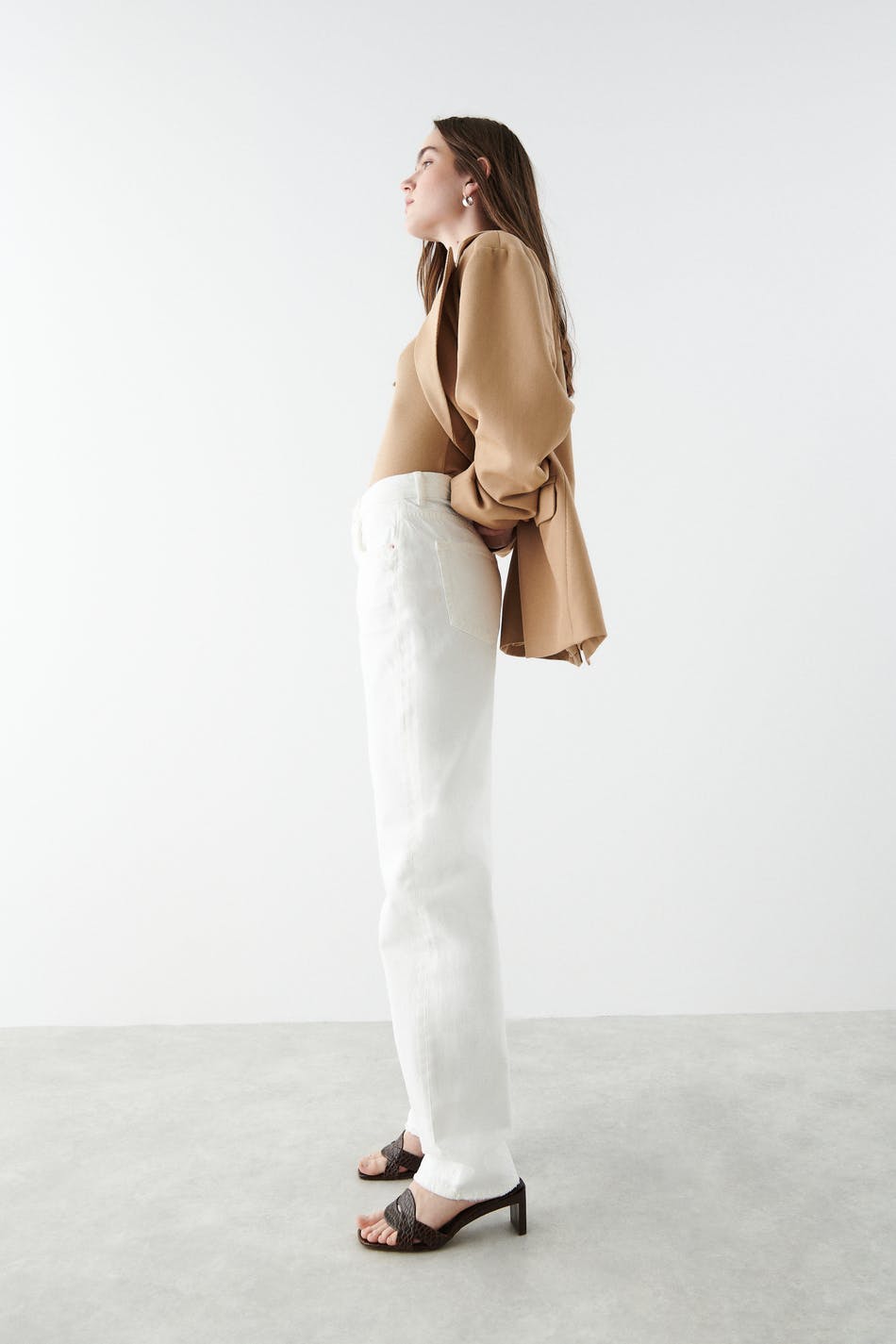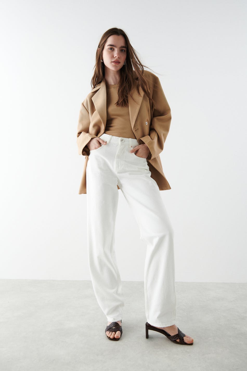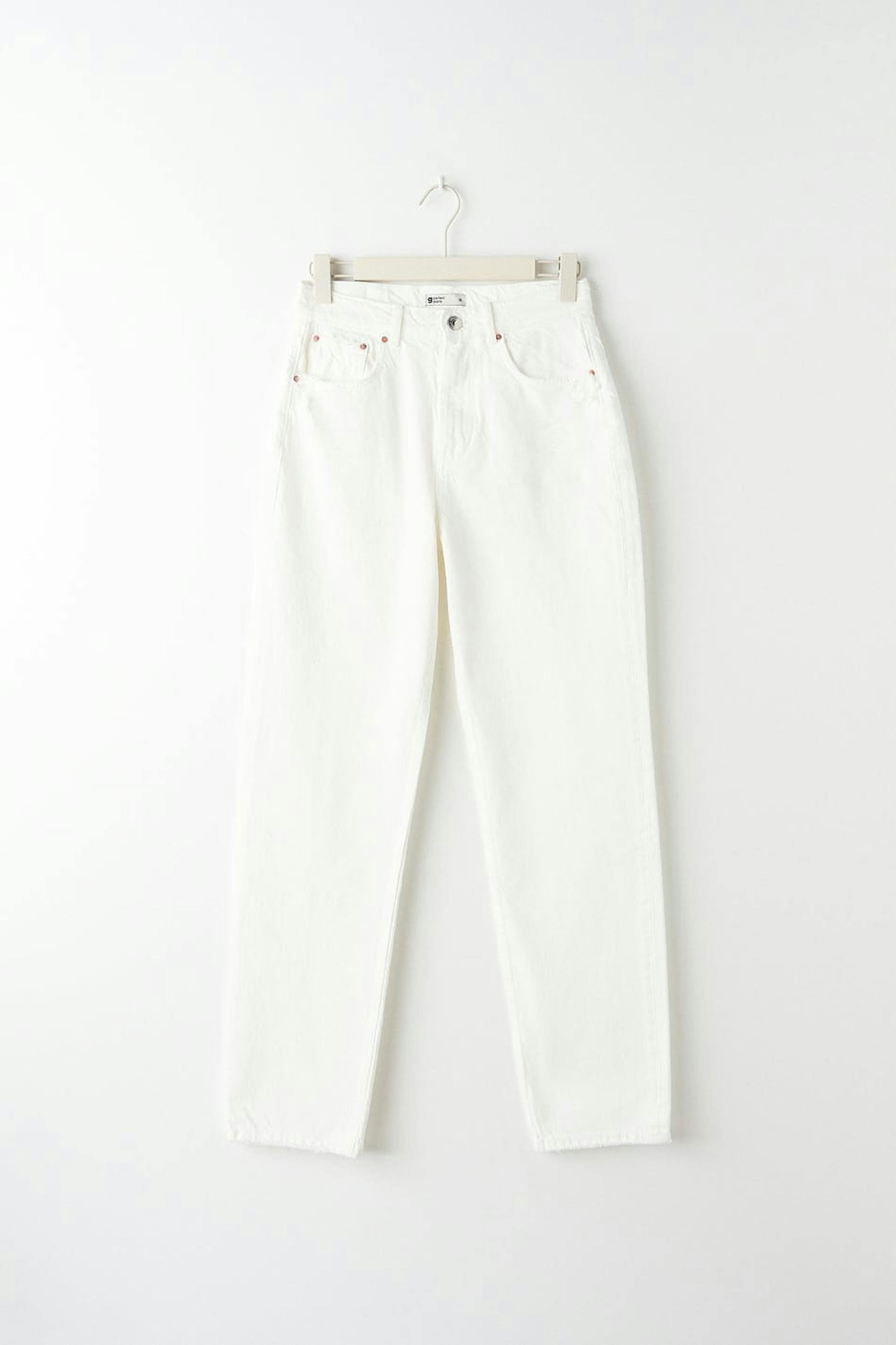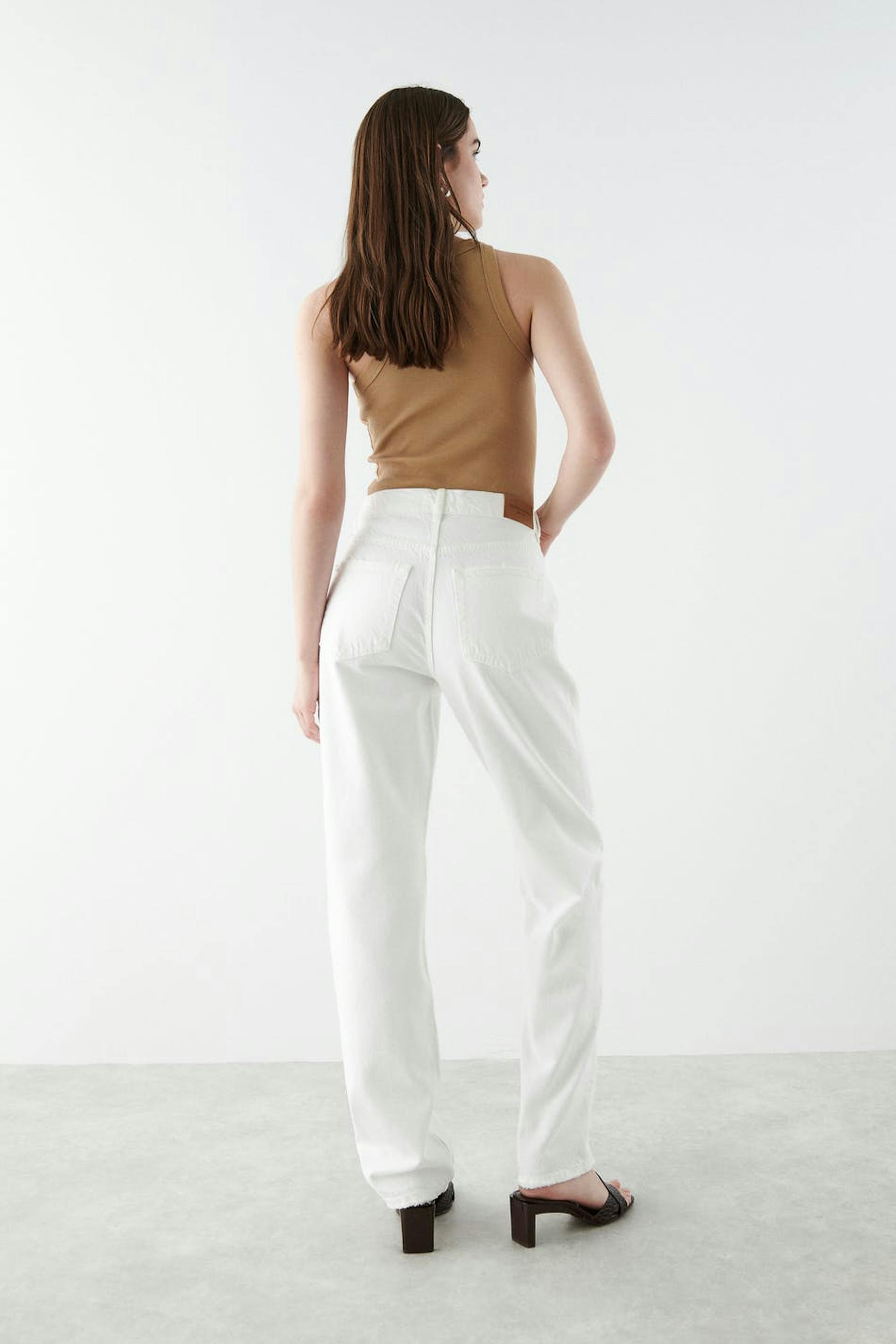 Jeans with high waist. The jeans is white and has a straight, 90s inspired fit. It is made of non-stretch denim and has trouser legs with normal length. Use our size guide to find your size.