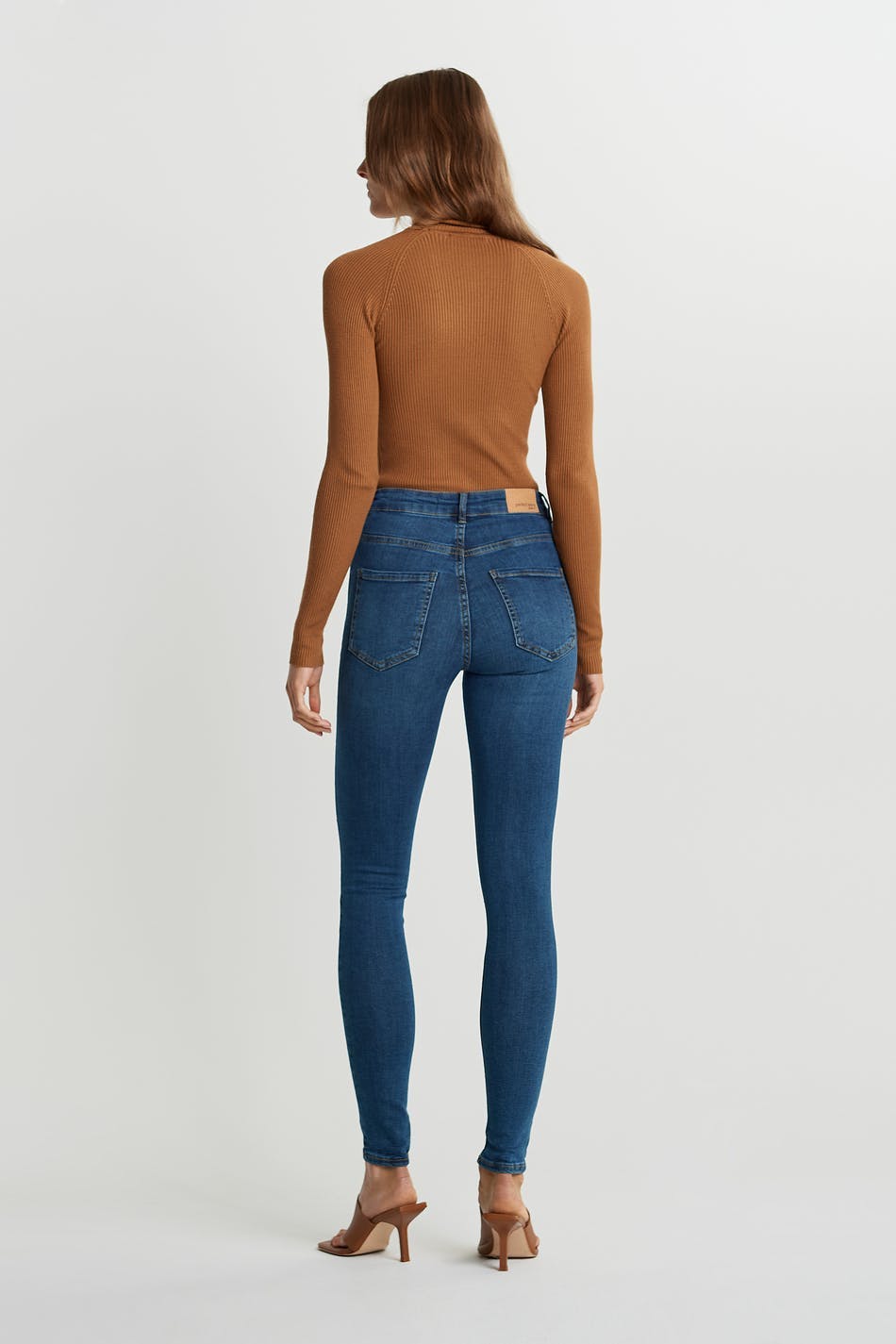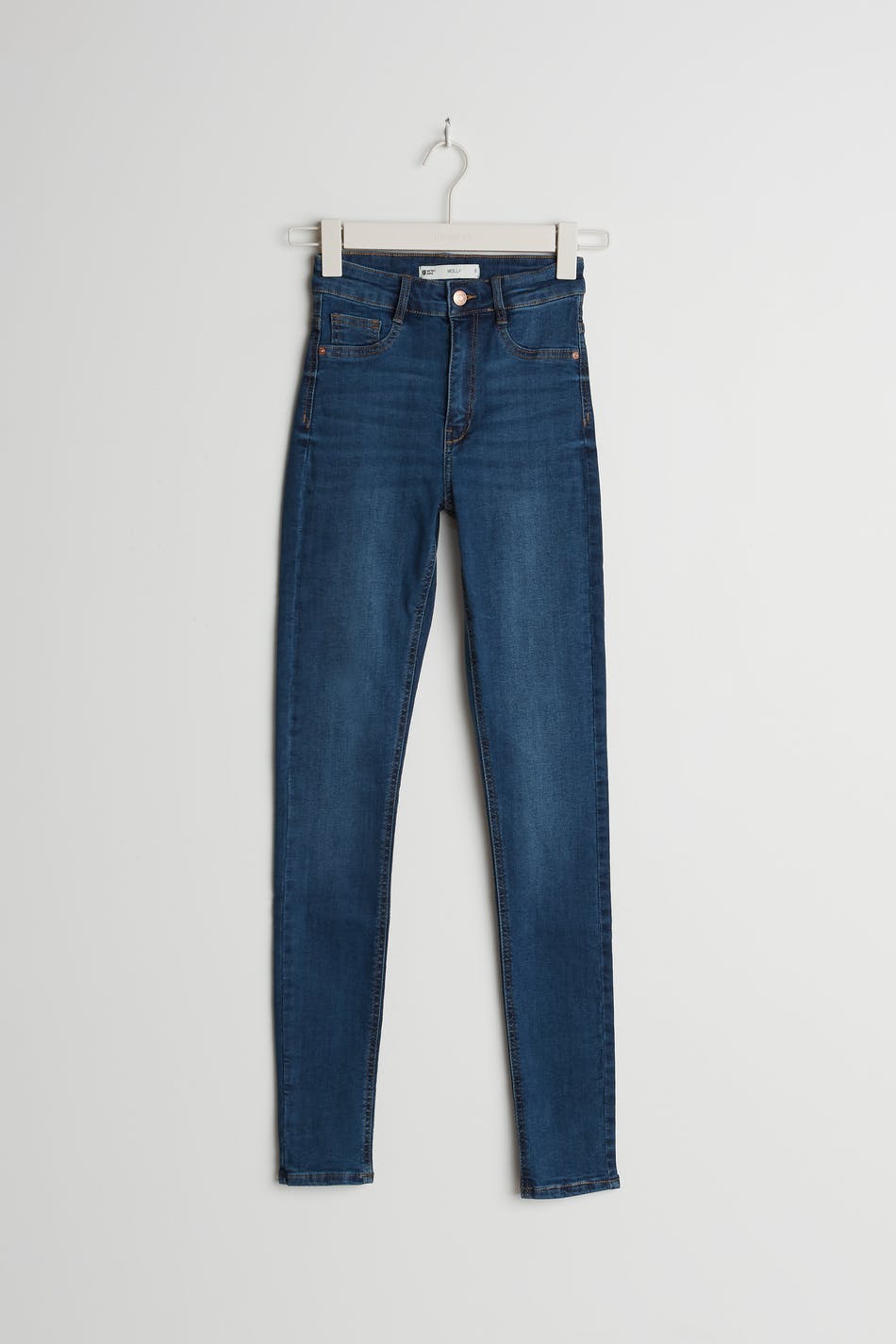 Soft highwaist jeans with a fitted fit. The jeans is blue and comfortable and has longer leg length. It has a skinny fit, fake pockets in front and a superstretch. Perfect for those who are 175 cm (5 ft 9 in.) or taller.