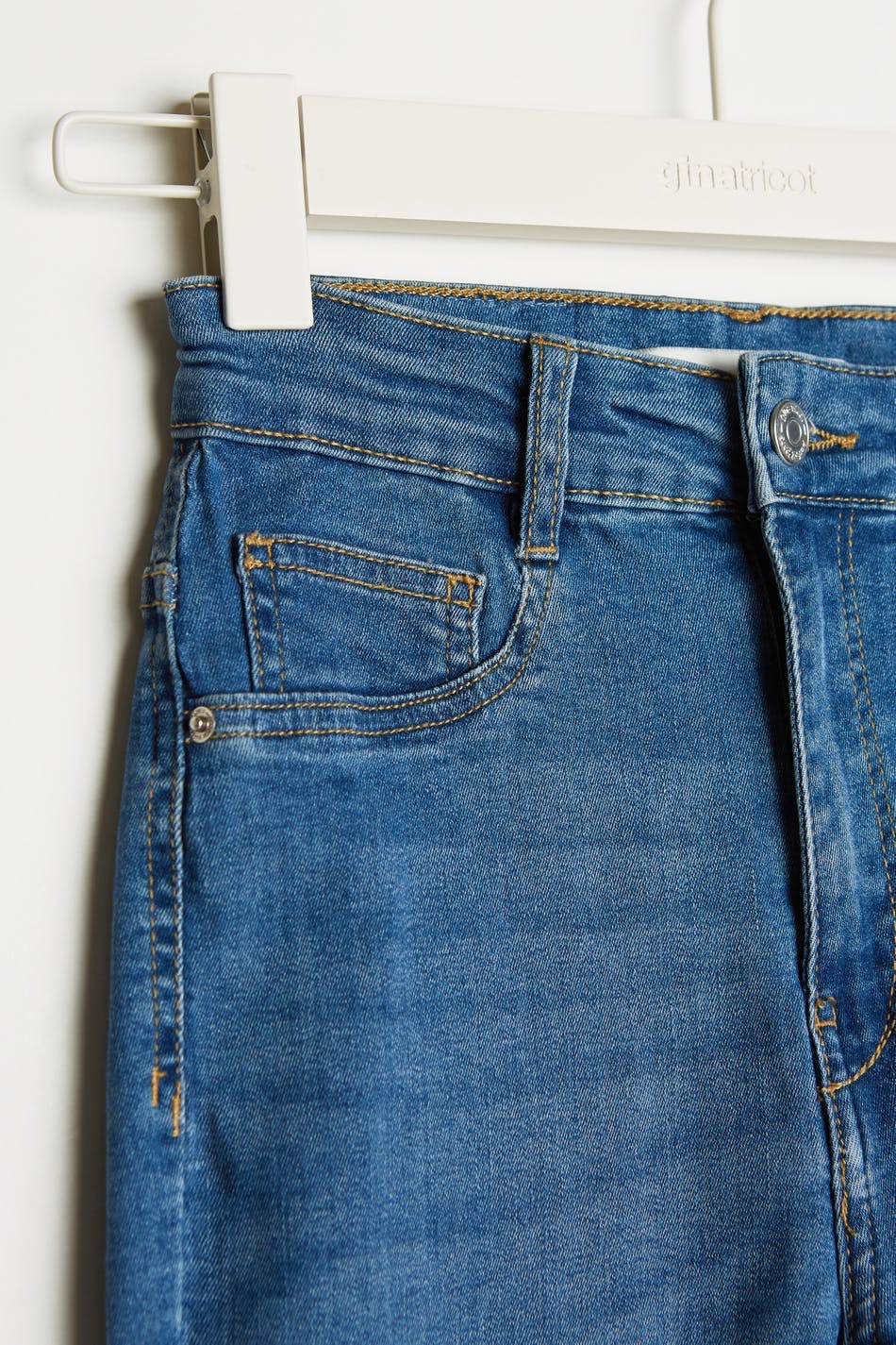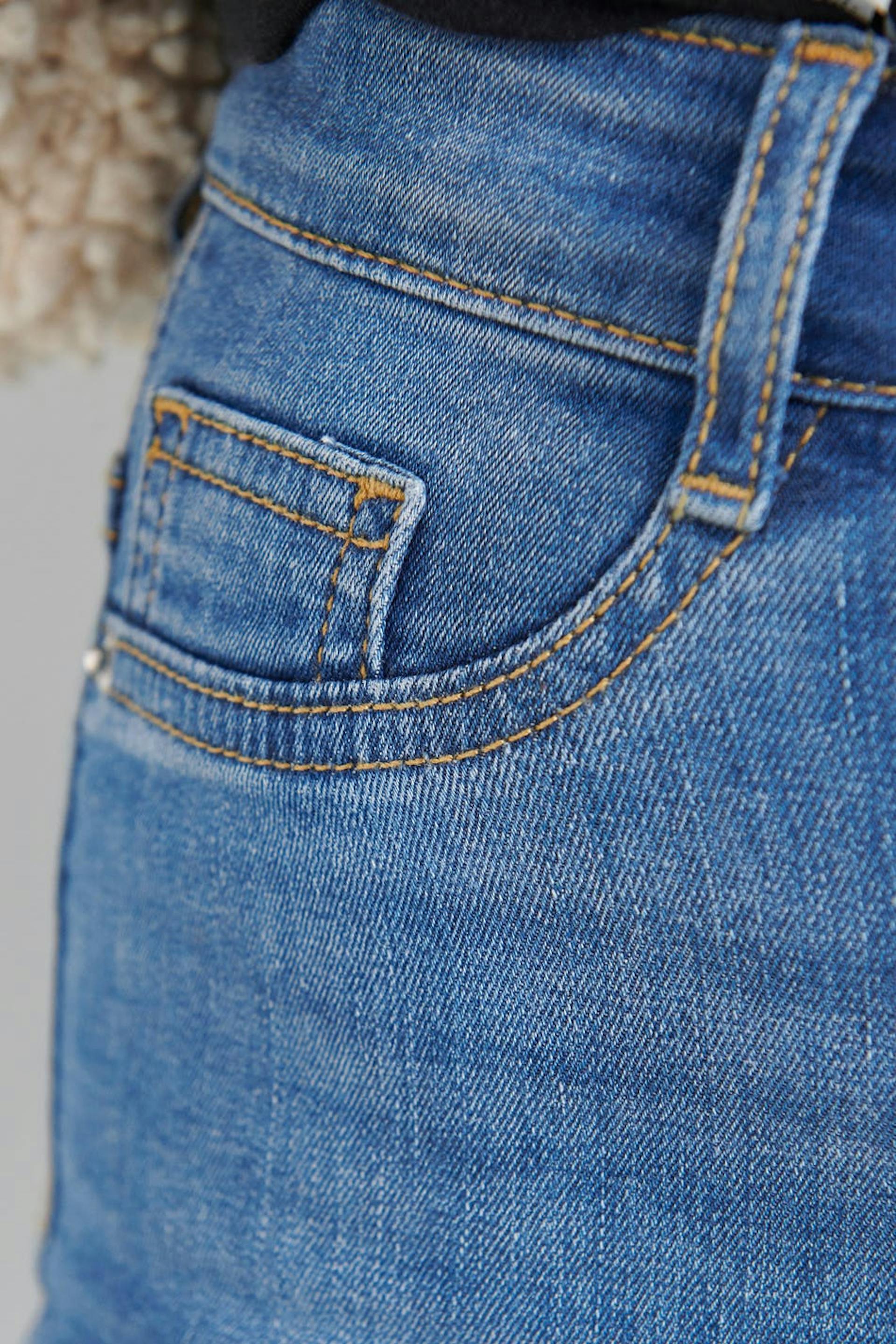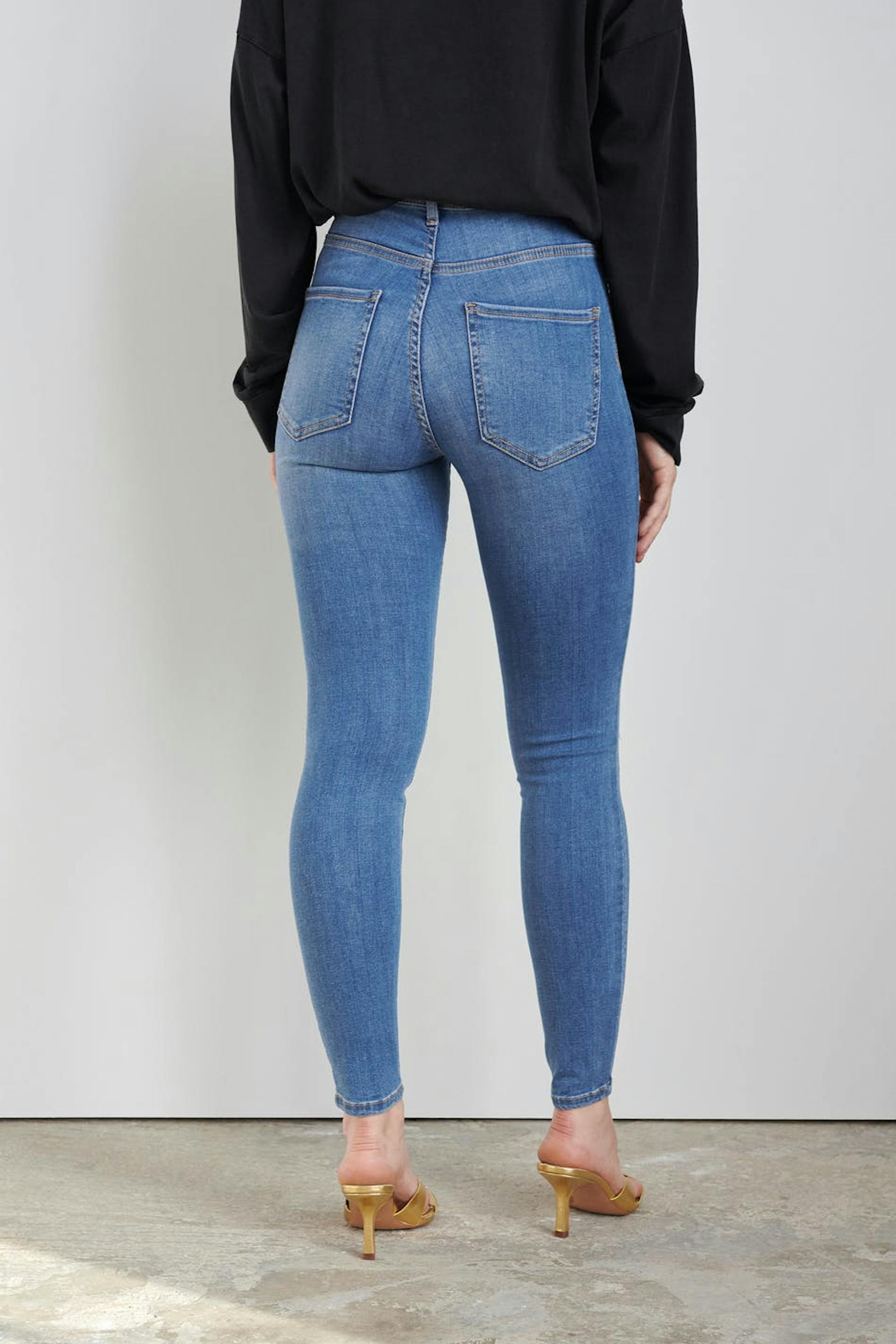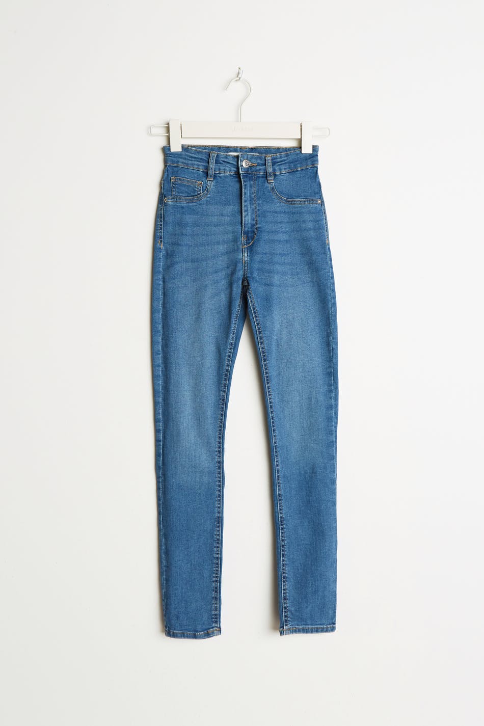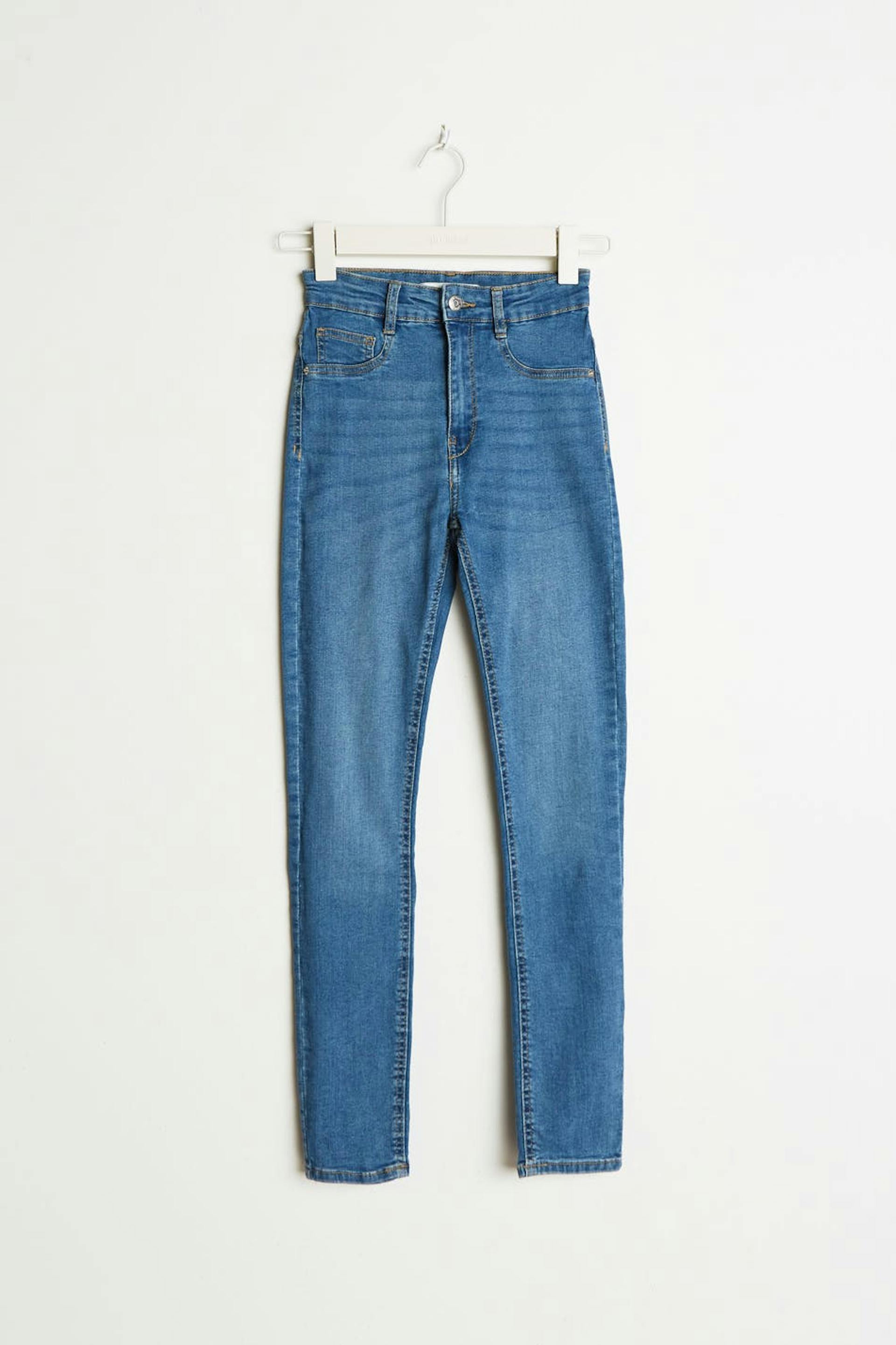 Petite highwaist jeans with a fitted fit. The jeans is blue and comfortable and has a superstretch. It has a skinny fit, a high waist and fake pockets at the front. Perfect for those who are 160 cm (5 ft 3 in.) or shorter.