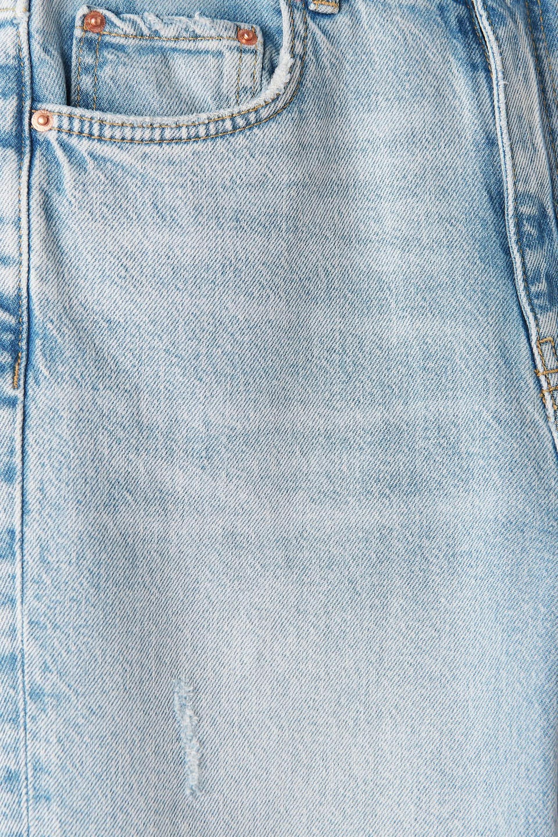 Slim jeans with high waist in low stretch denim. The jeans are light-blue and have straight legs with full length. They have slit at the end of the legs, raw edge at the bottom, fly with zip and pockets at the front and back. Use our size guide to find your size.