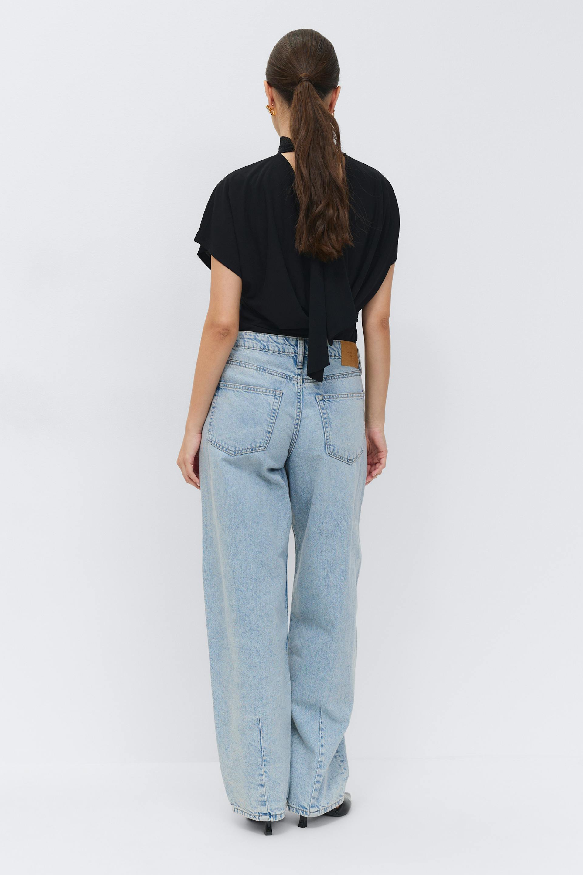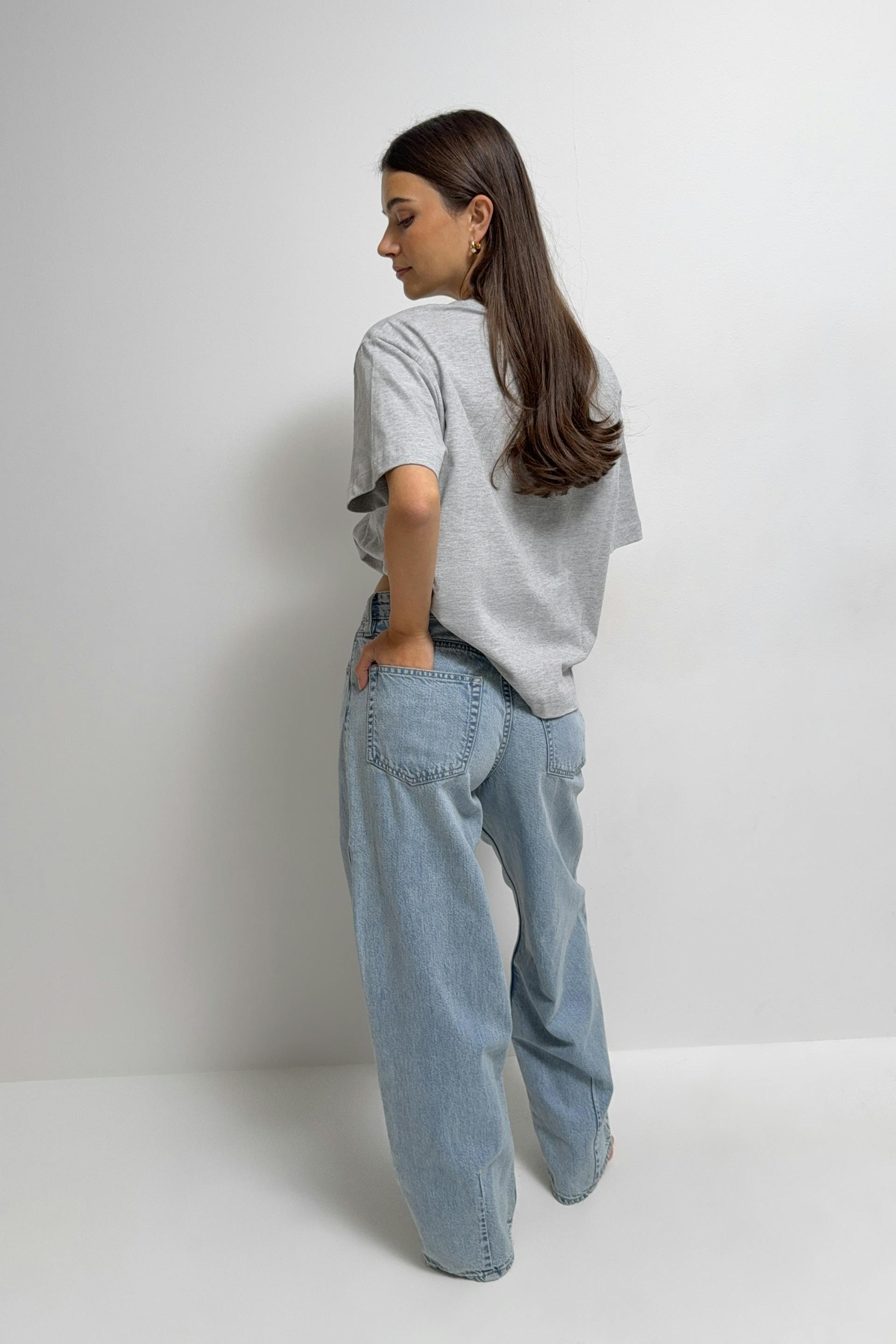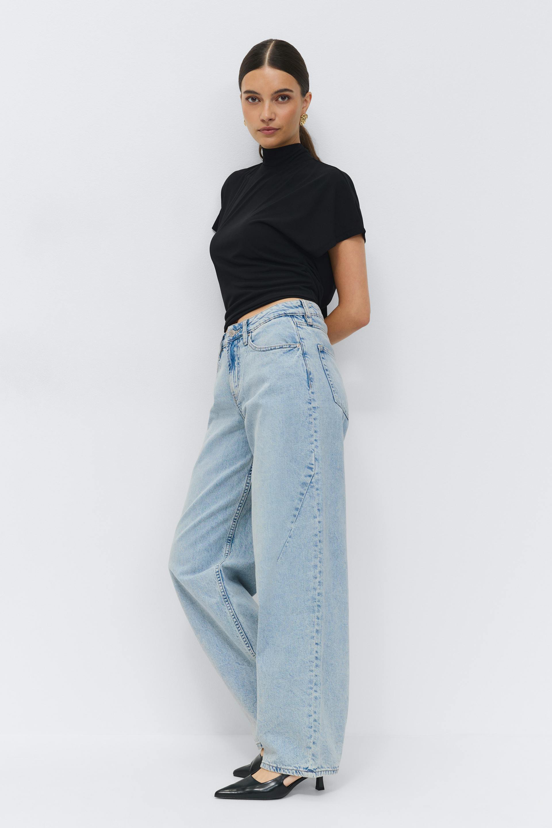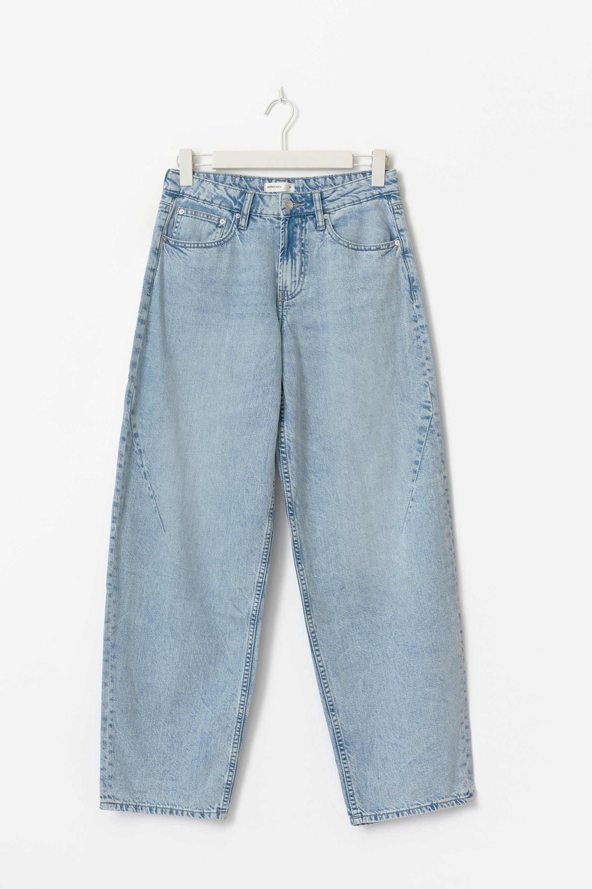 Baggy jeans with extra long legs. The jeans are blue and have low waist. They have oversize fit, zip fly, belt loops and pockets at the front and back. Non-stretch. Use our size guide to find your size.