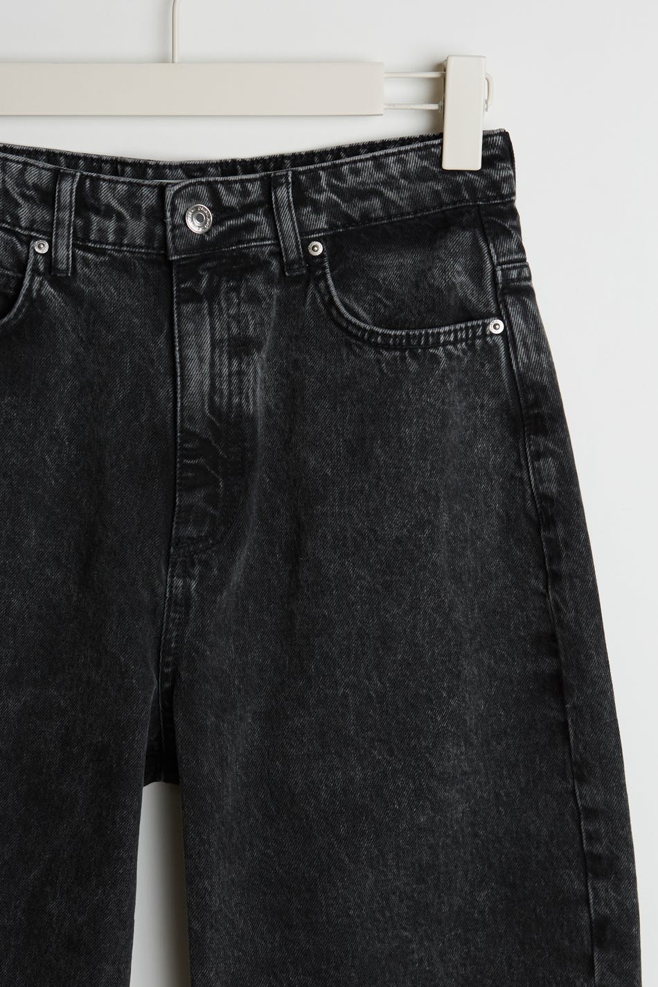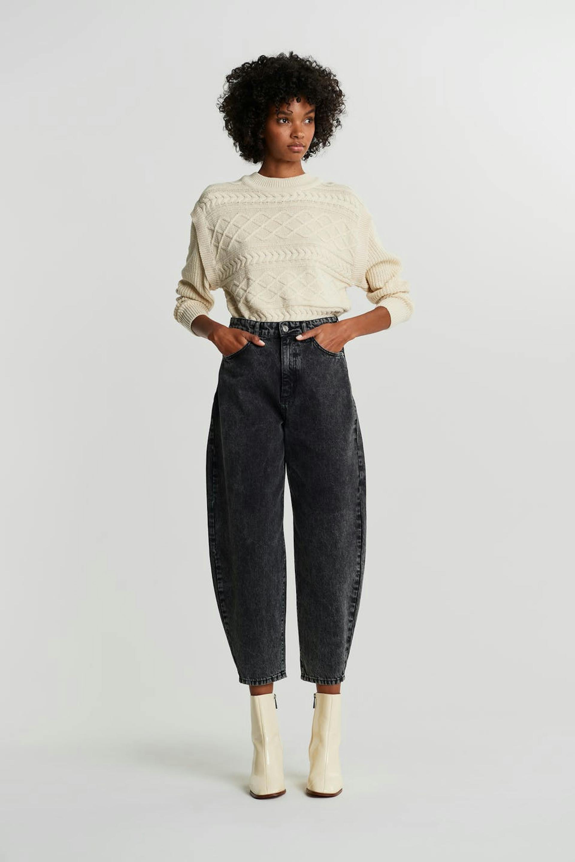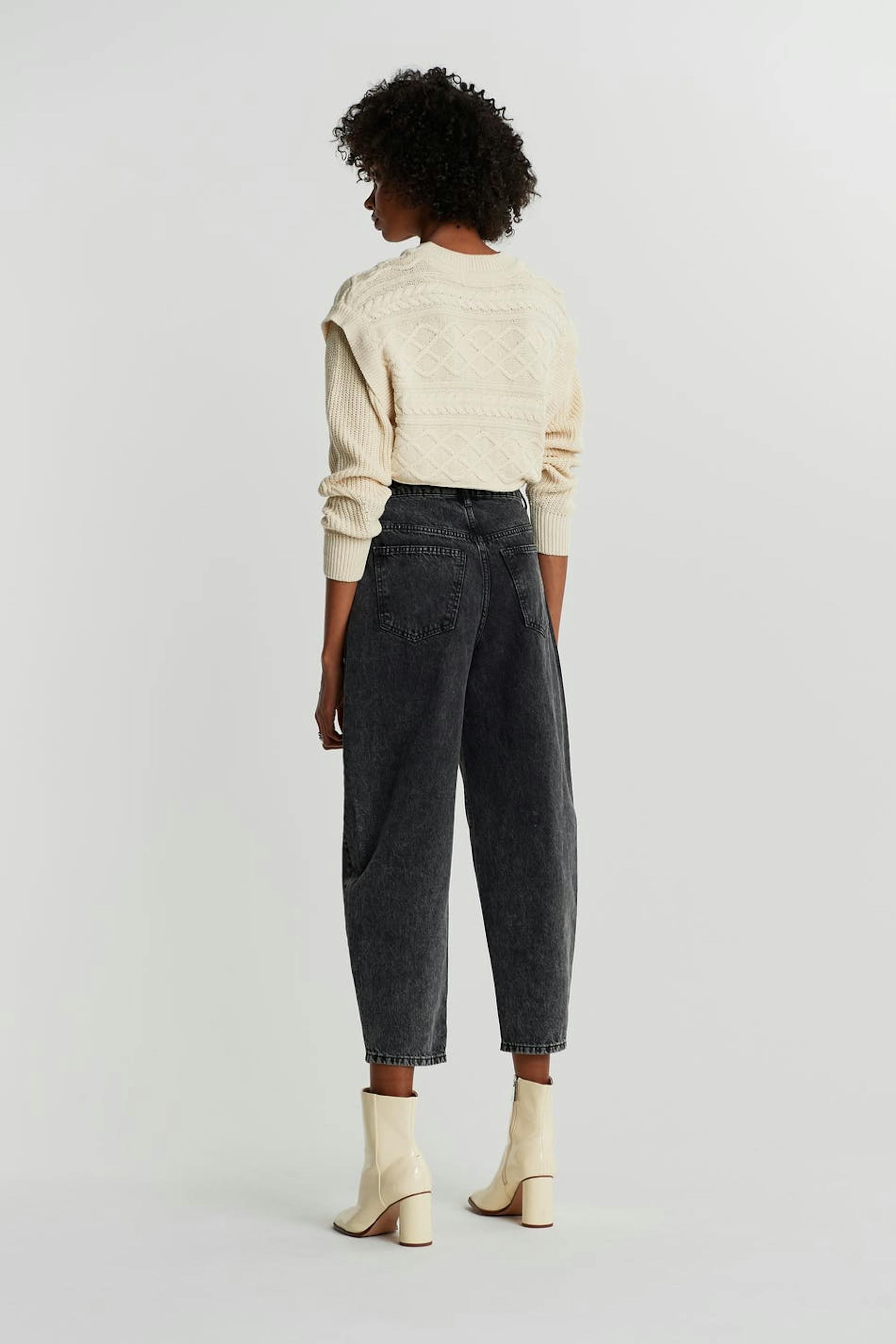 Puffy jeans with an oversize fit. The jeans is black and has a high waist. It has wide legs.