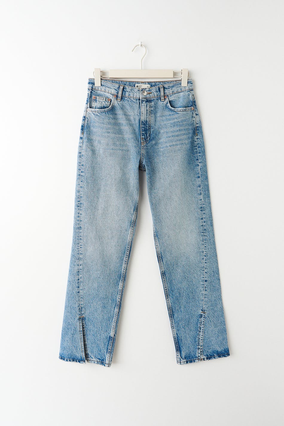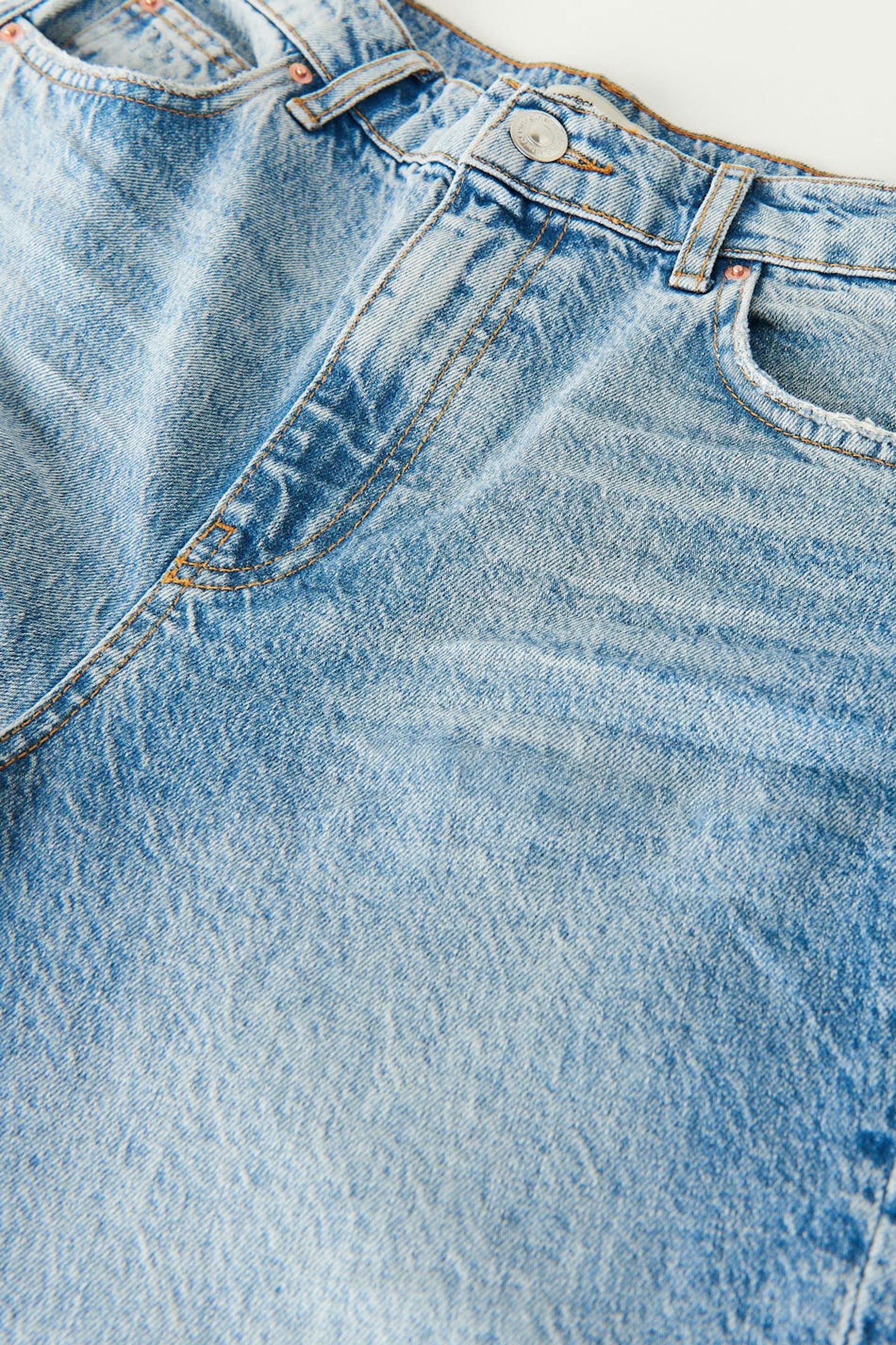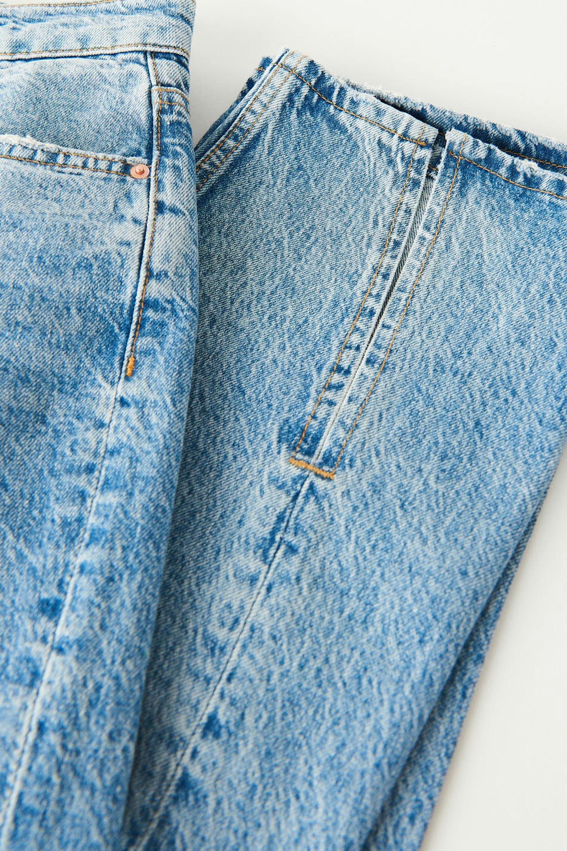 Petite jeans with high waist in non-stretch denim. The jeans is blue and has twisted seams with slit at the end of the legs. Perfect for those who are 160 cm (5 ft 3 in.) or shorter.