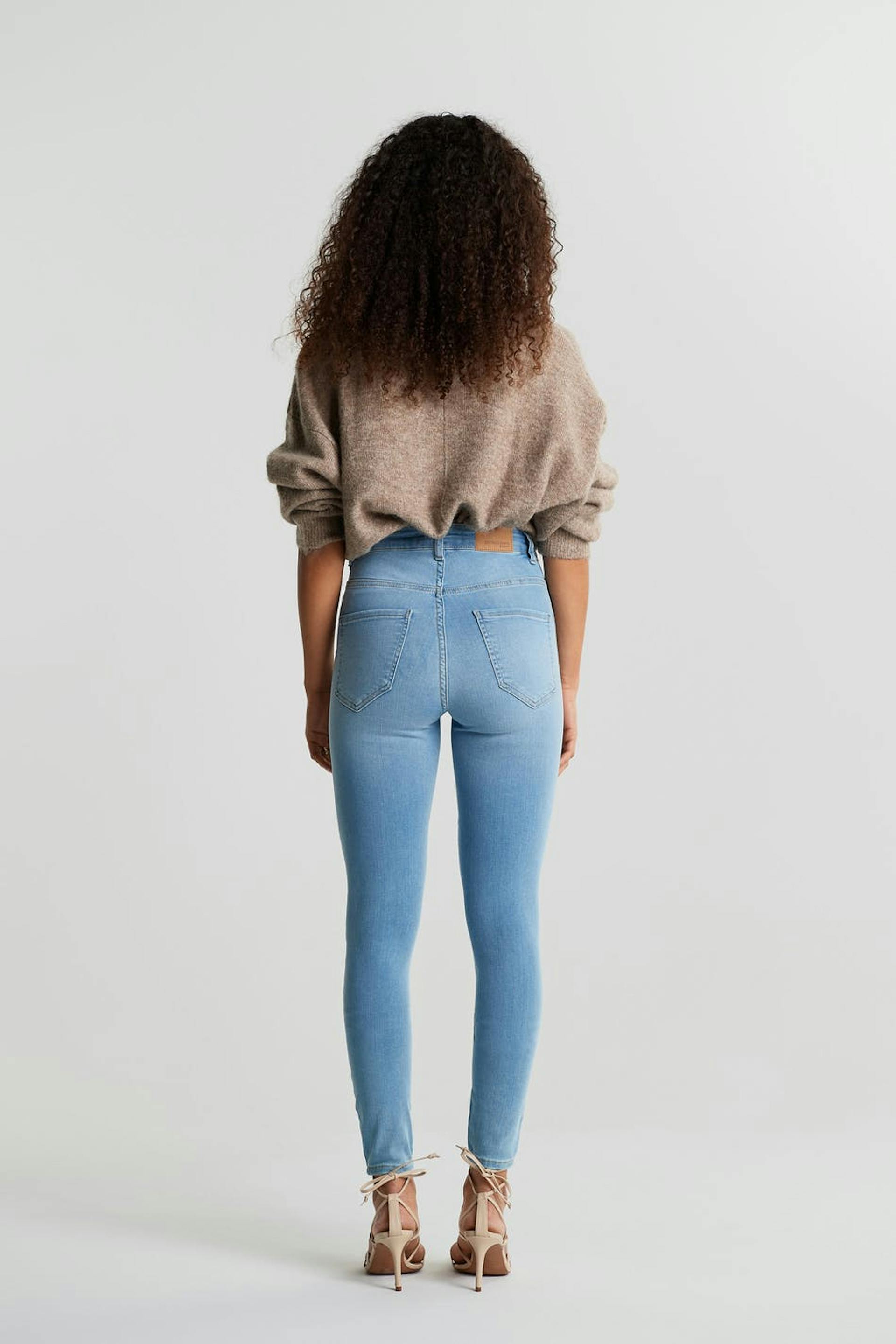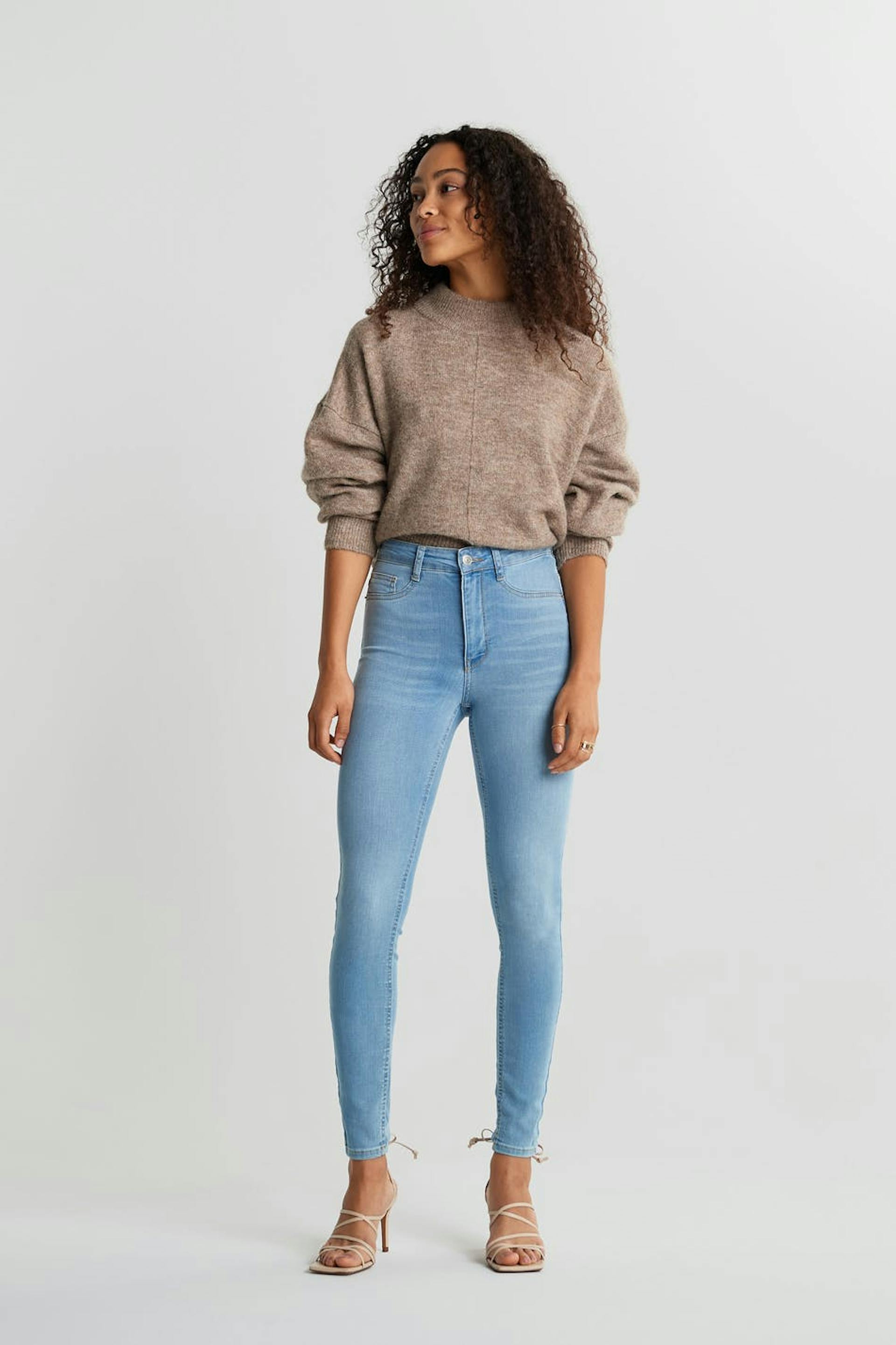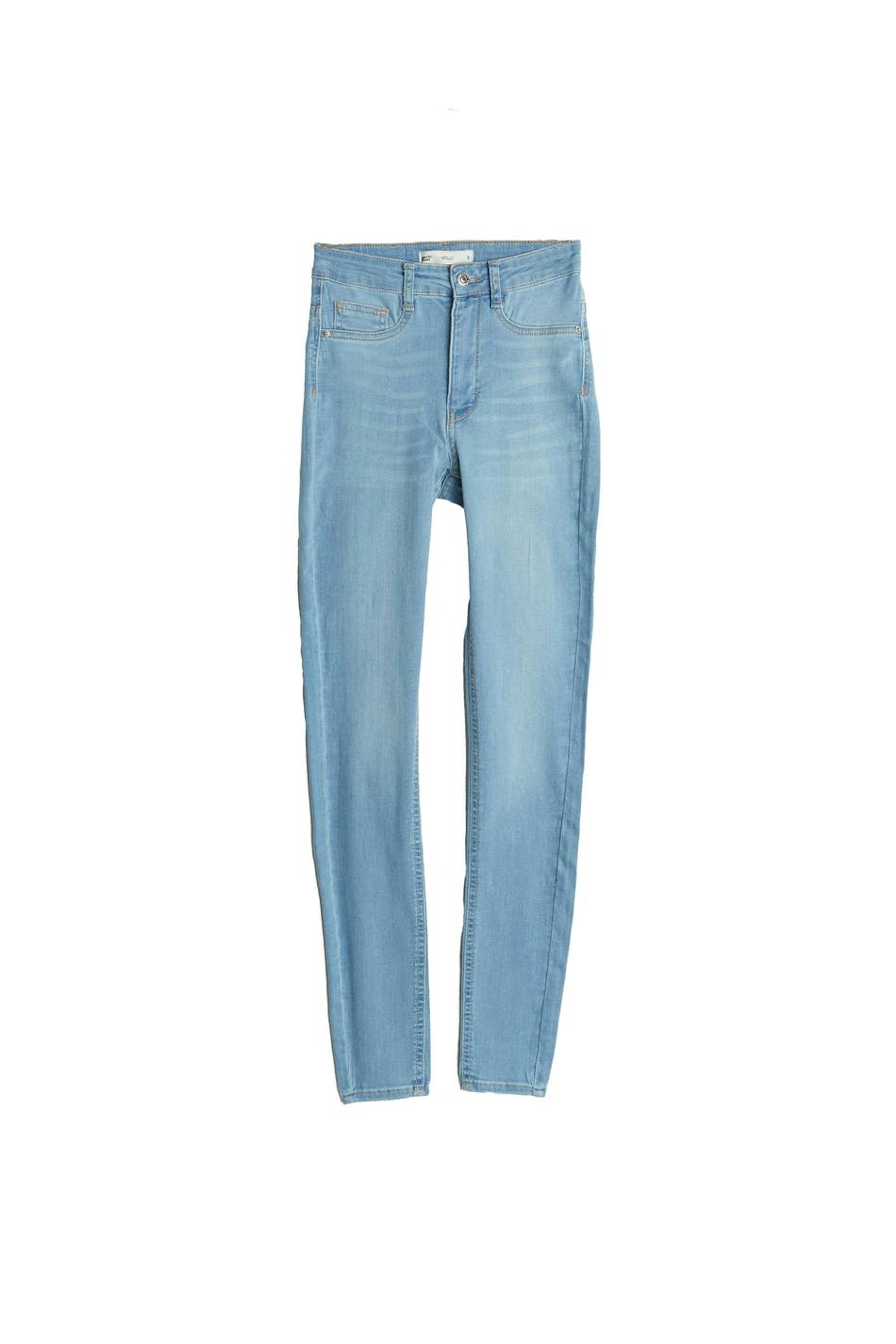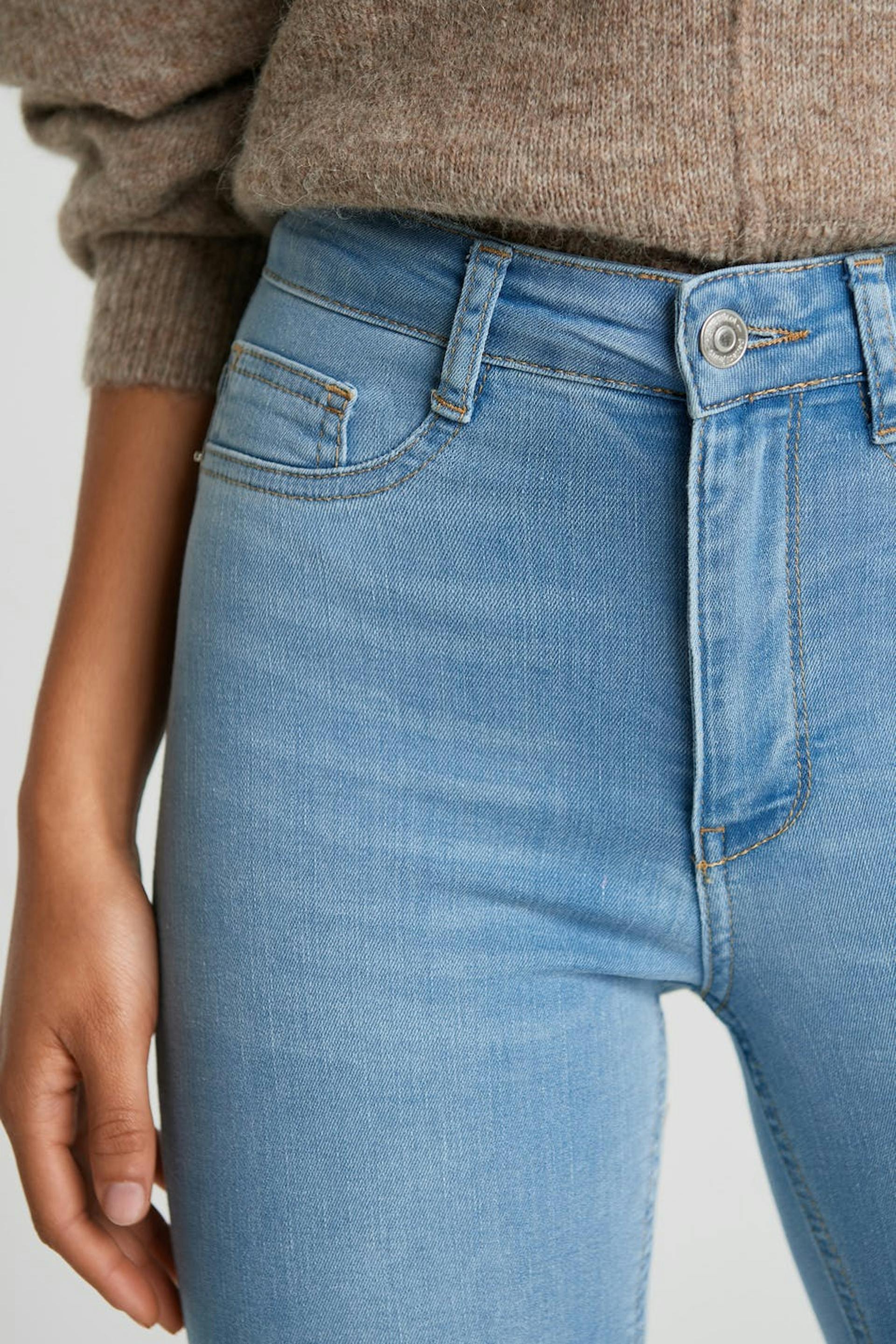 Petite jeans with a fitted fit. The jeans are light-blue and comfortable and have a superstretch. They have a skinny fit, a high waist and fake pockets at the front. Perfect for those who are 160 cm (5 ft 3 in.) or shorter.