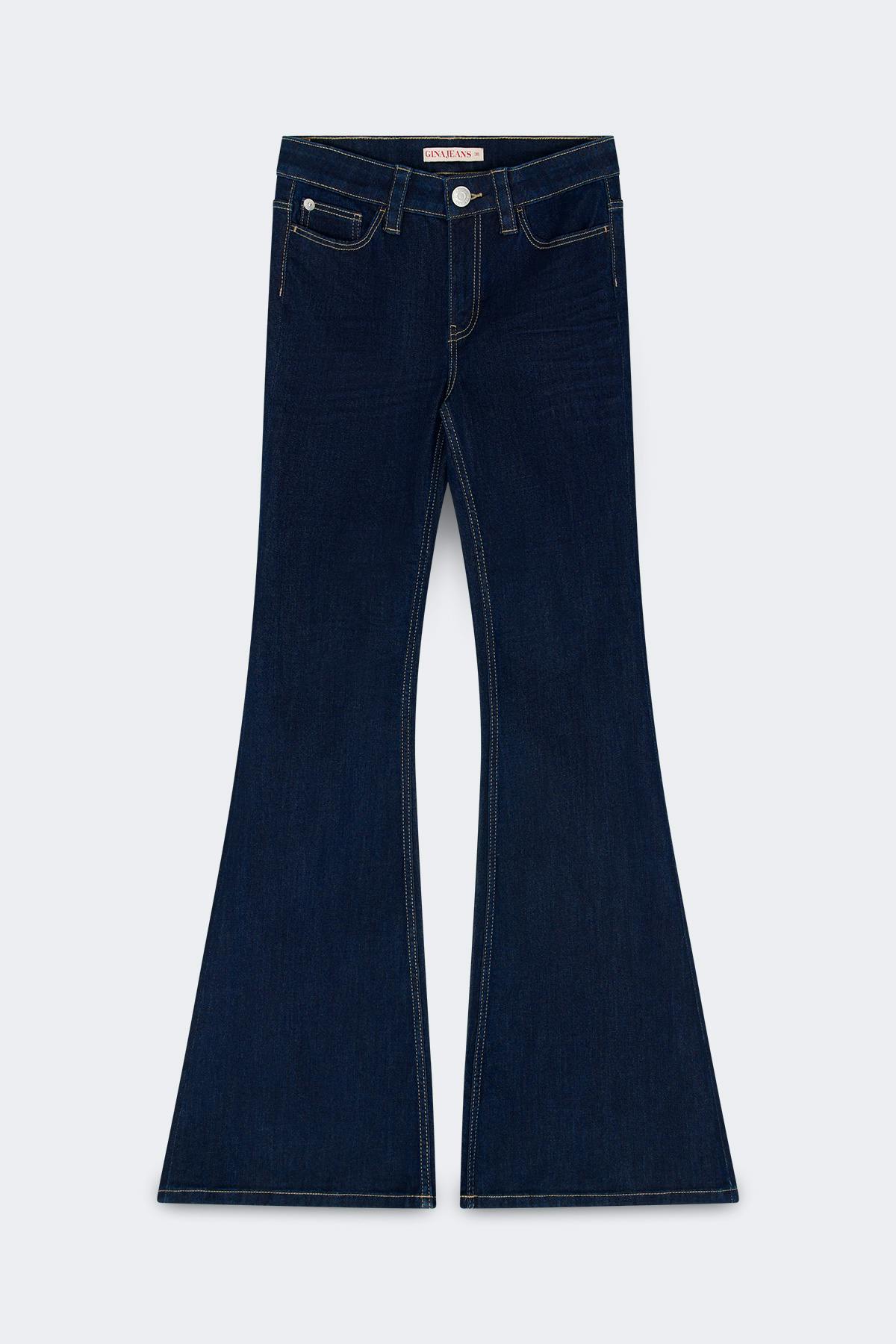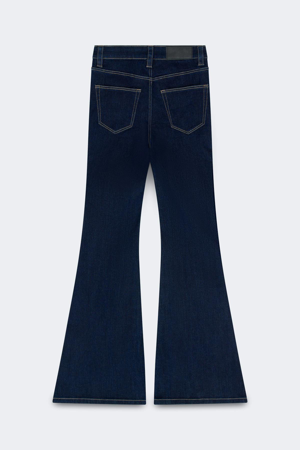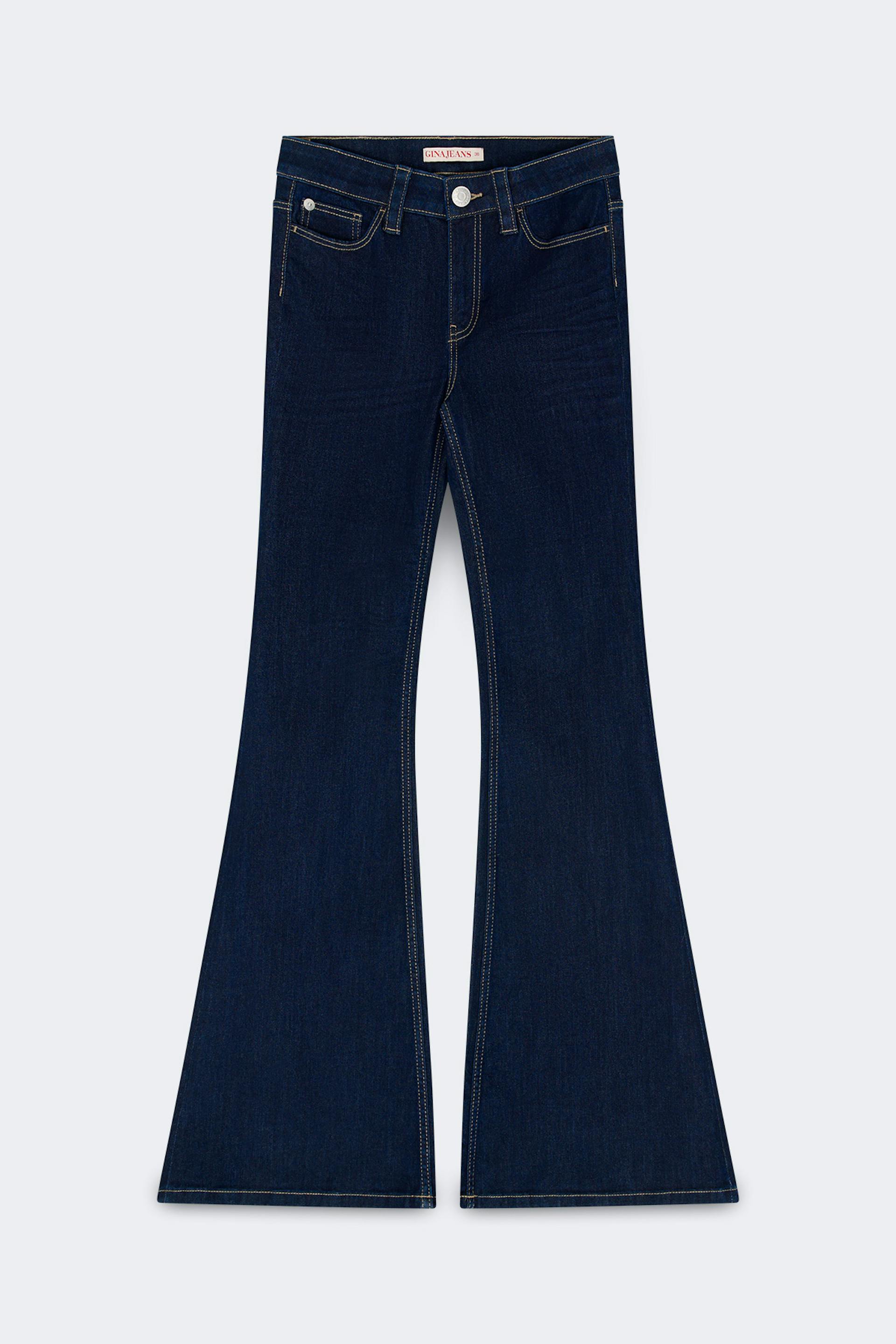 Petite flare jeans with figure-hugging fit. The jeans are dark blue and have slightly shorter, flared legs. They have mid waist, zip fly, pockets at the front and back, belt loops and stretch. Perfect for those who are 160 cm (5 ft 3 in.) or shorter. Use our size guide to find your size.