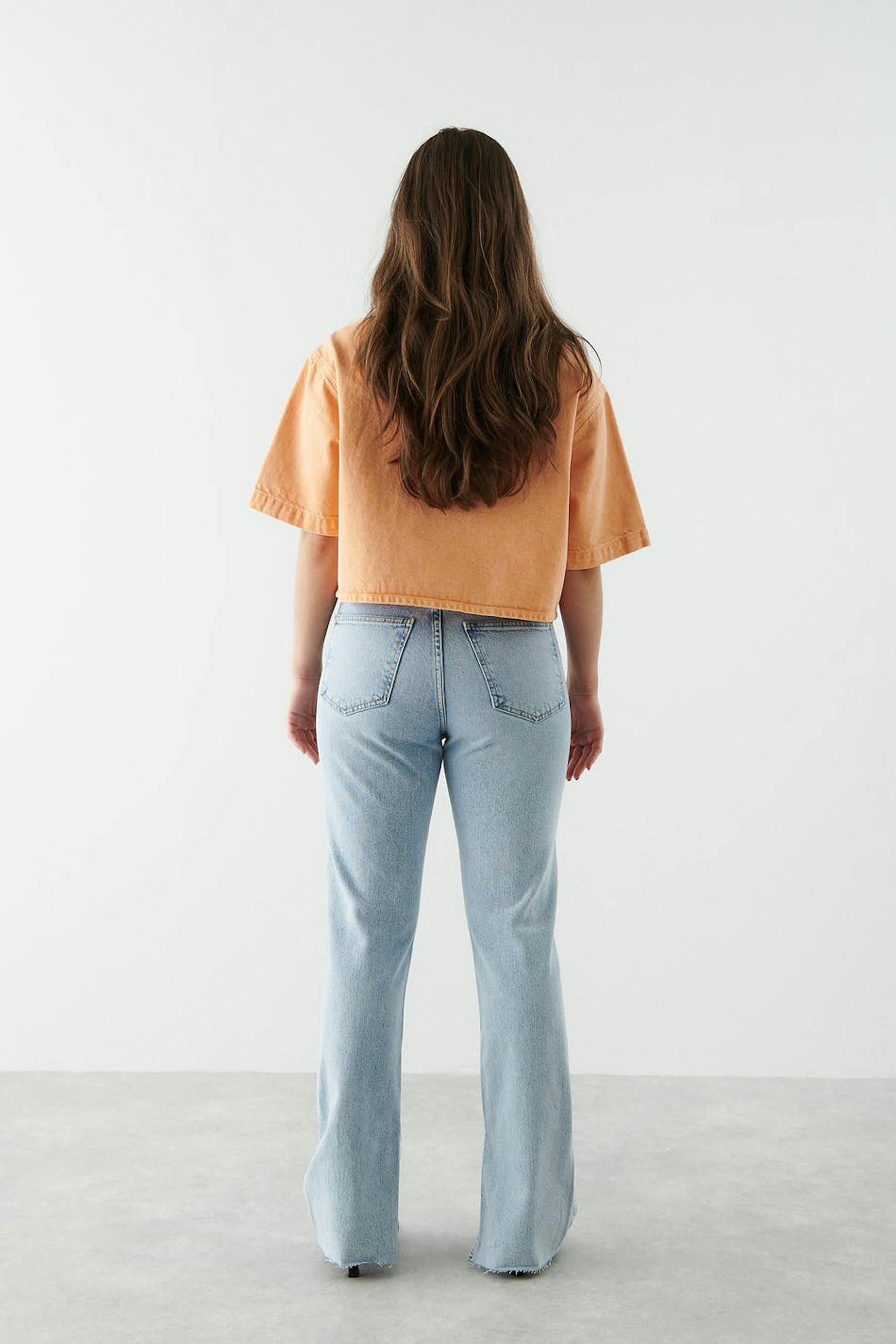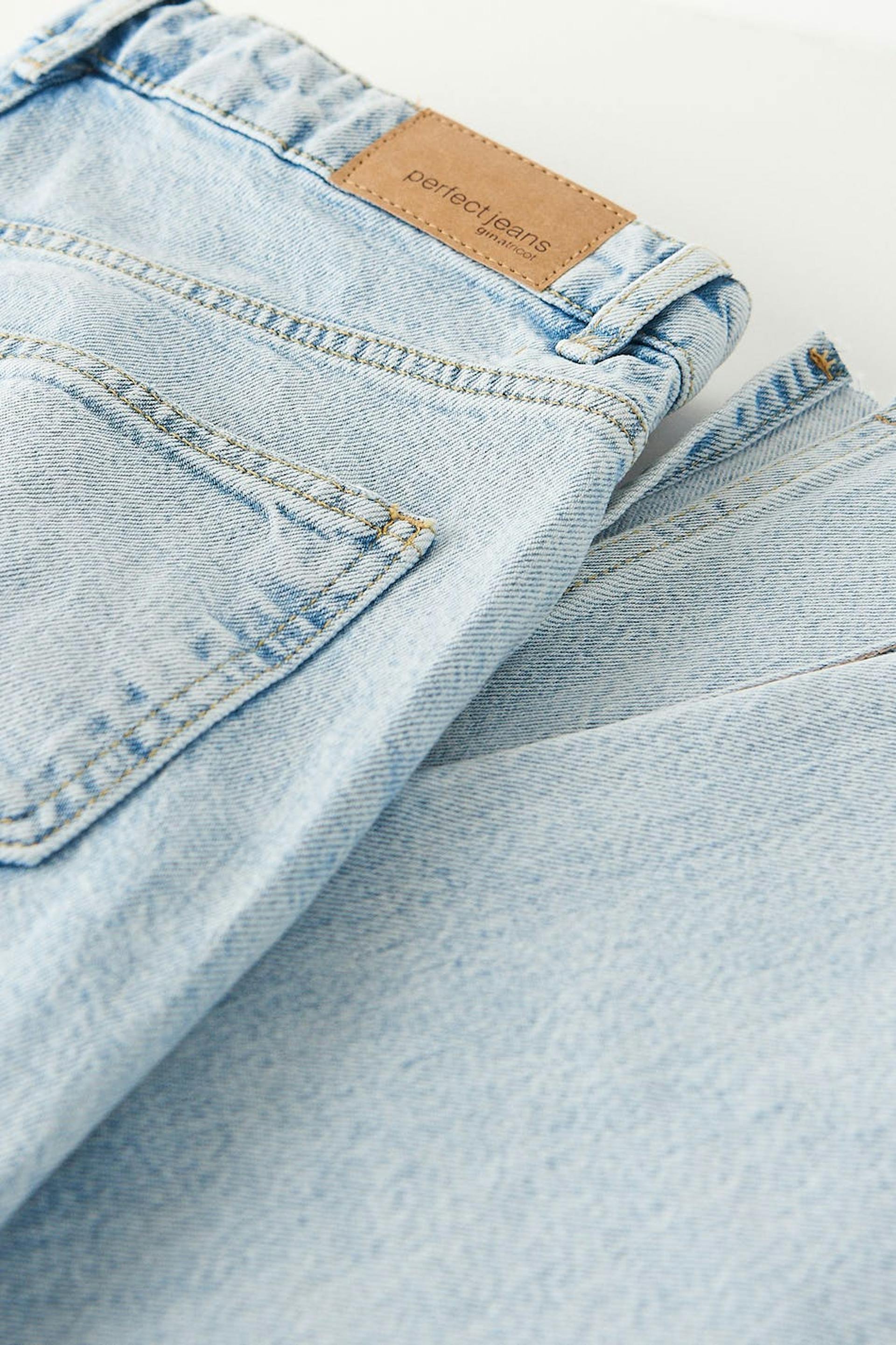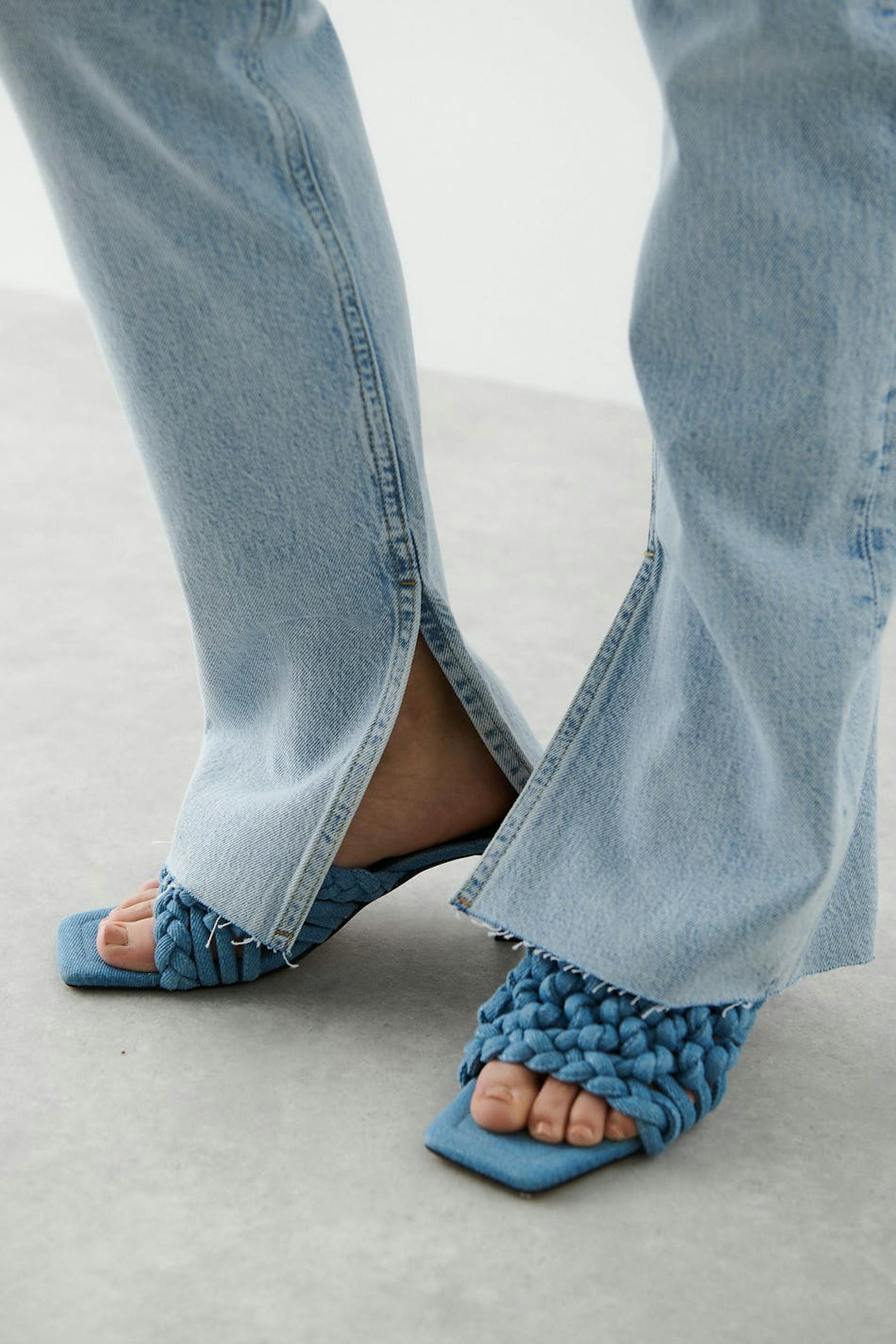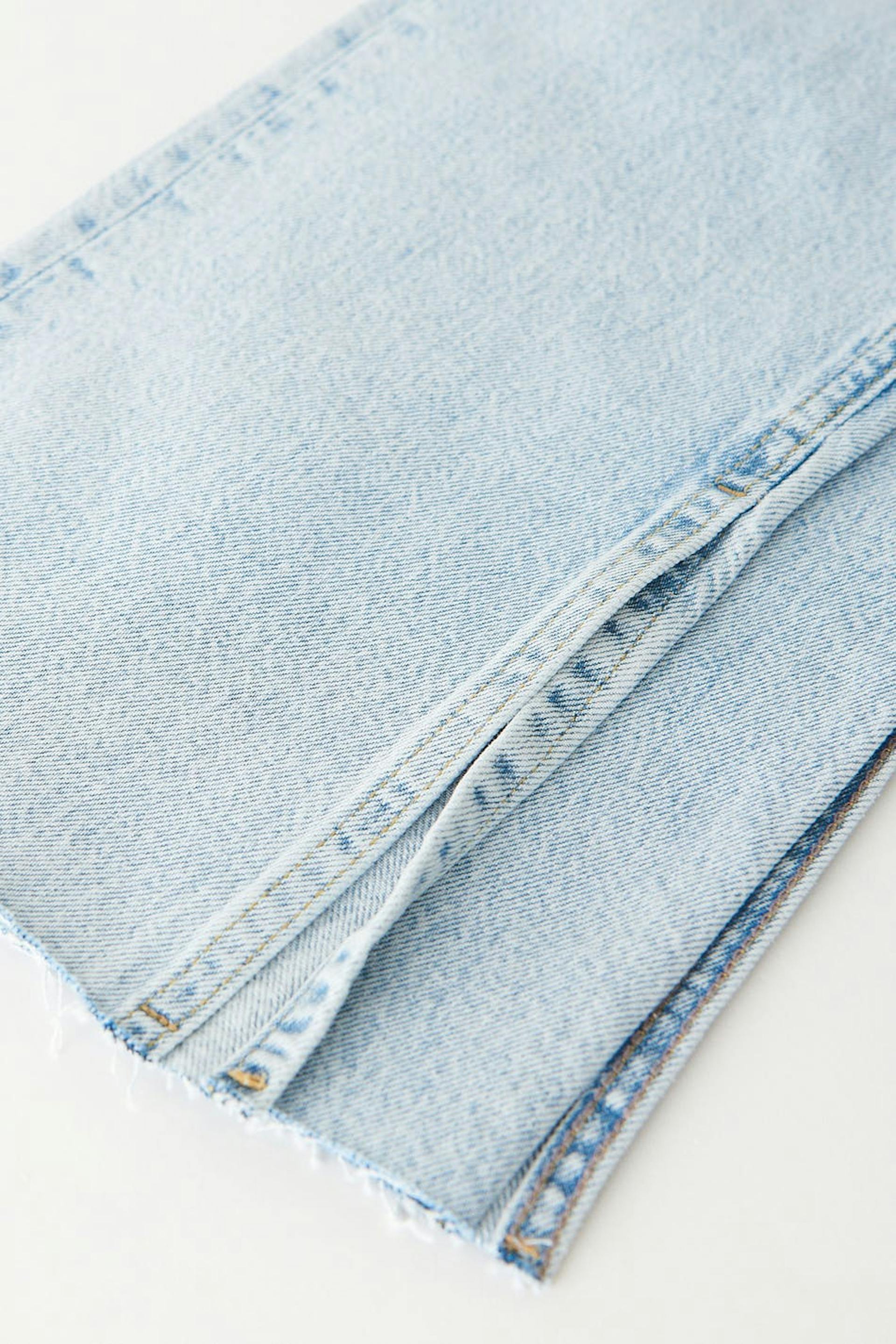 Petite slim jeans with high waist. The jeans is light-blue and has straight legs with full length. It is made of denim and has low stretch, slit at the end of the legs, fly with zip and raw edge at the bottom. Perfect for those who are 160 cm (5 ft 3 in.) or shorter. Use our size guide to find your size.