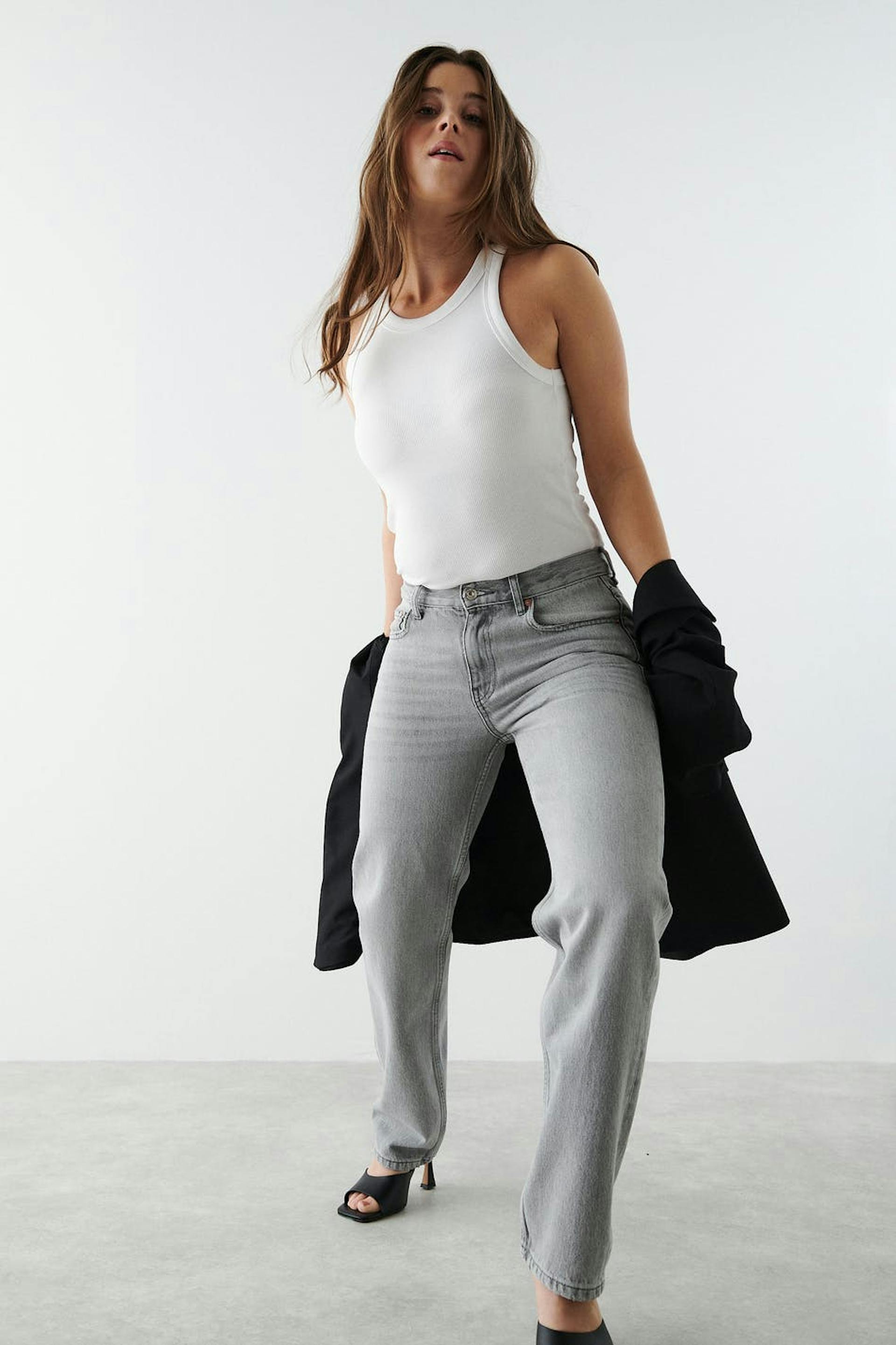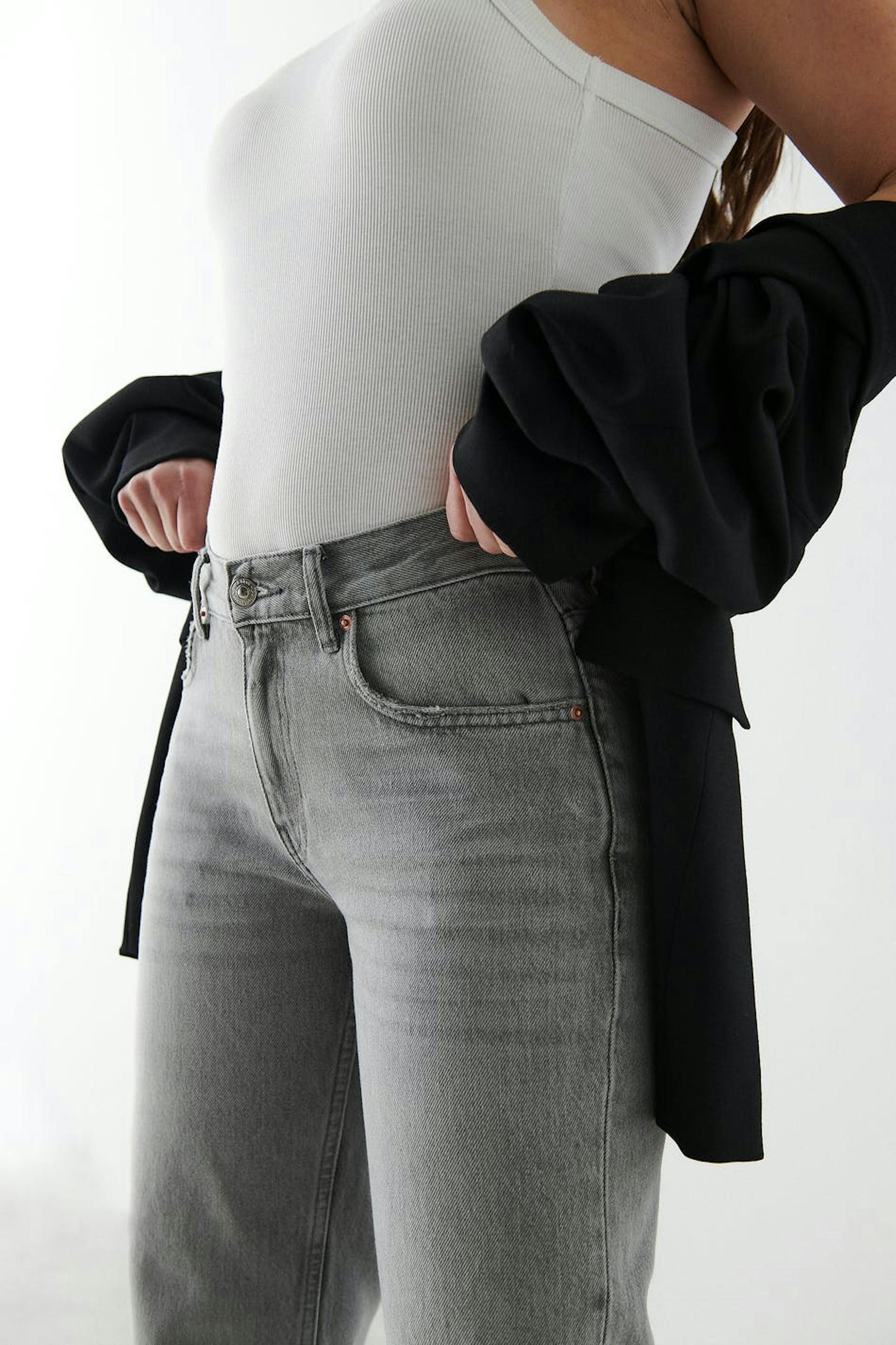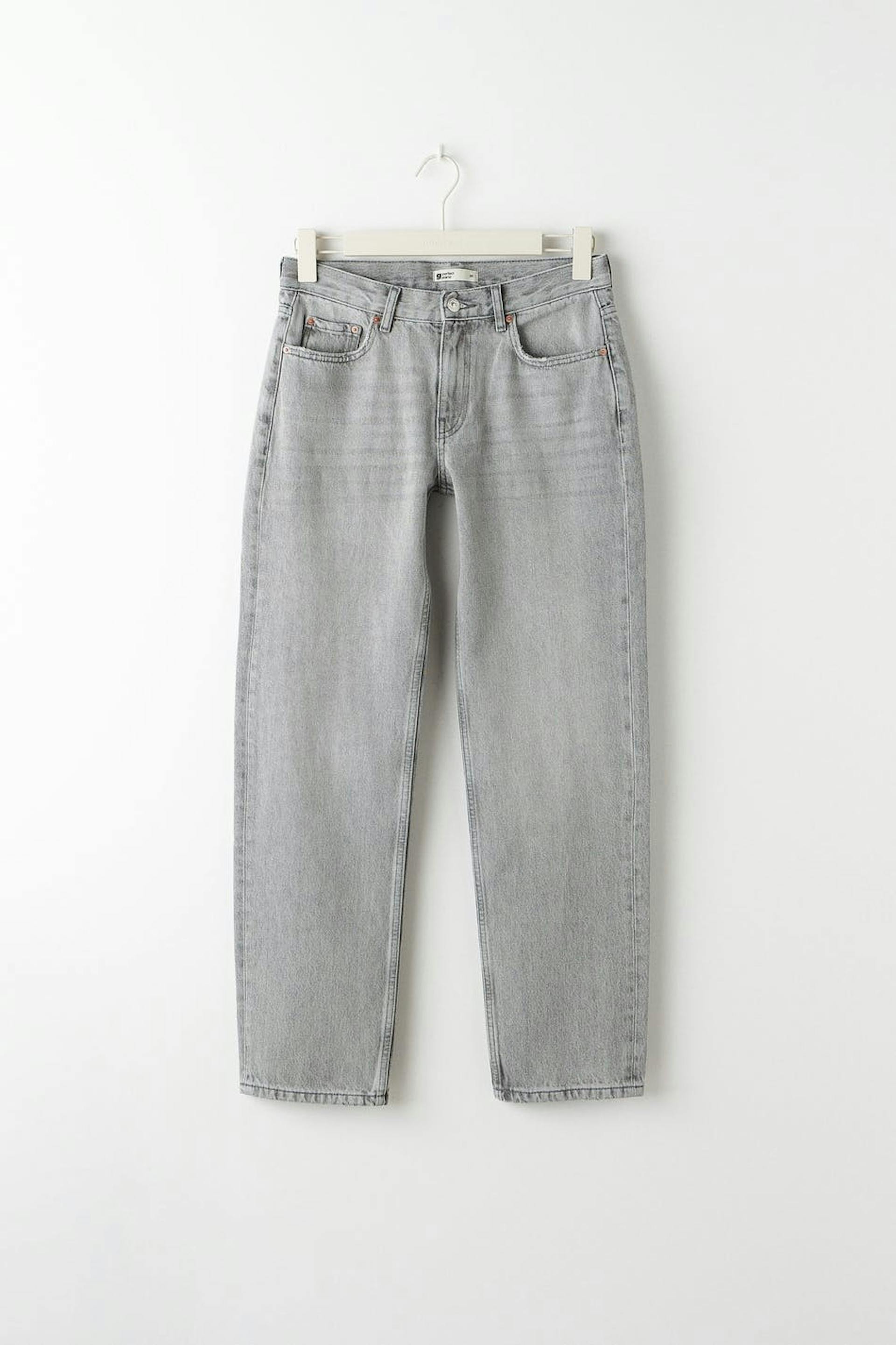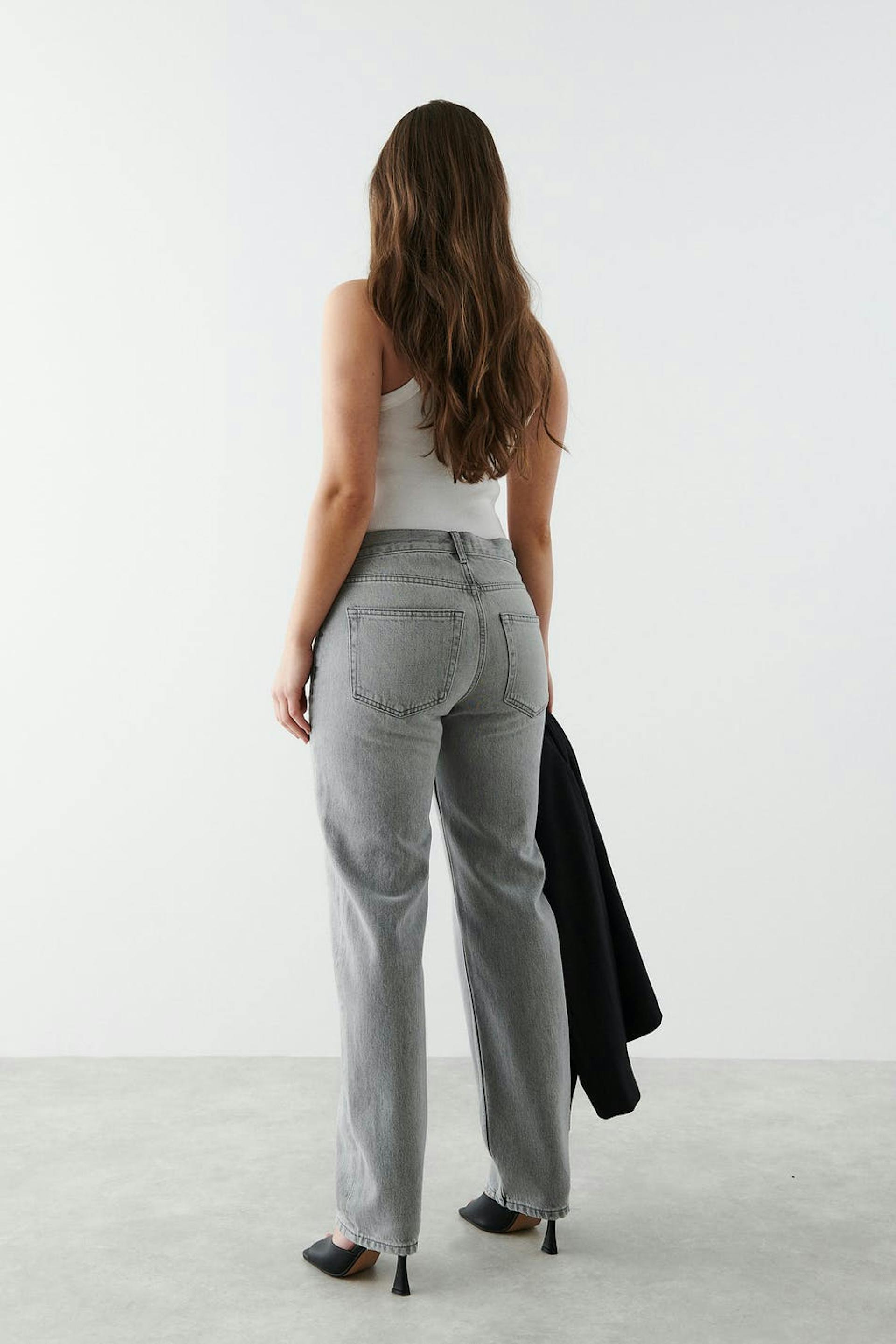 Petite low waist jeans with boyfriend fit. The jeans is grey and has straight trouser legs with normal length. It is made of non-stretch denim and has fly with zip and pockets at the front and back. Perfect for those who are 160 cm (5 ft 3 in.) or shorter. Use our size guide to find your size.