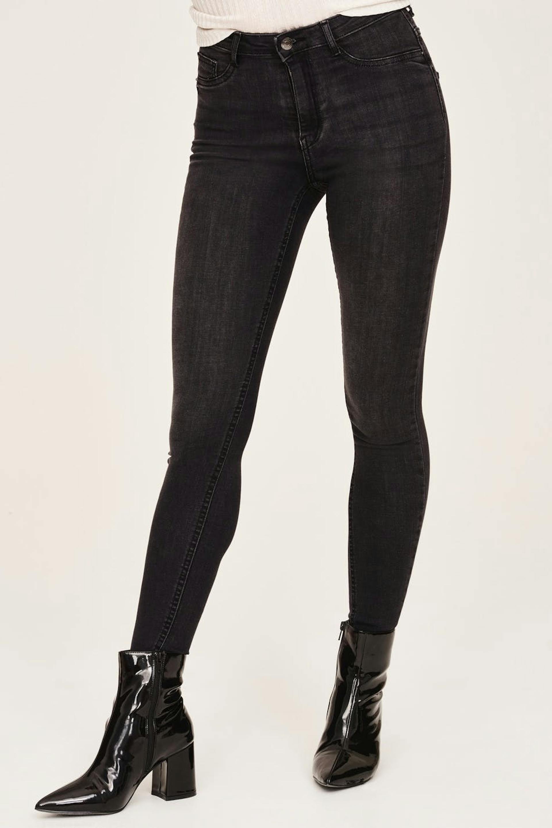 Soft highwaist jeans with a fitted fit. The jeans is dark grey and comfortable and has a skinny fit. It has a superstretch, a high waist and fake pockets at the front.