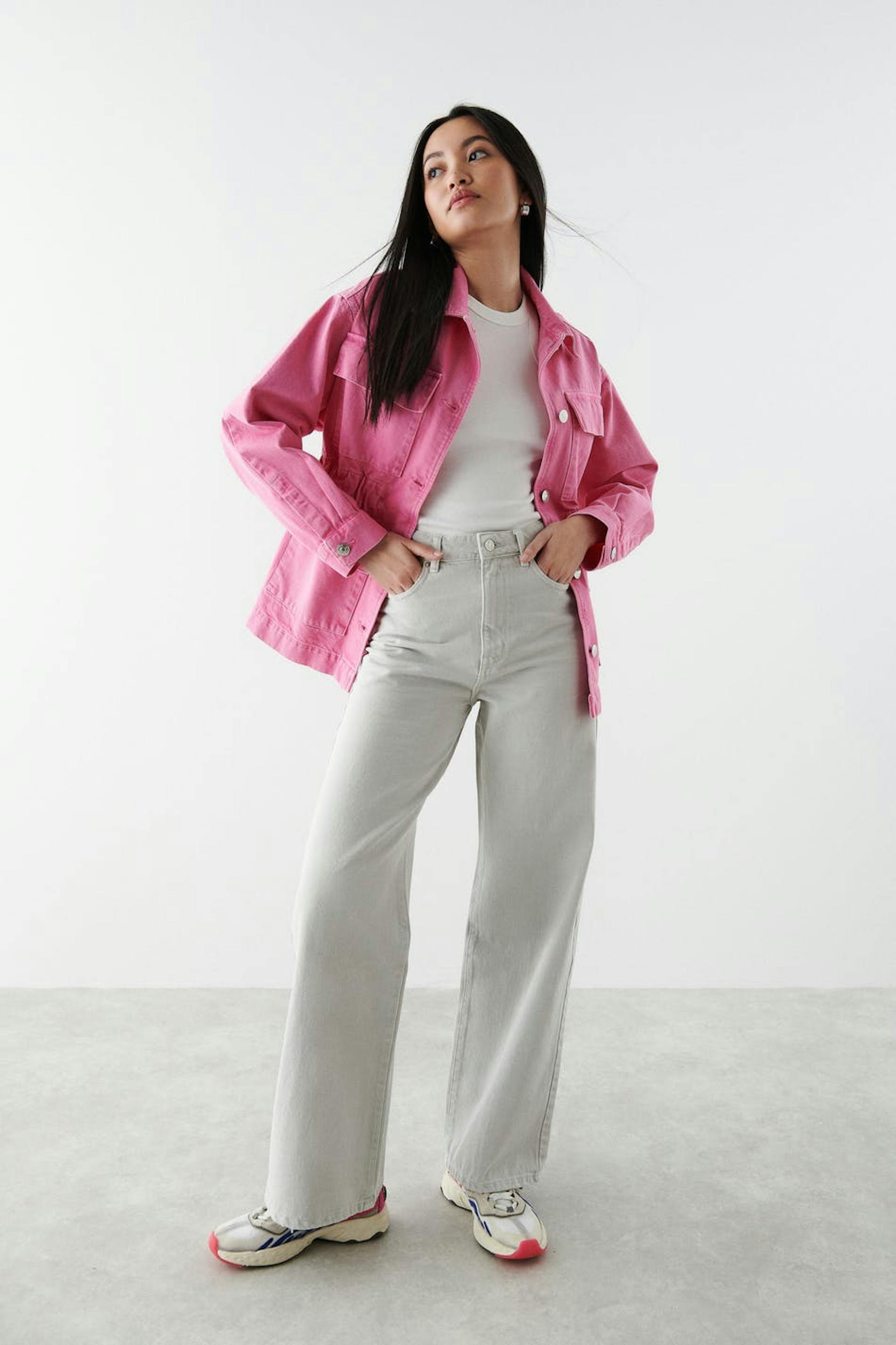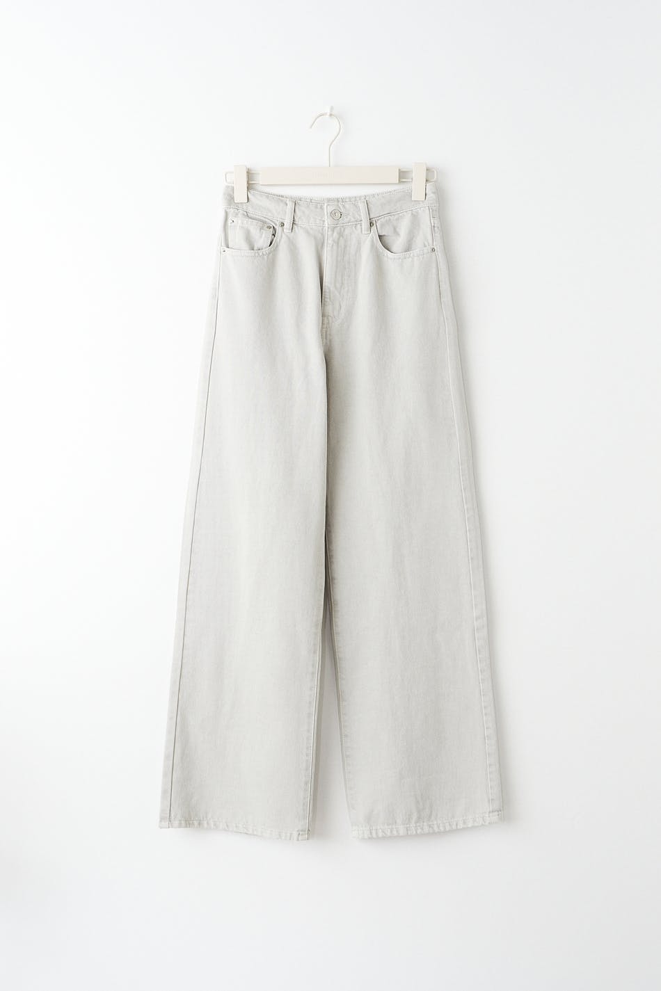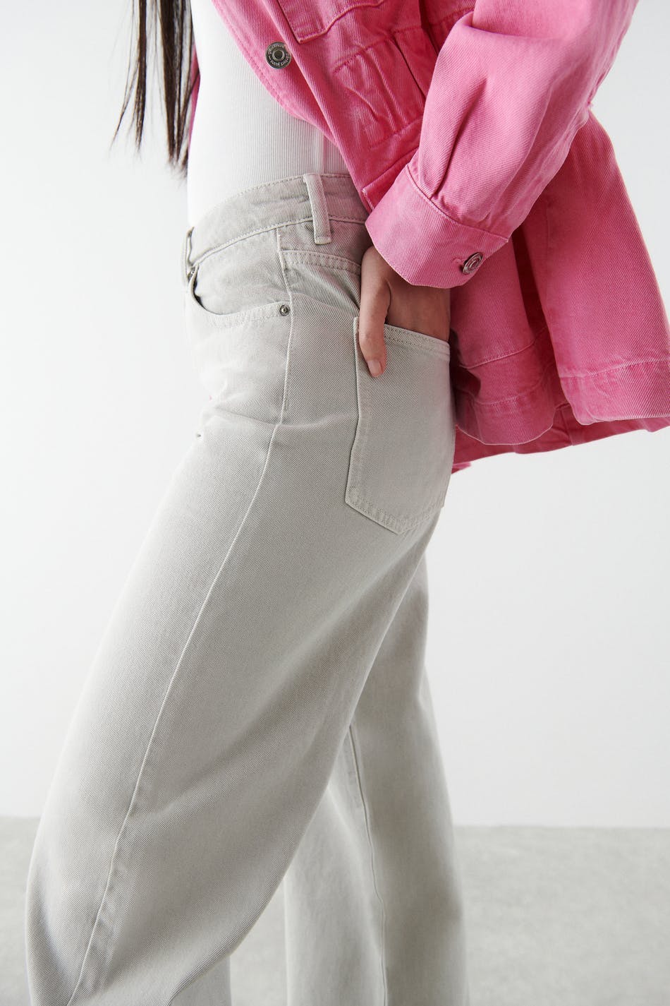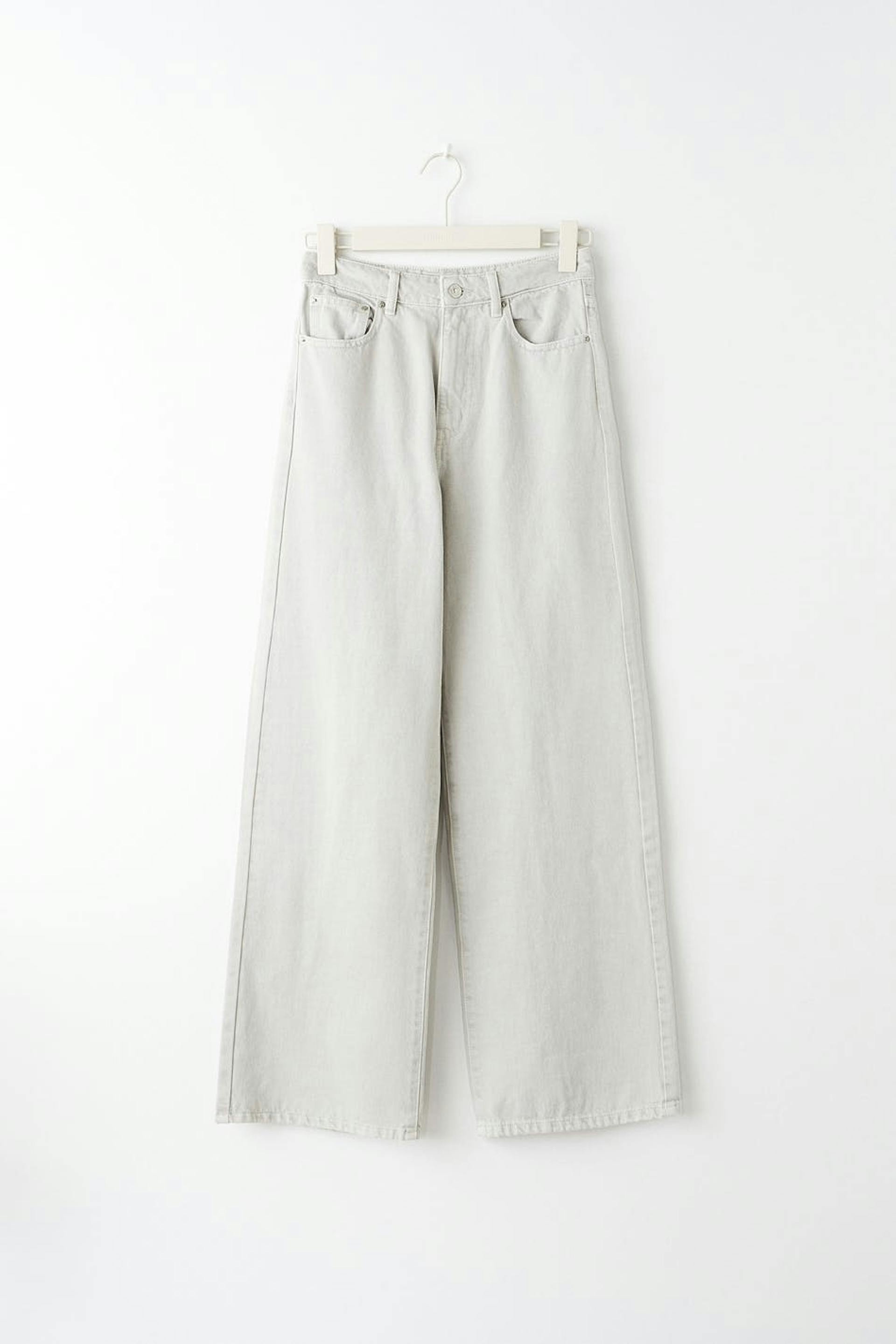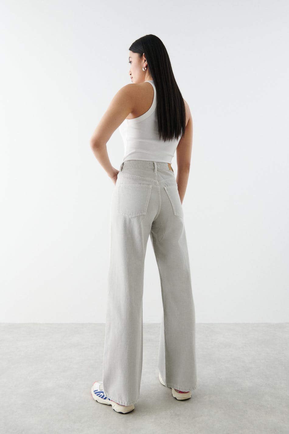 Non-stretch wide jeans with high waist. The jeans is grey and has a zip fly. It has wide legs with normal length. Use our size guide to find your size.