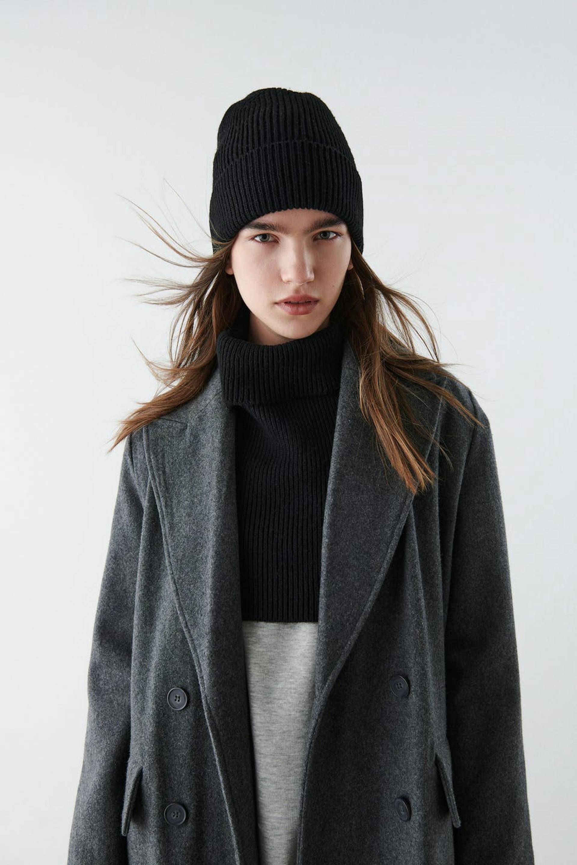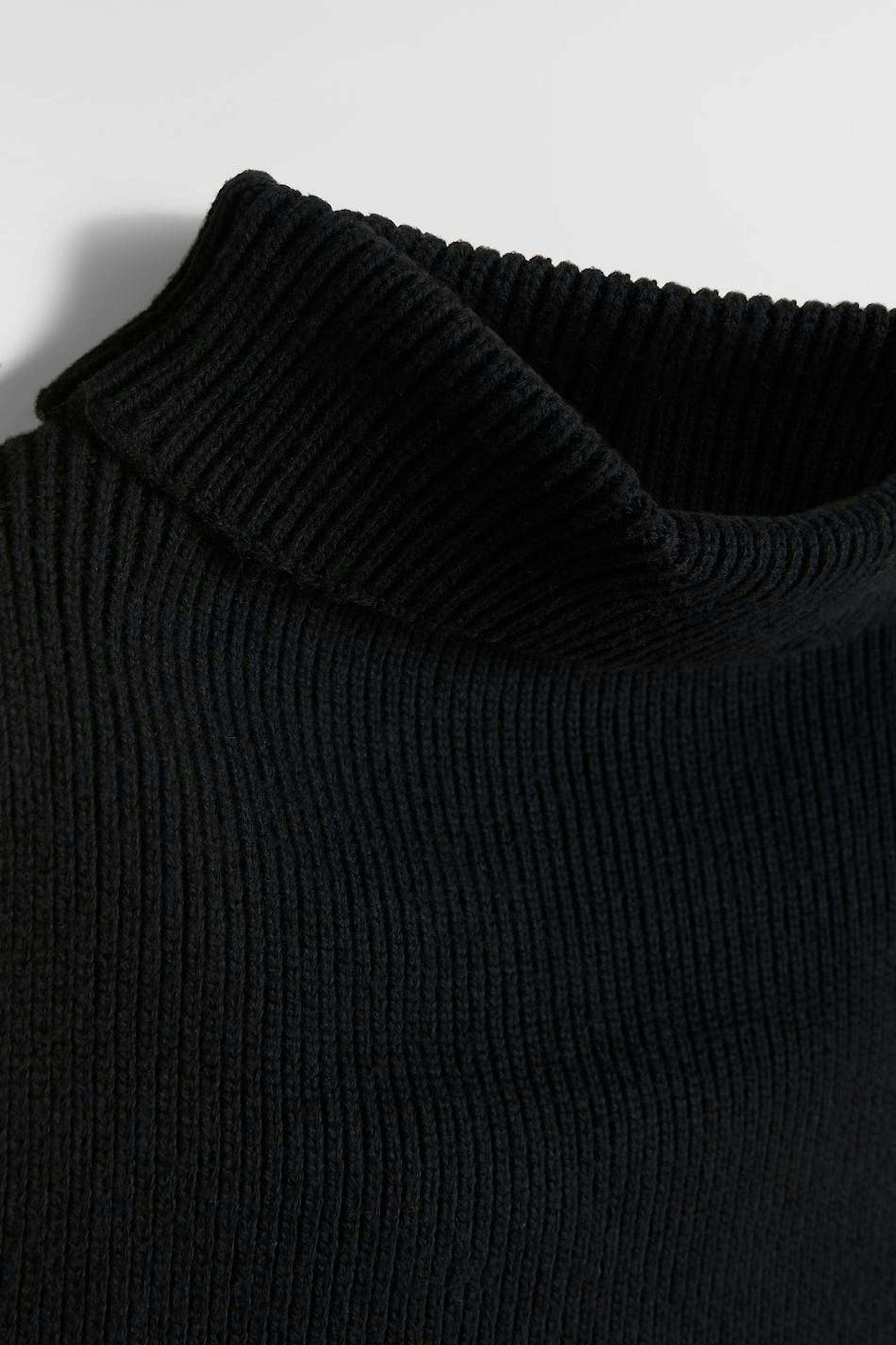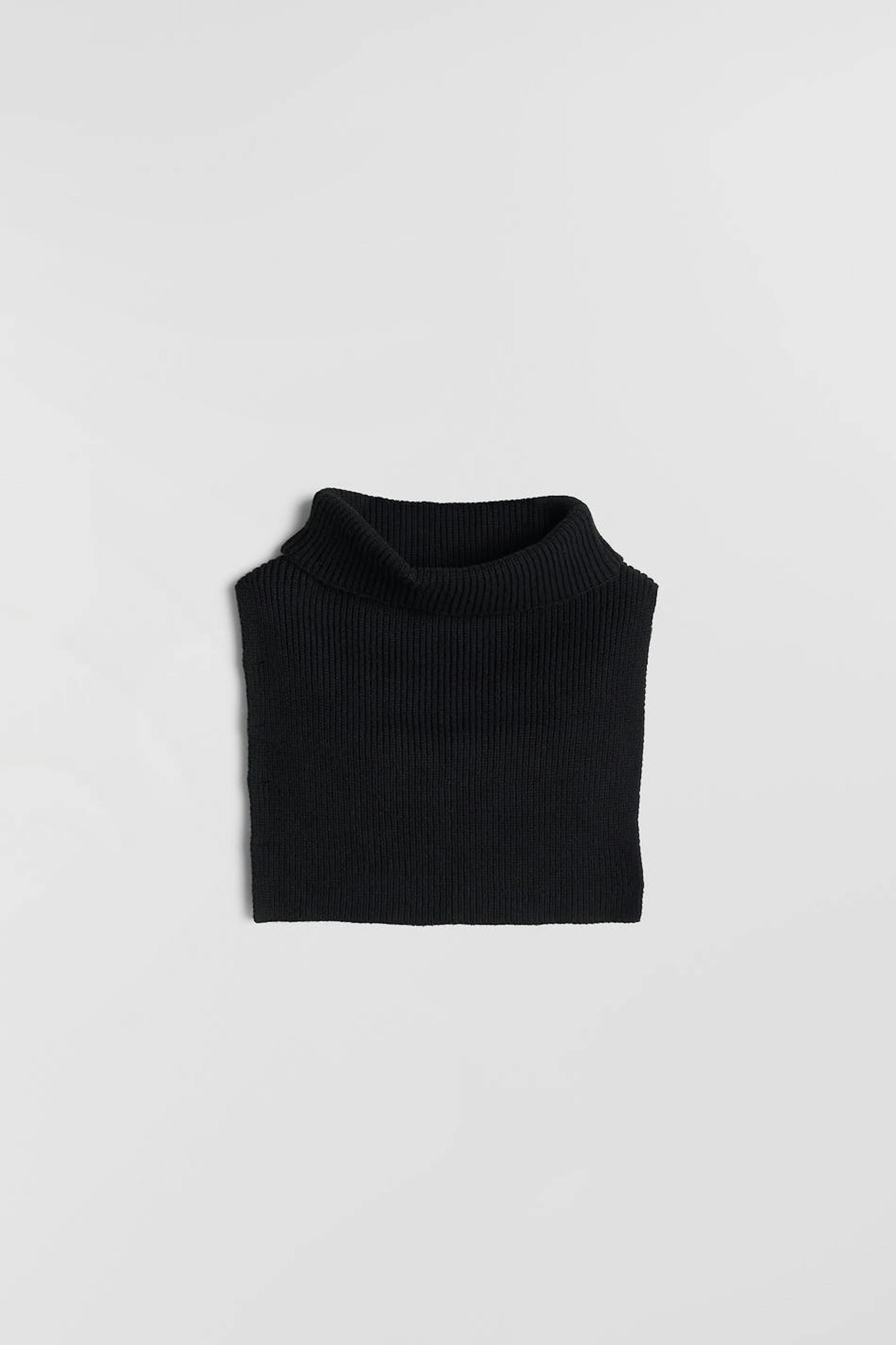Knitted collar with a material in recycled polyester. The collar is black.