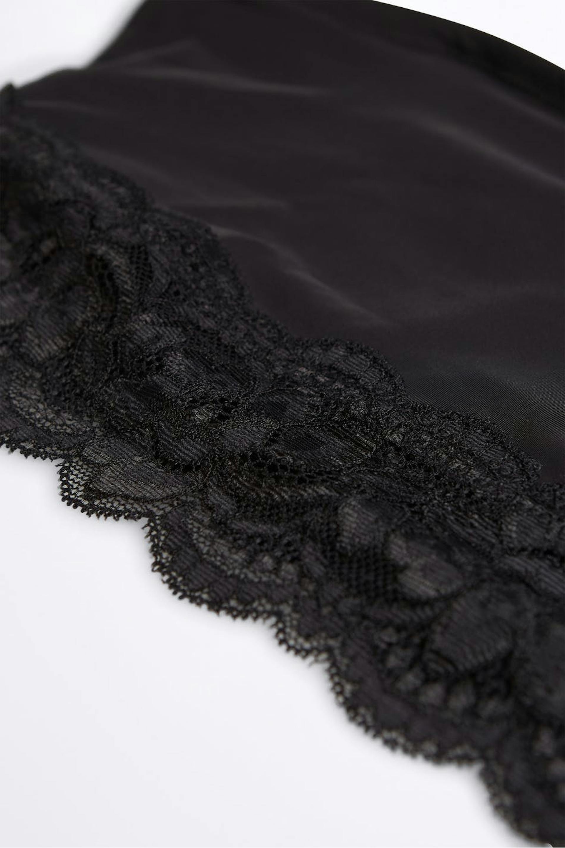 Bra with a lining at the front. The bra is black and has an edge in lace at the hem. It is made of microfiber and has an elastic band at the edges.