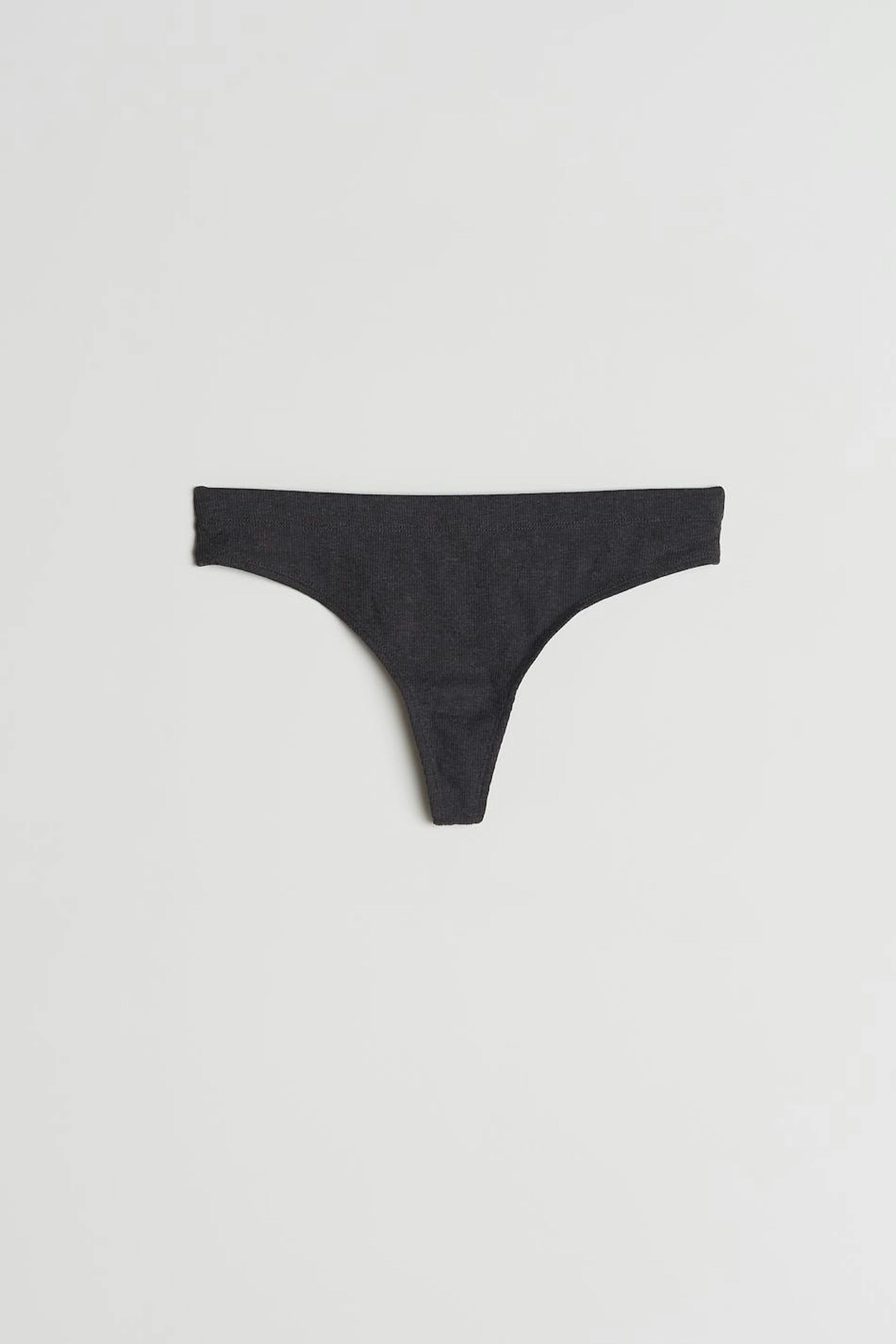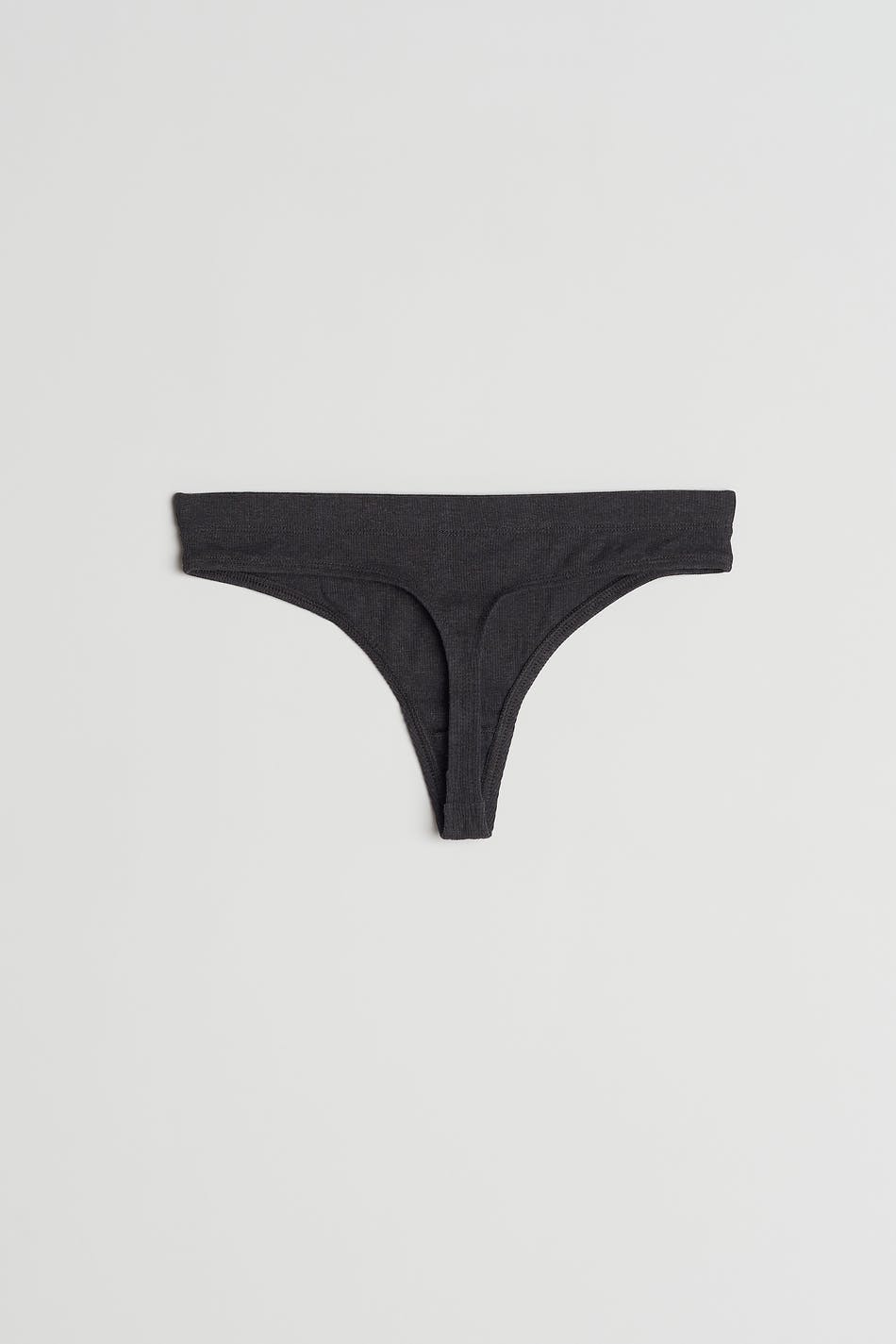 Soft thongs with a ribbed quality. The thongs are grey and have a soft material in cotton. They have a ribbed quality.