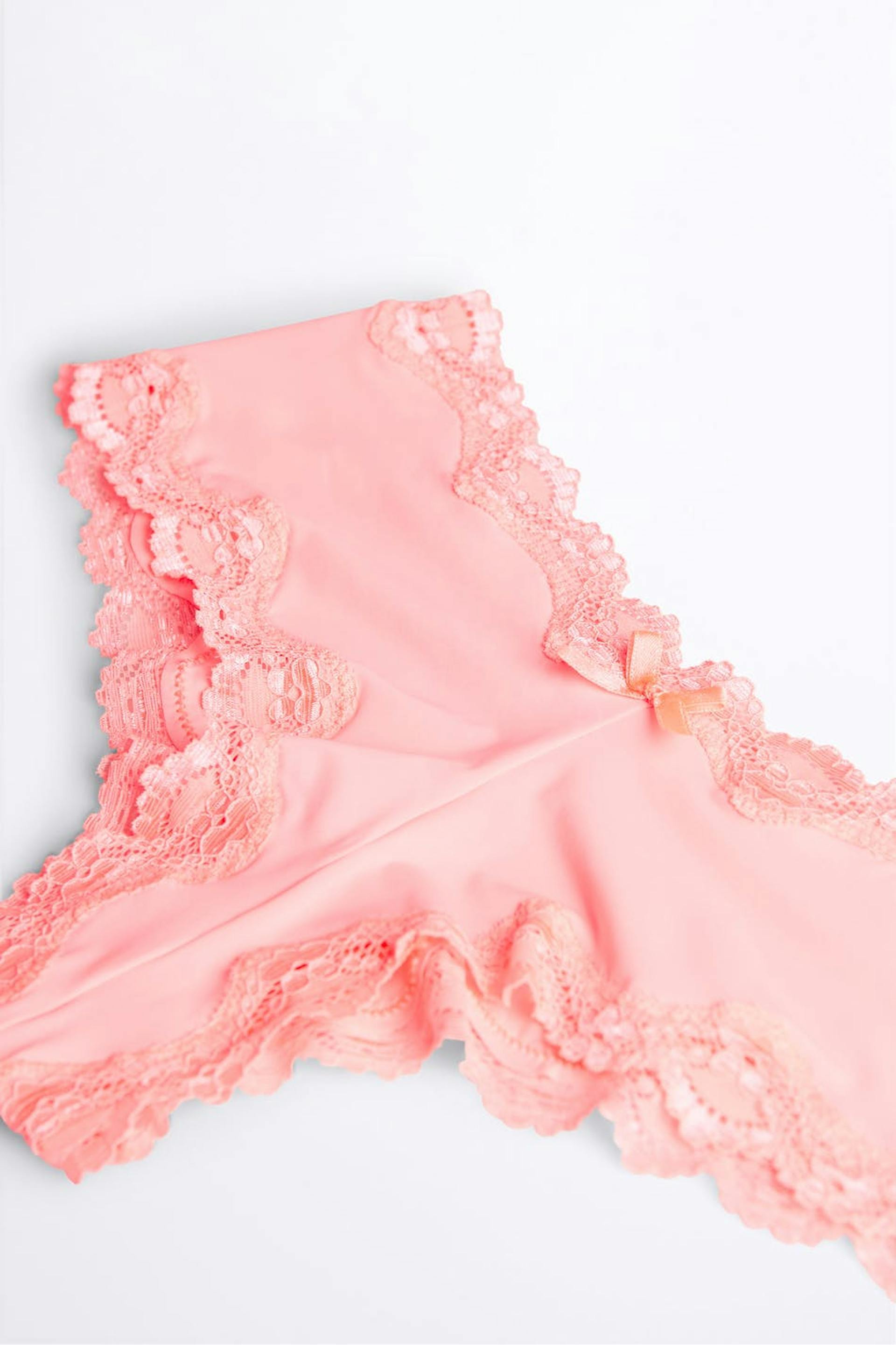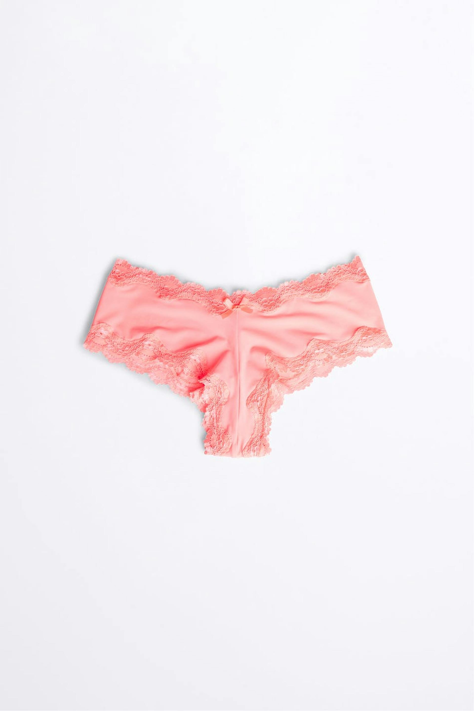 Pantie with a fitted fit. The pantie is orange and has edges in lace. It is made of microfiber and has a low waist.