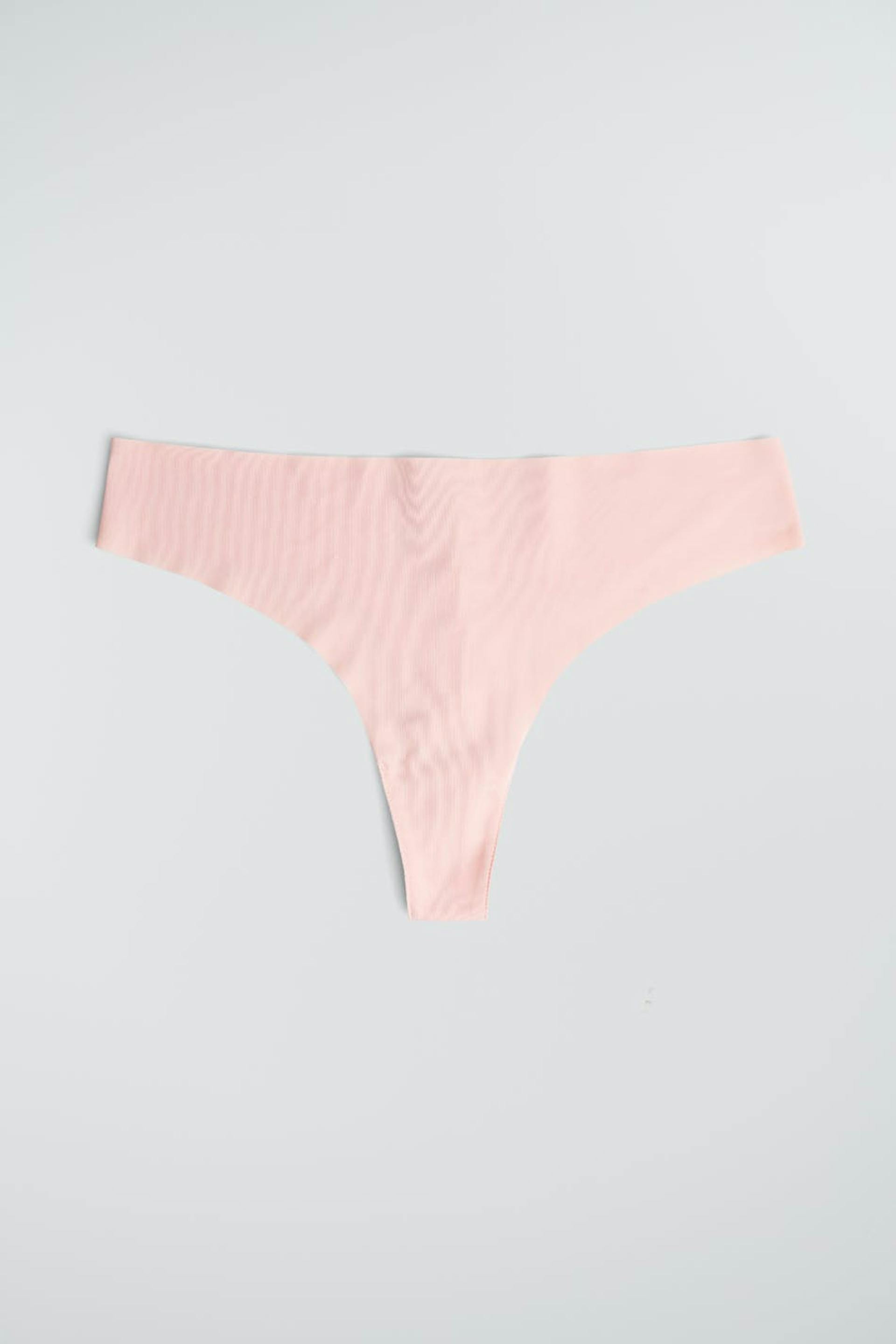 Thong with a lining in cotton between the legs. The thong is faded rose. It is made of microfiber.