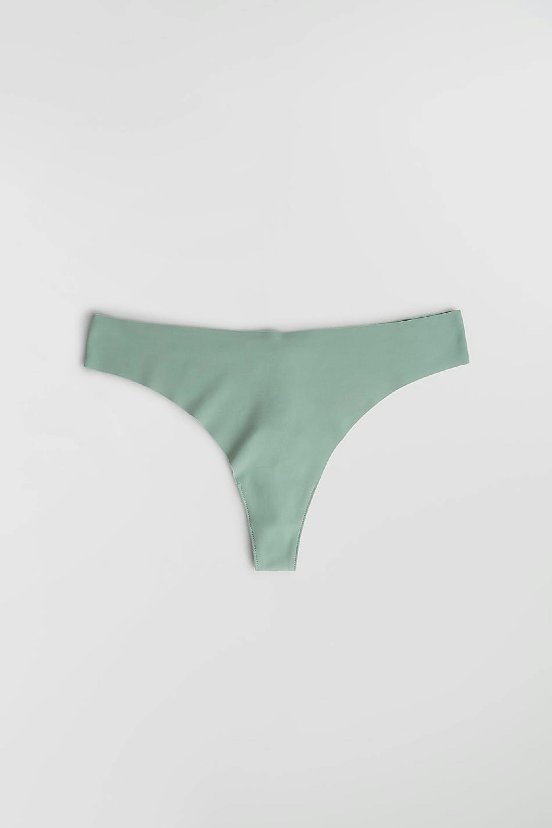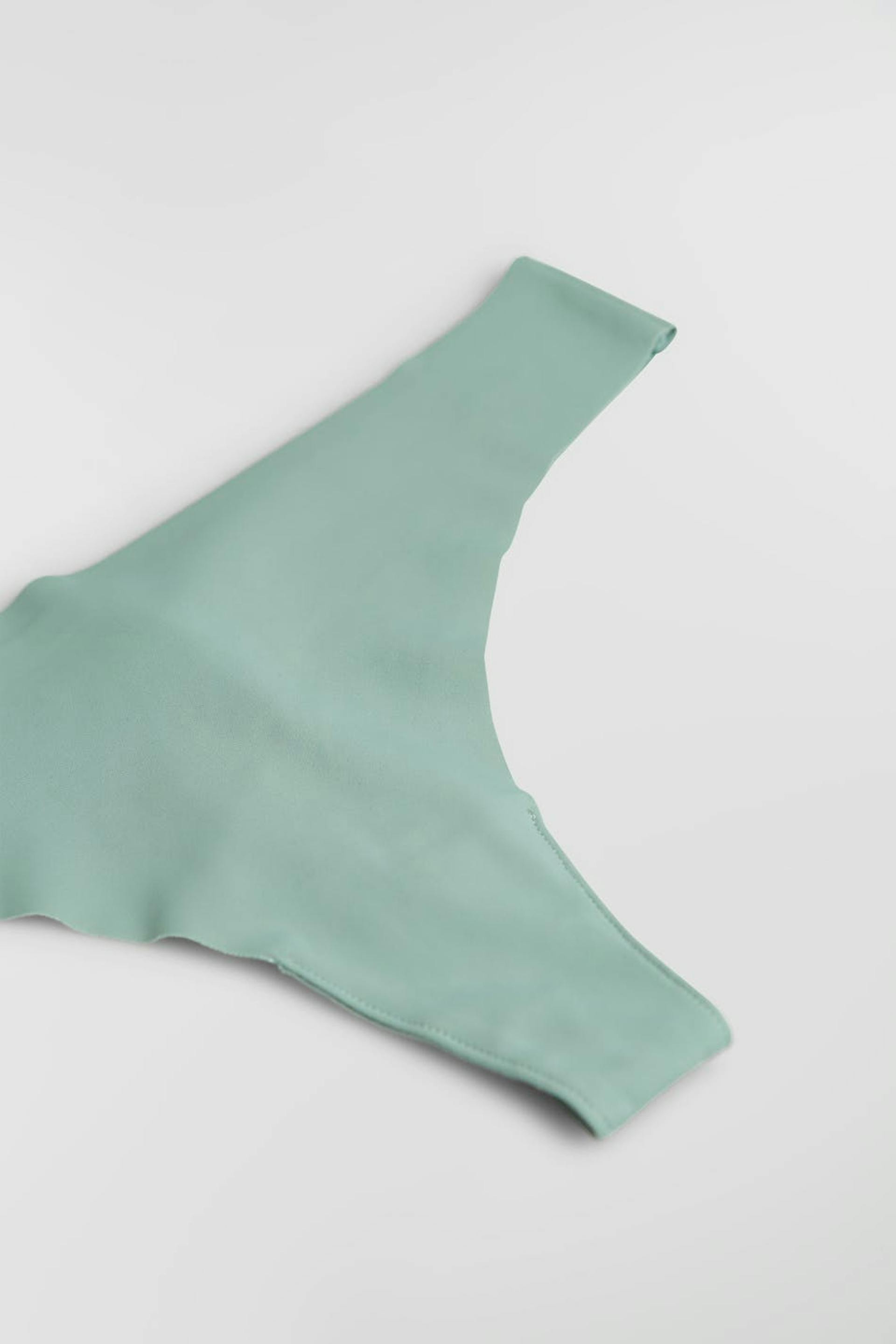 Thong with a lining in cotton between the legs. The thong is green. It is made of microfiber.