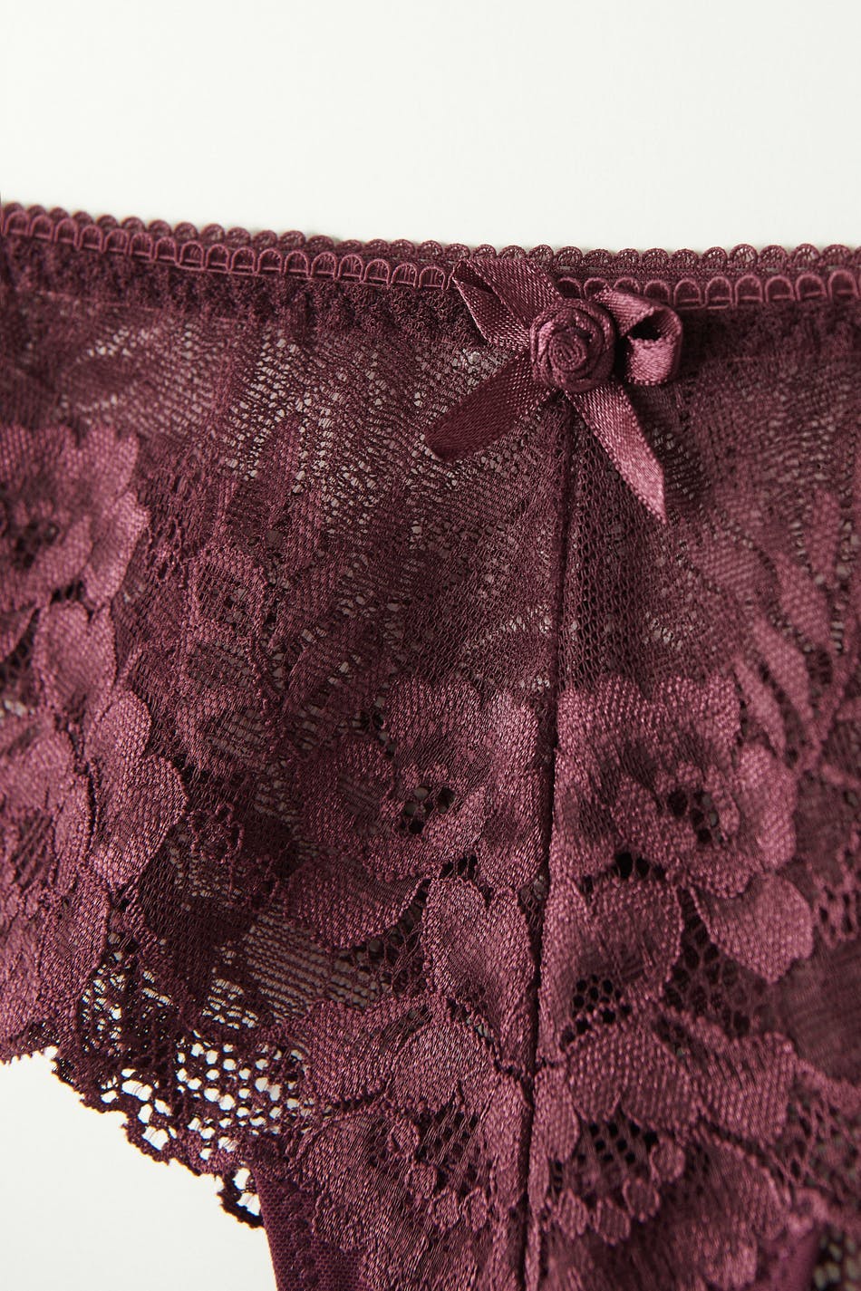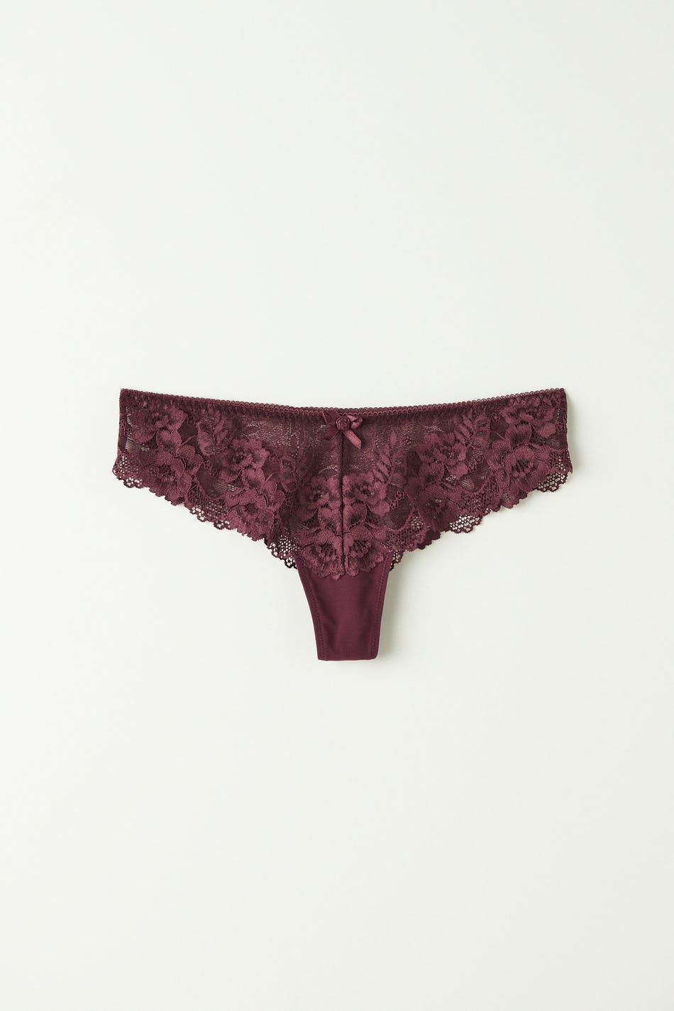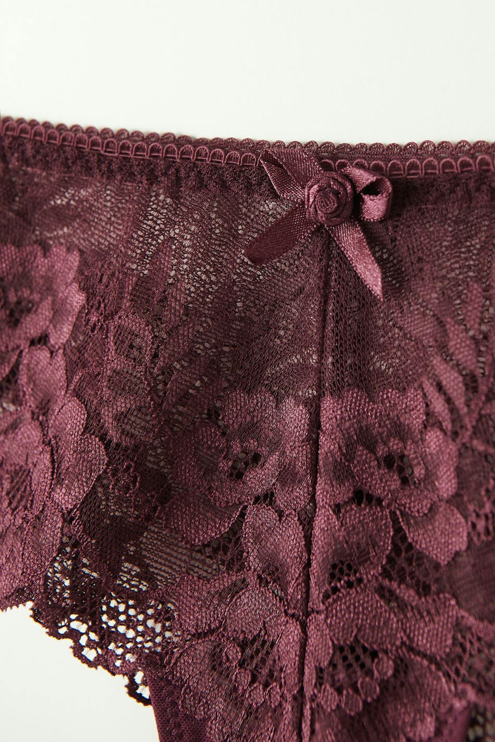 Soft thongs in lace with a bow detail at the front. The thongs are red and have a crotch lining in cotton.