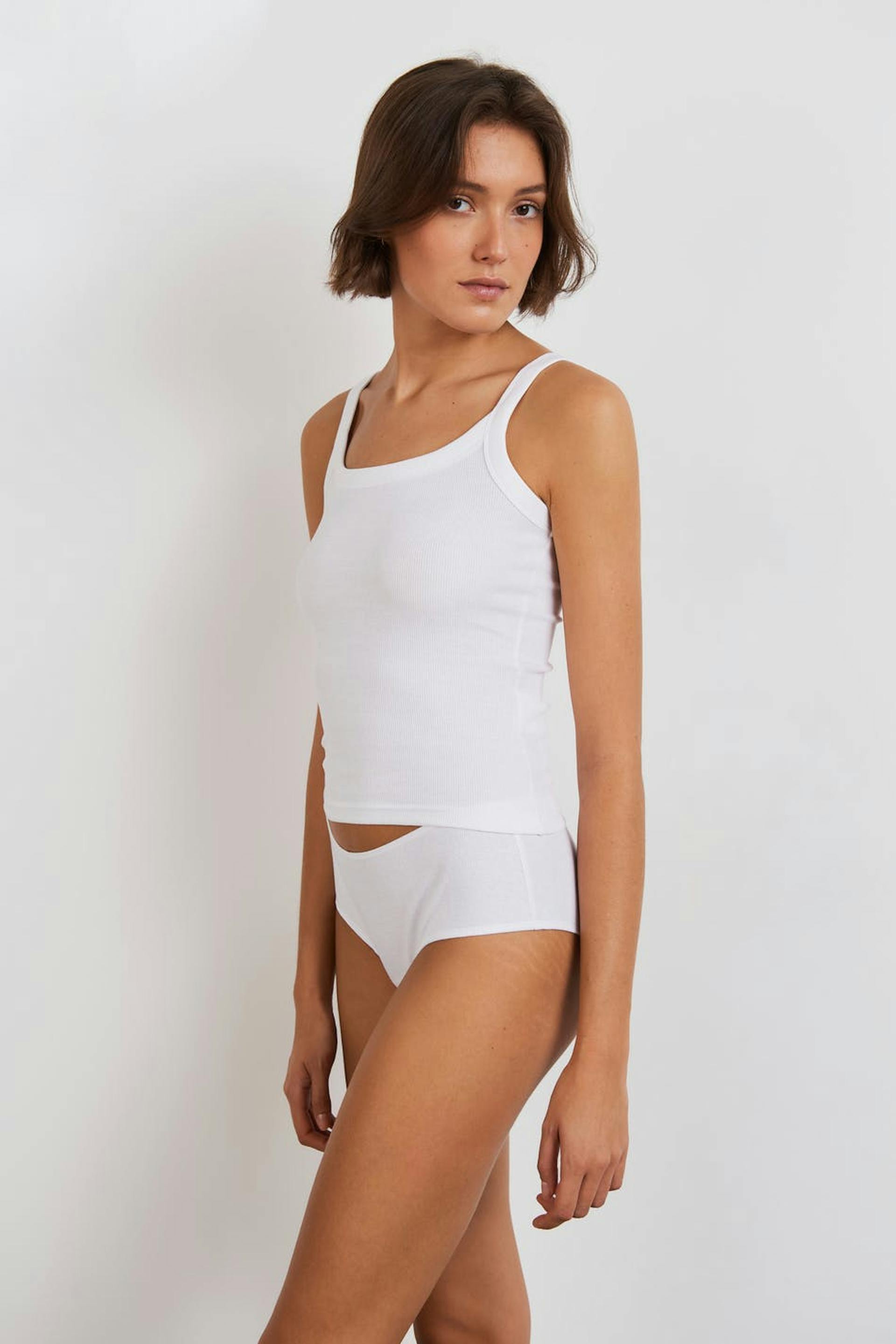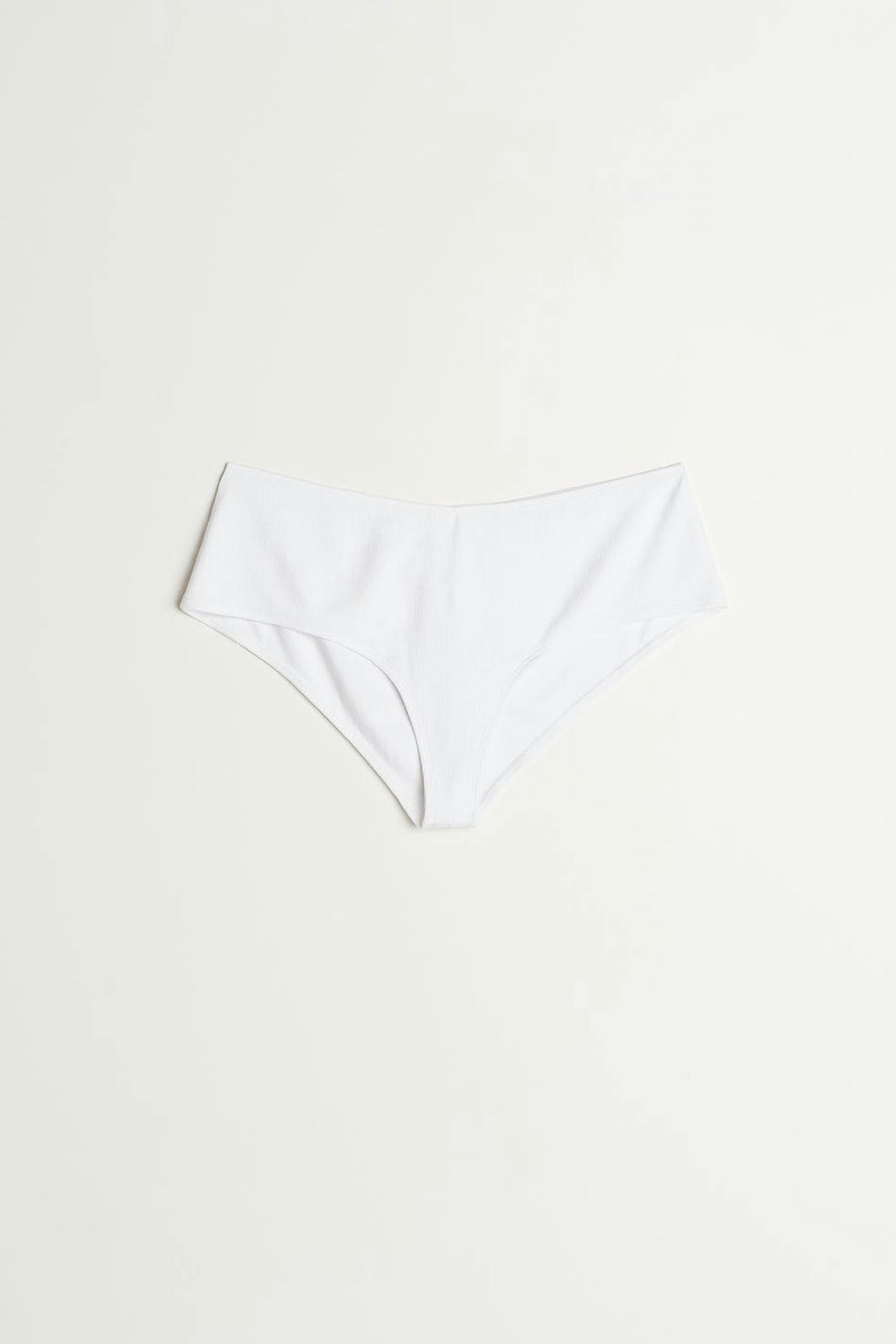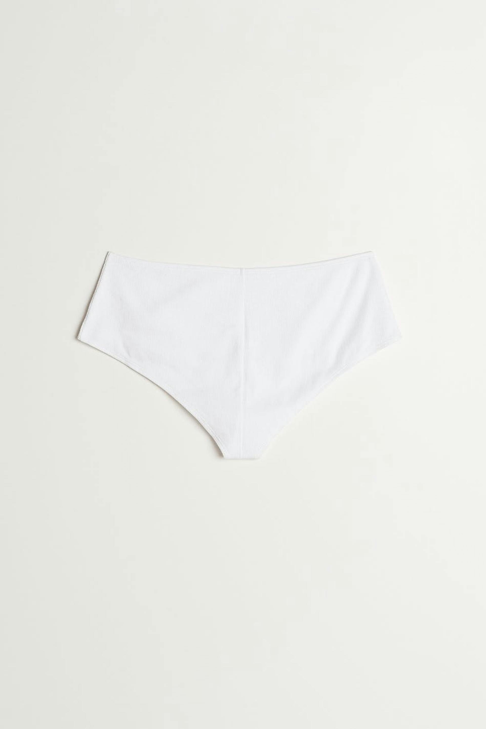 Ribbed Brazilian panties with a fitted fit. The Brazilian panties are white and have a soft material in cotton.