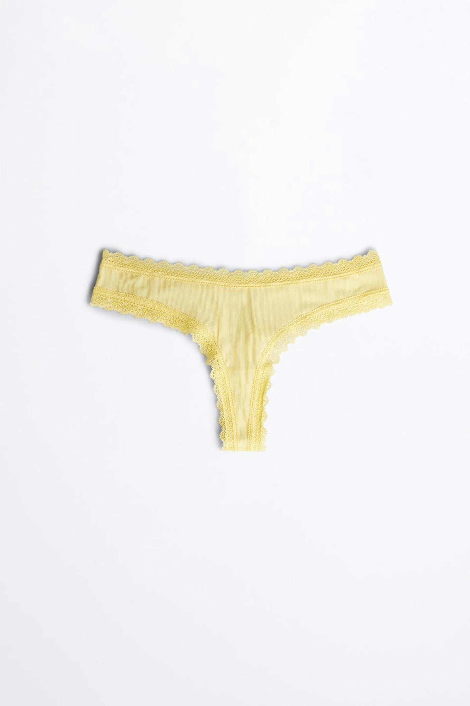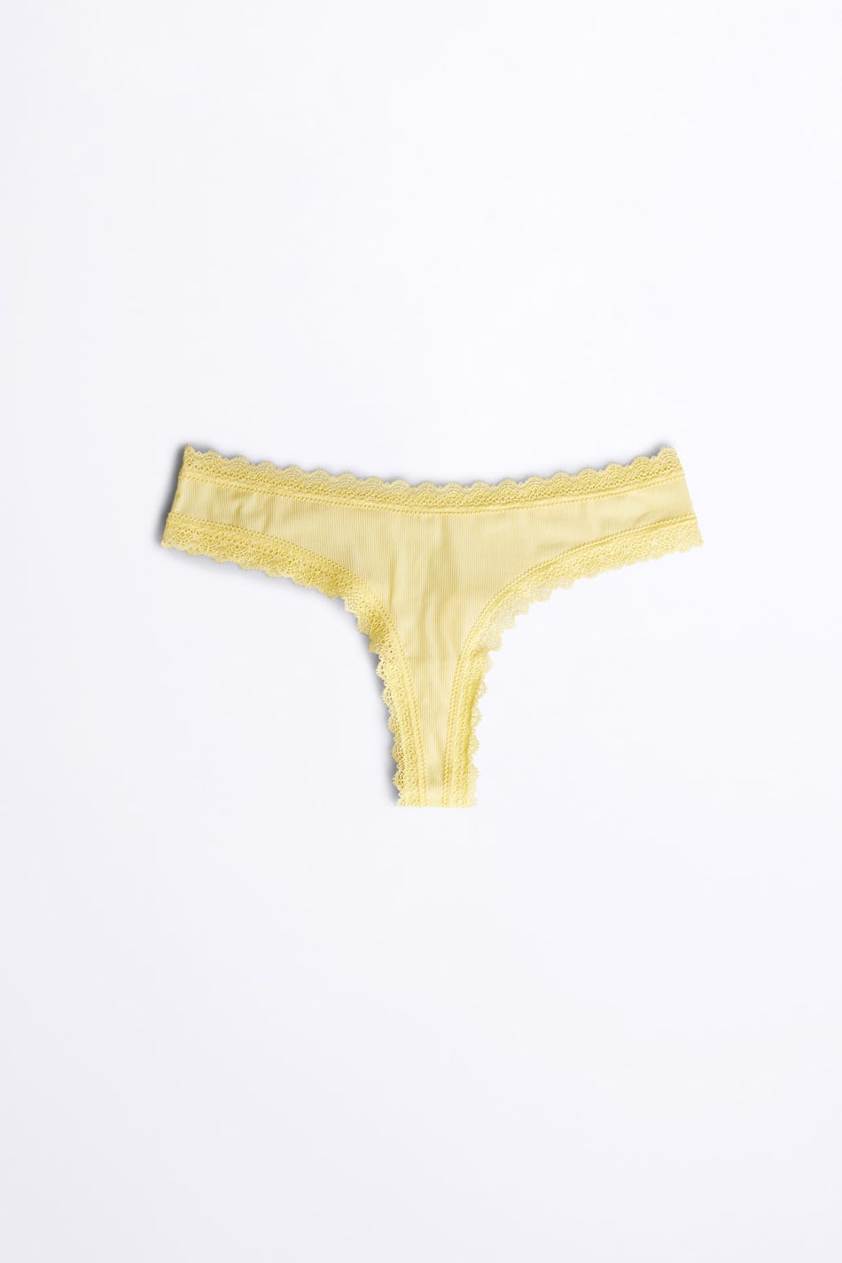 Waist Rise: Low waist Fit: True to size Detail: Lace Description: Lace, Recycled, Ribbed Additional Description: Production unit: Dongguan Zhonghao Clothing co. ltd. Supplier: Crown-Max (H.K.) Ltd
