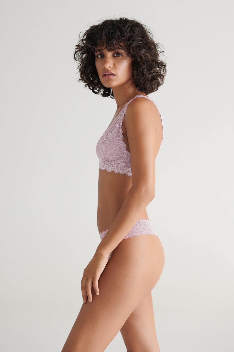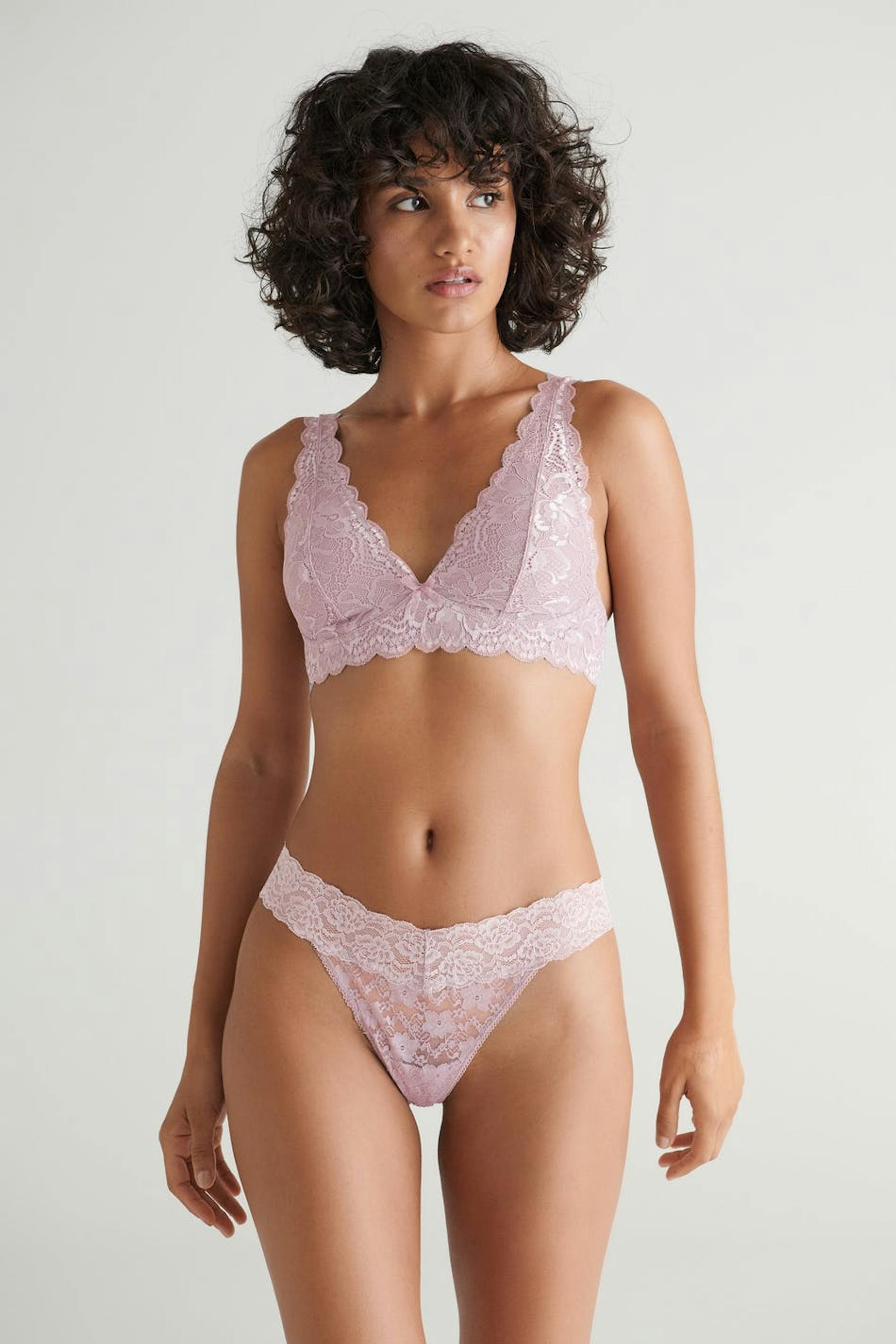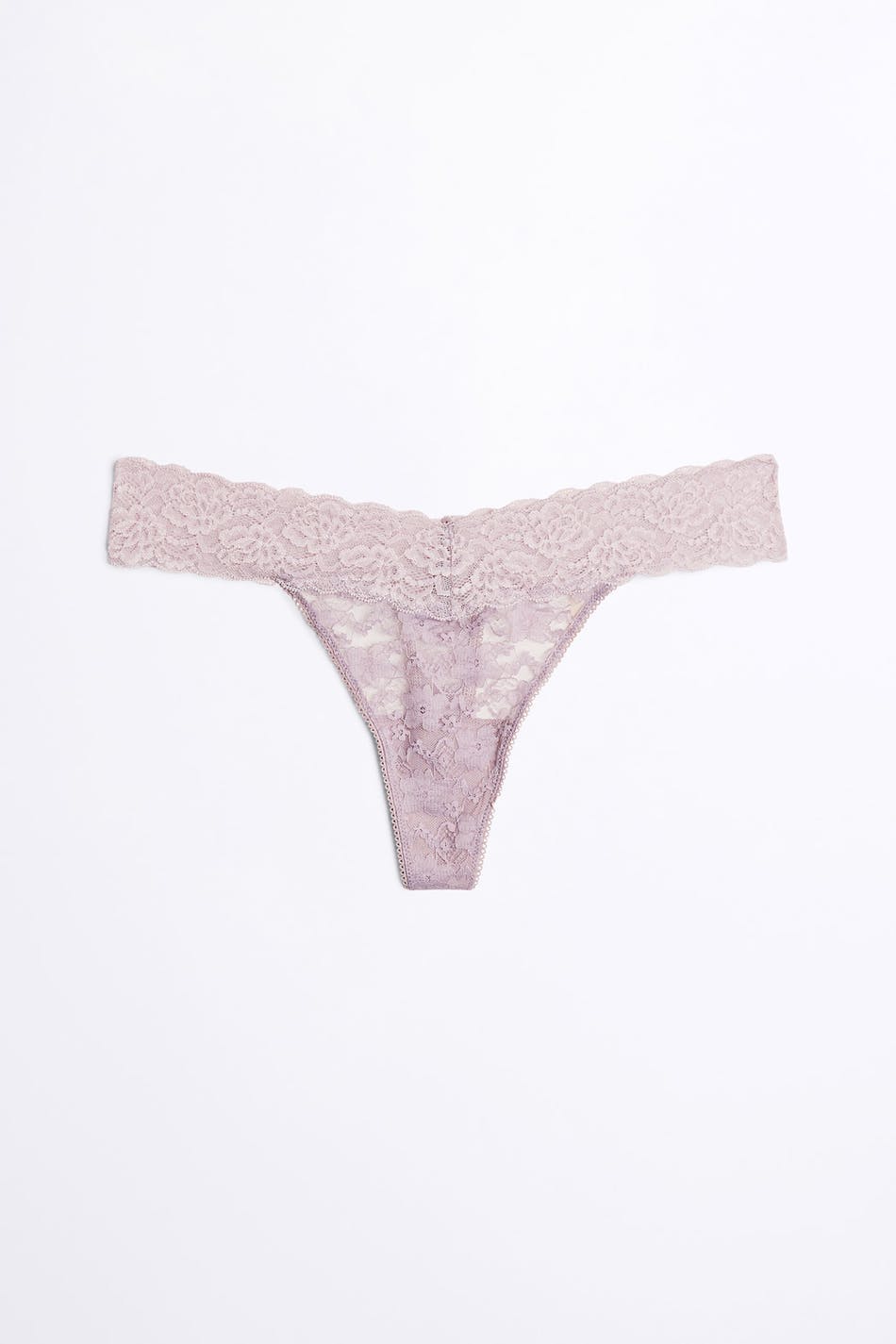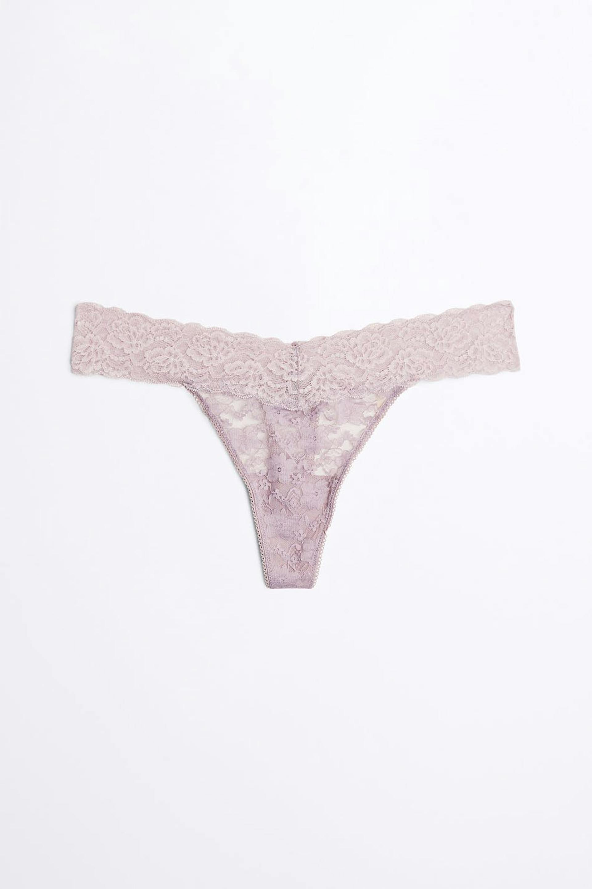 Comfy thongs with elastic lace fabric. The thongs are pink and have a lined crotch.