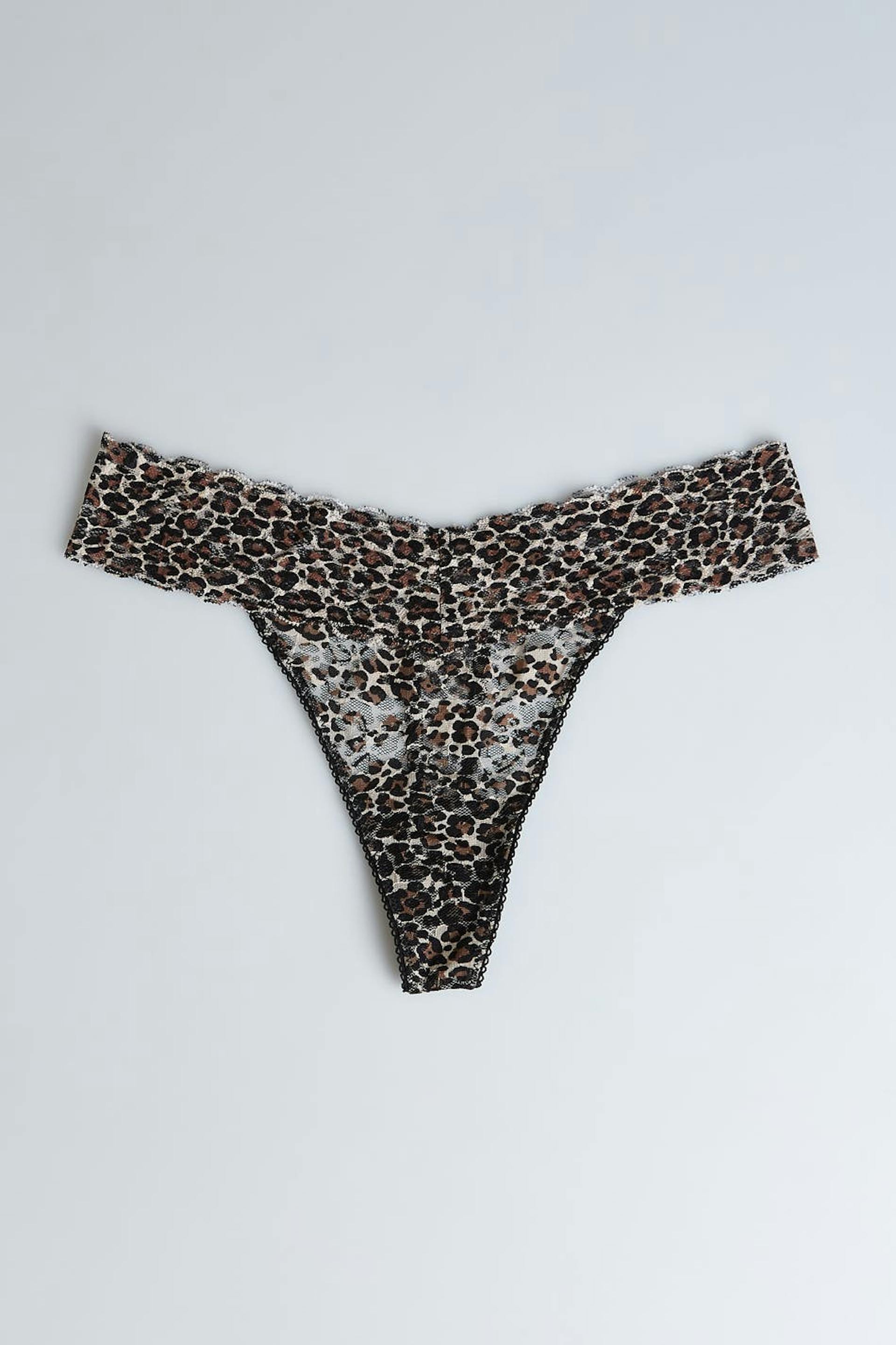 Panties with a thong design. The panties are leopard. They are made of lace.