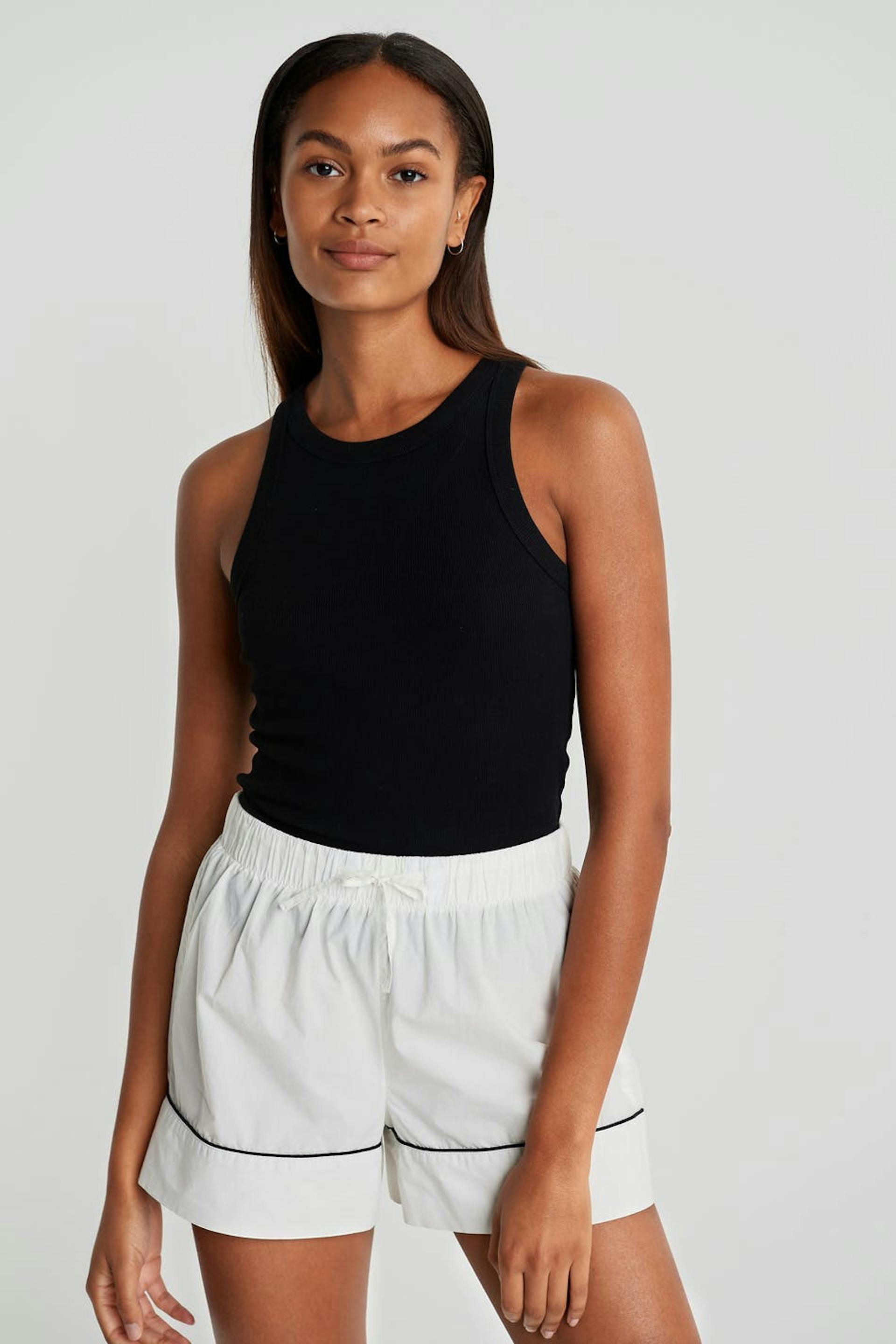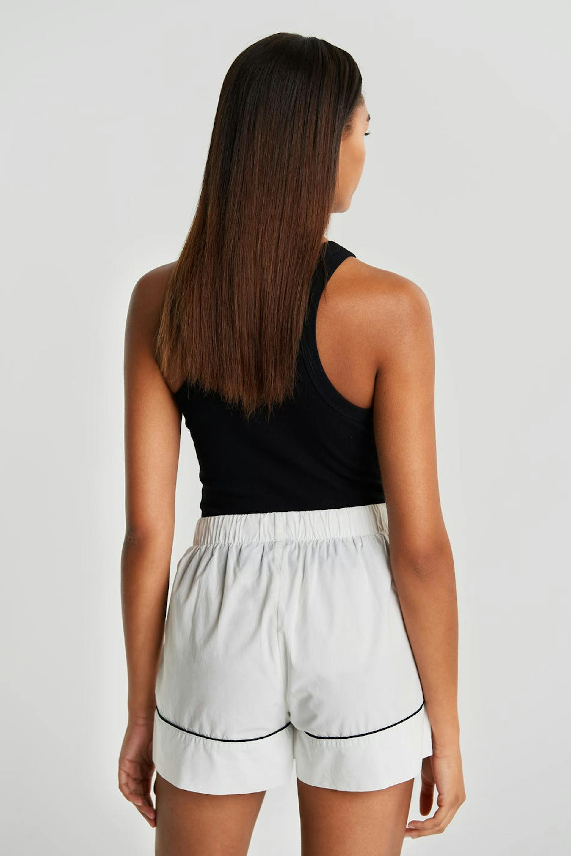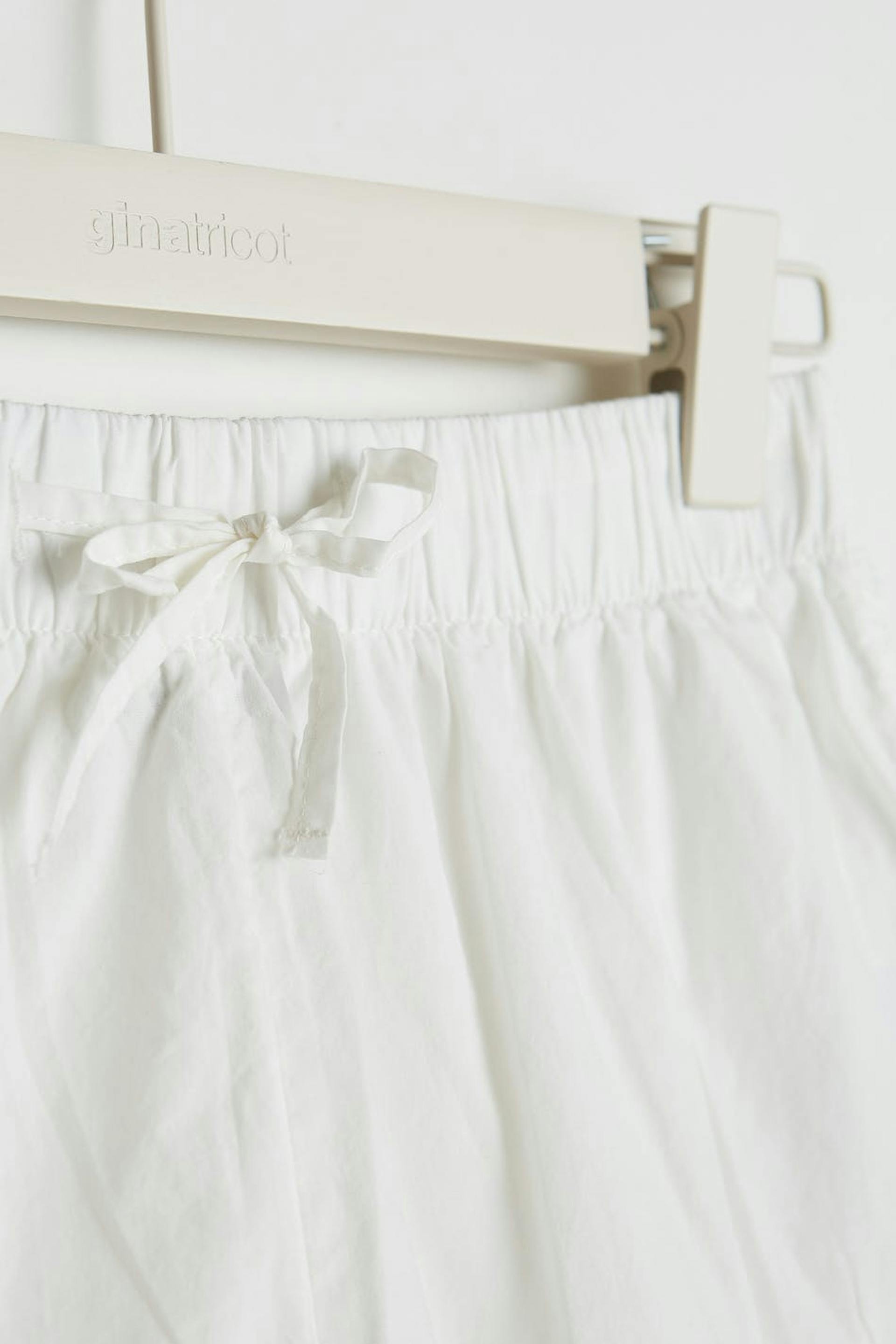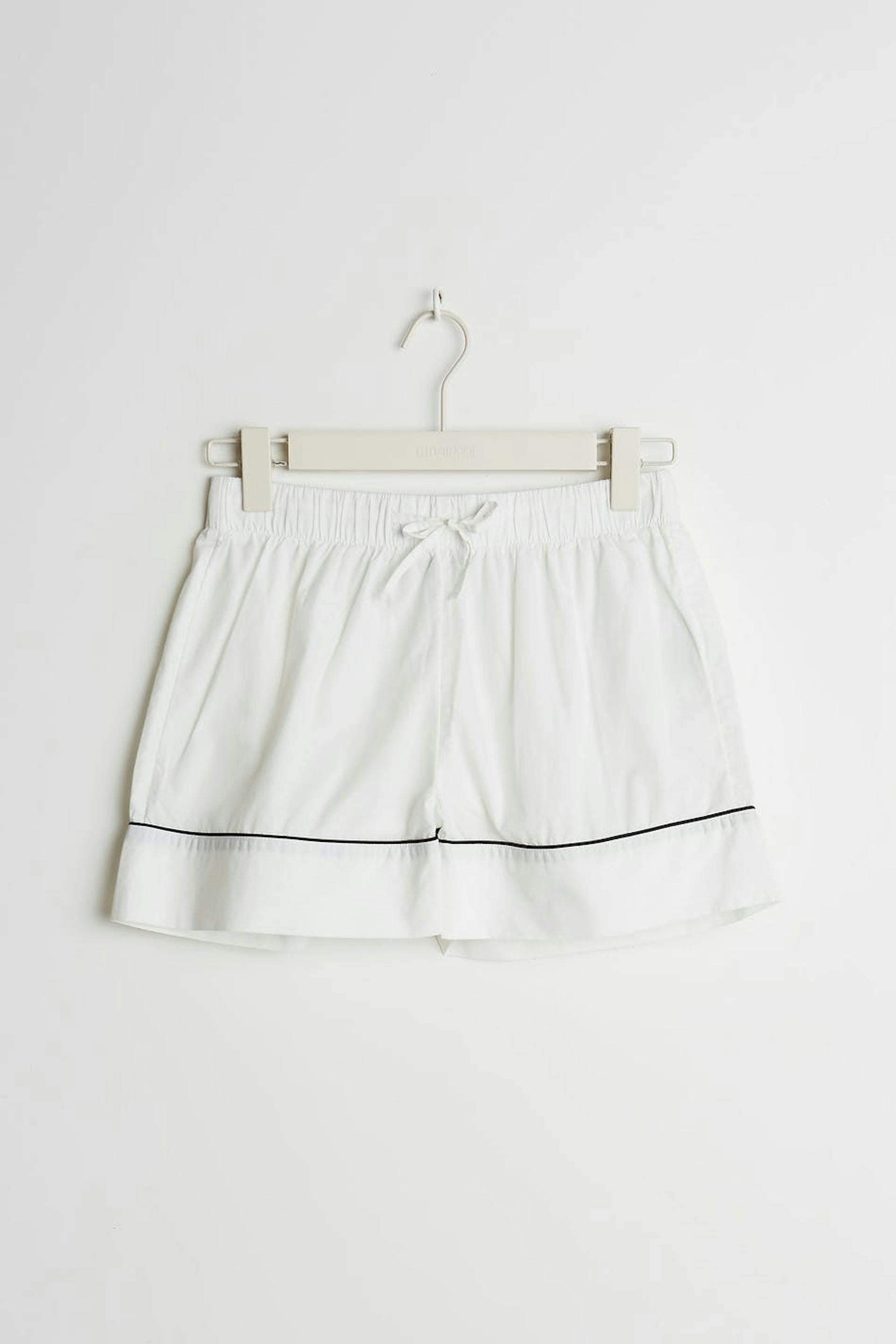 Short pyjama shorts with details with band at the hem. The shorts are white. They are made of satin.