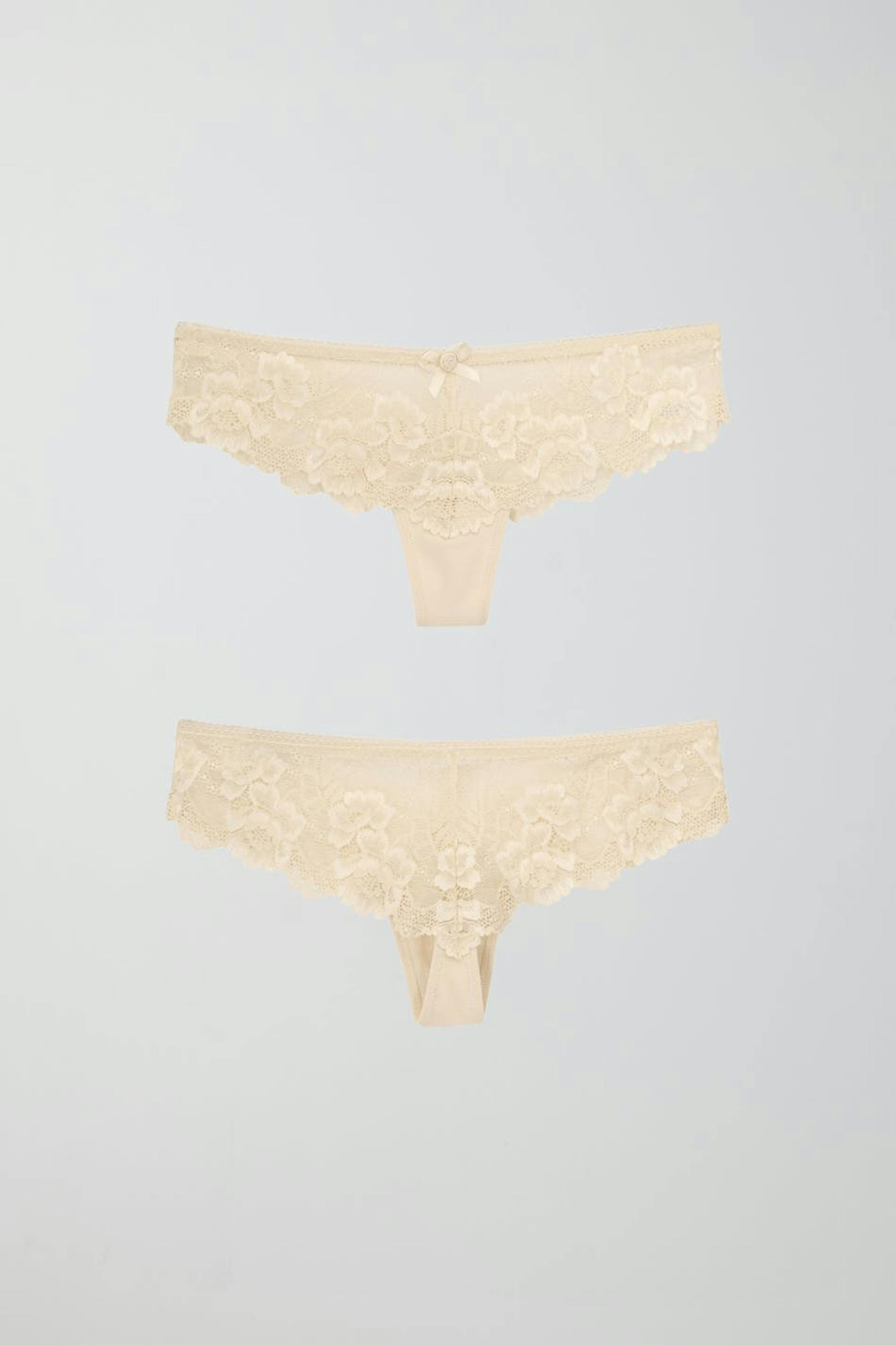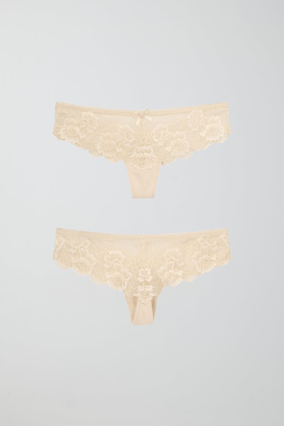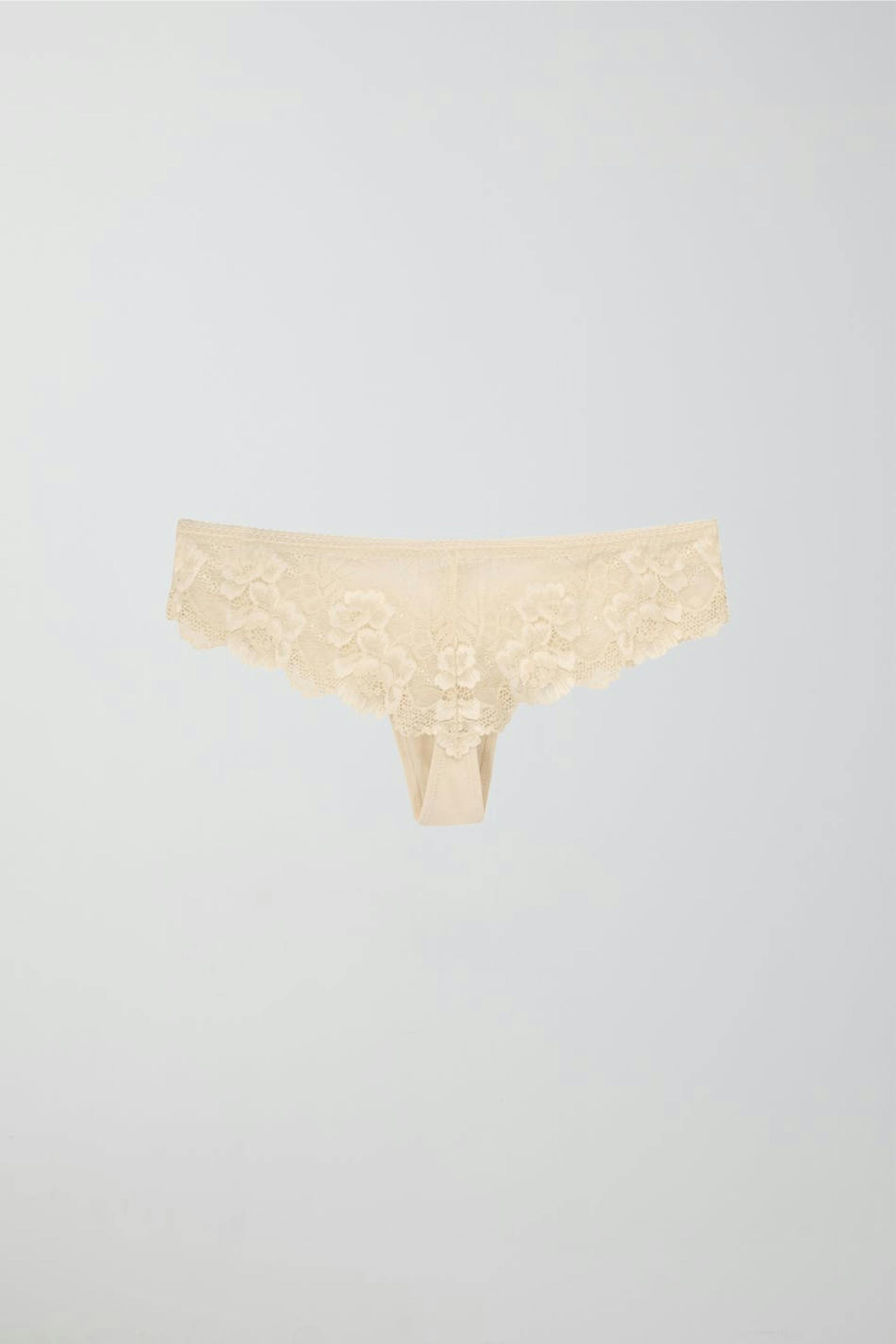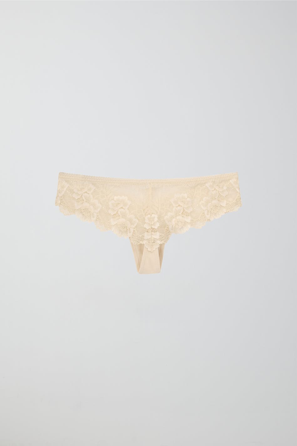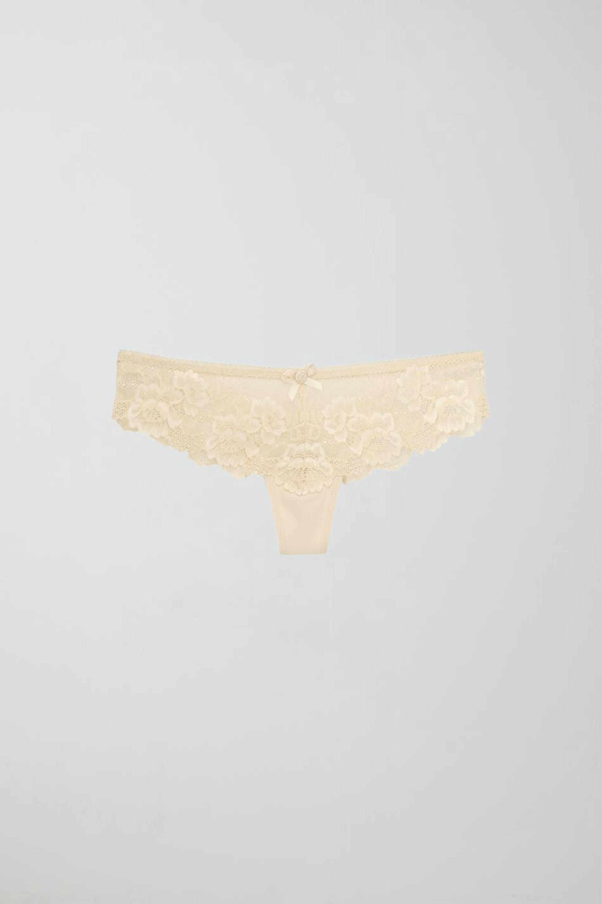 Waist Rise: Low waist Fit: Figure hugging Detail: Bow, Lace, Elastic in waistband Description: Lace, Recycled GRS Certified Additional Description: Production unit: Vietnam oceam garment company LTD Supplier: National Brassieres & Underwear Fty Ltd-V 90% GRS Certified polyamide