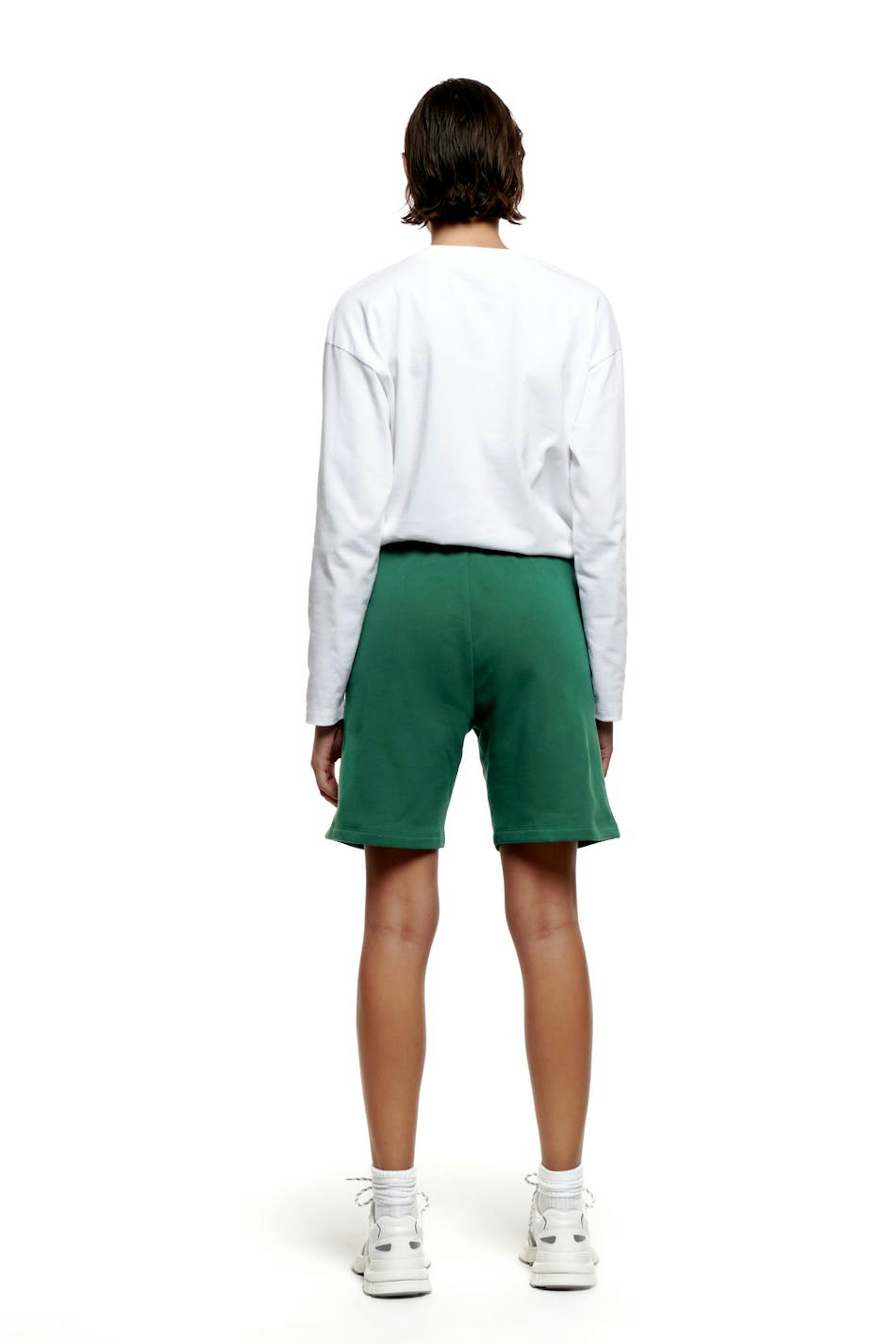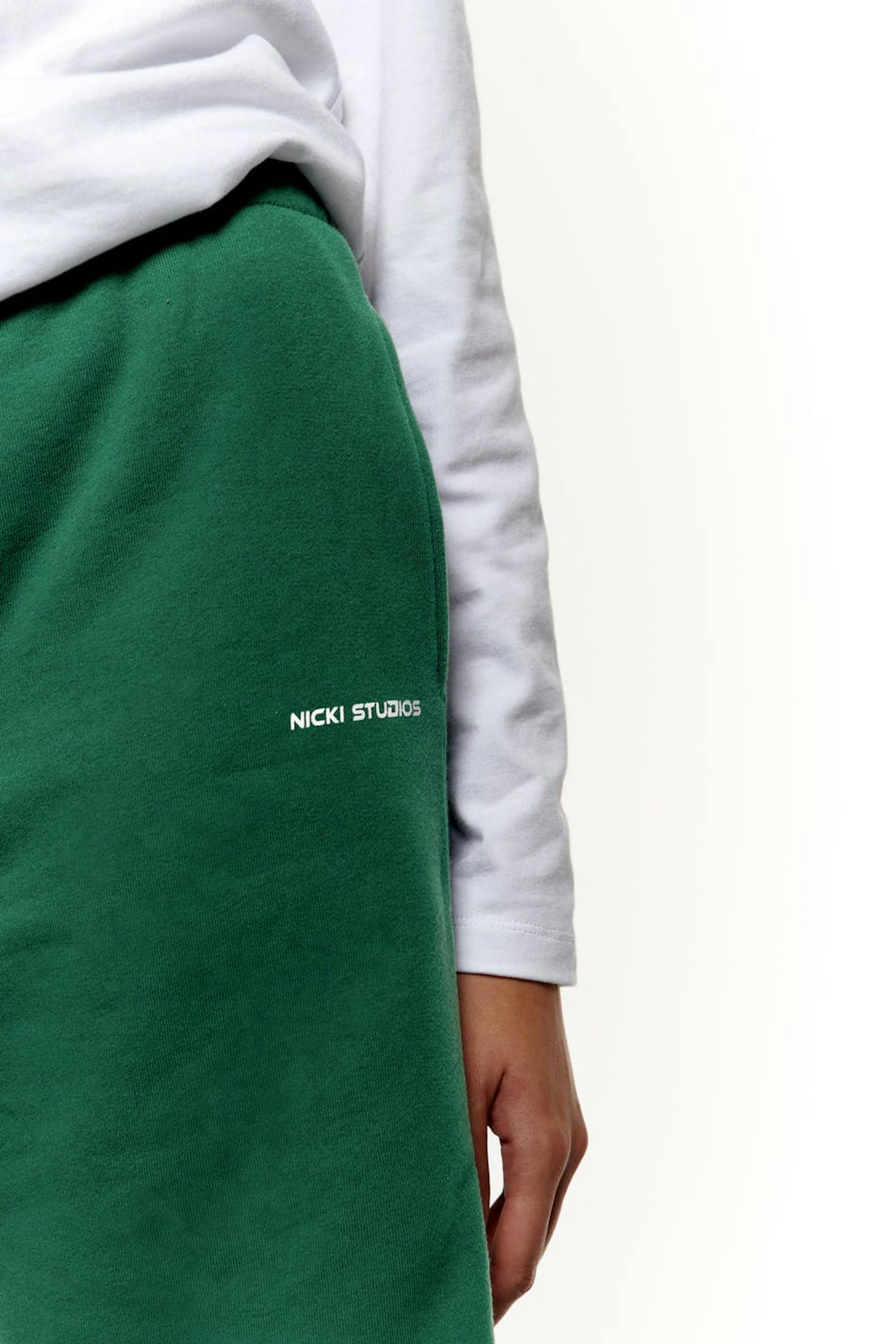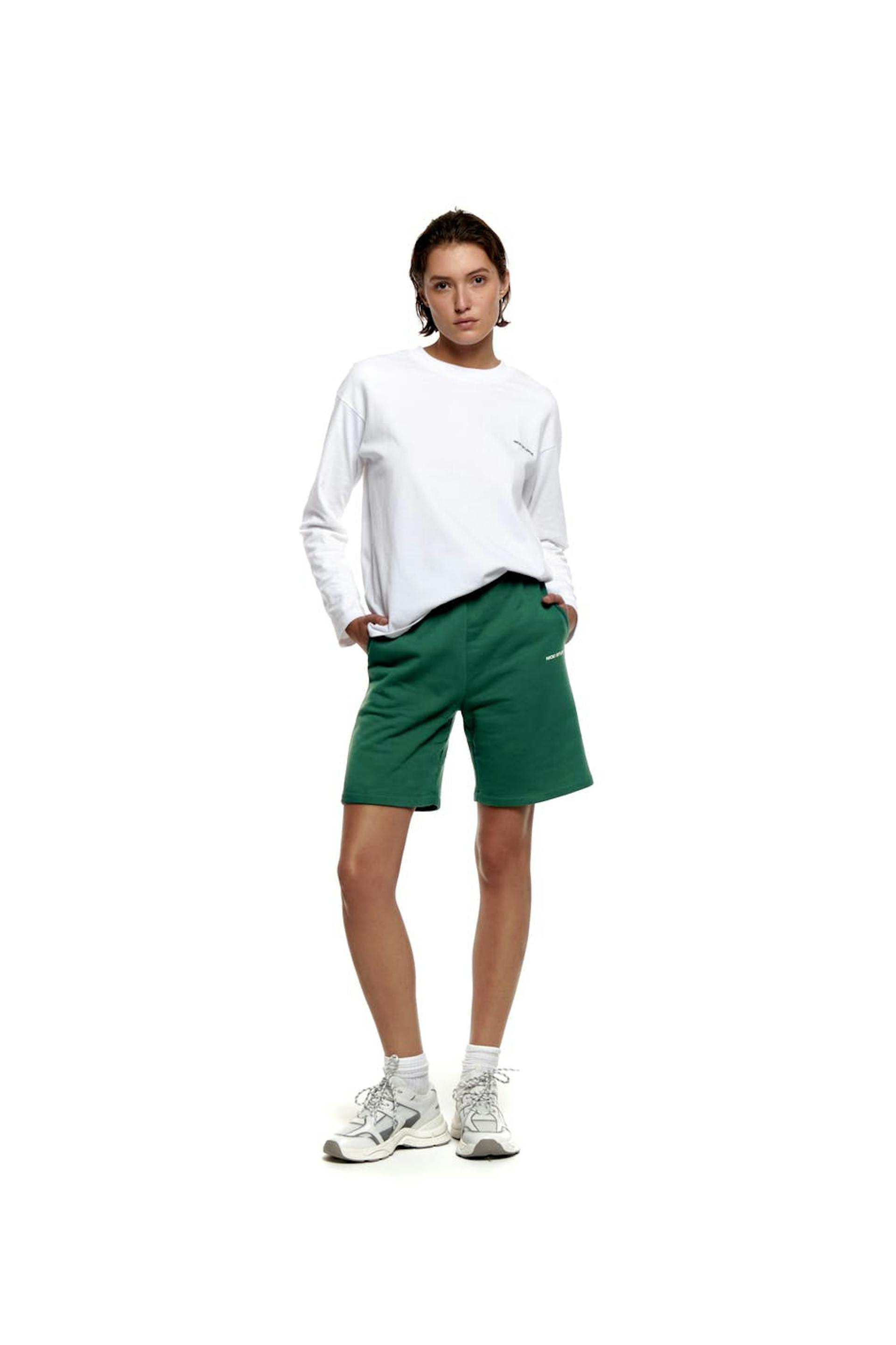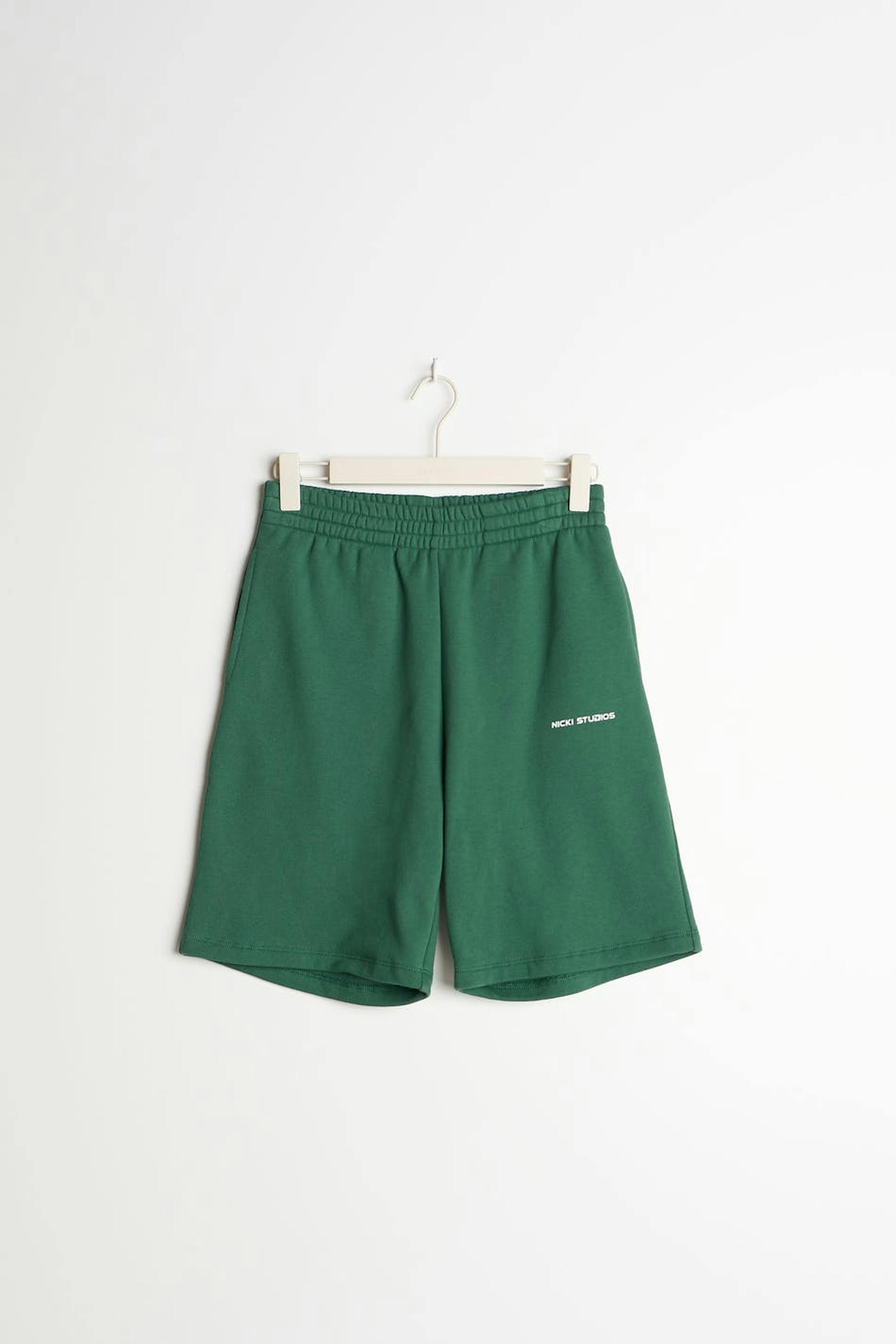 Nicki Studios X Gina Tricot. Jersey sweatshorts with a normal fit. The shorts are green and have a heavy cotton quality with a soft brushed inside. They have side pockets, a logo print at the front and a soft elastic at the waist.