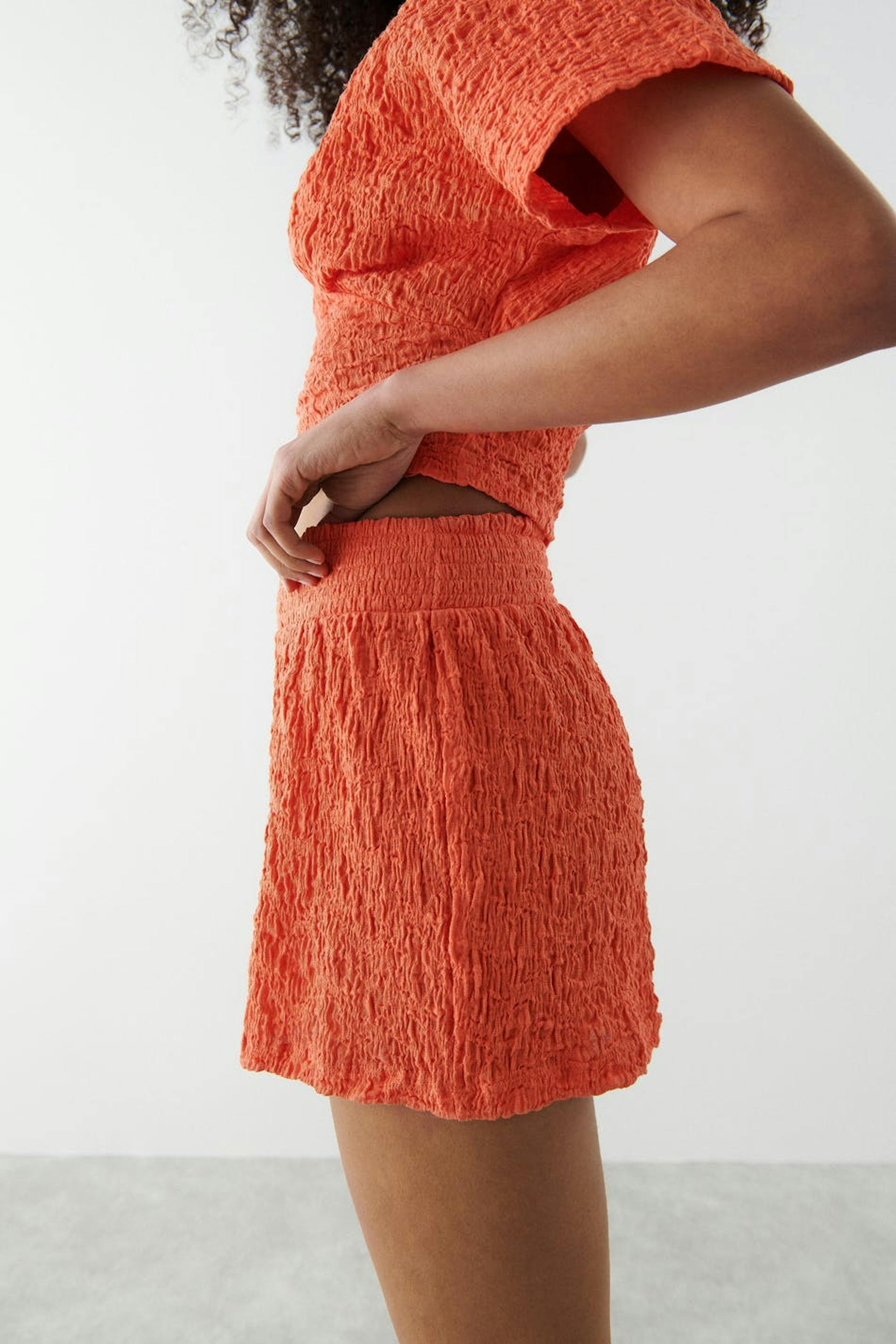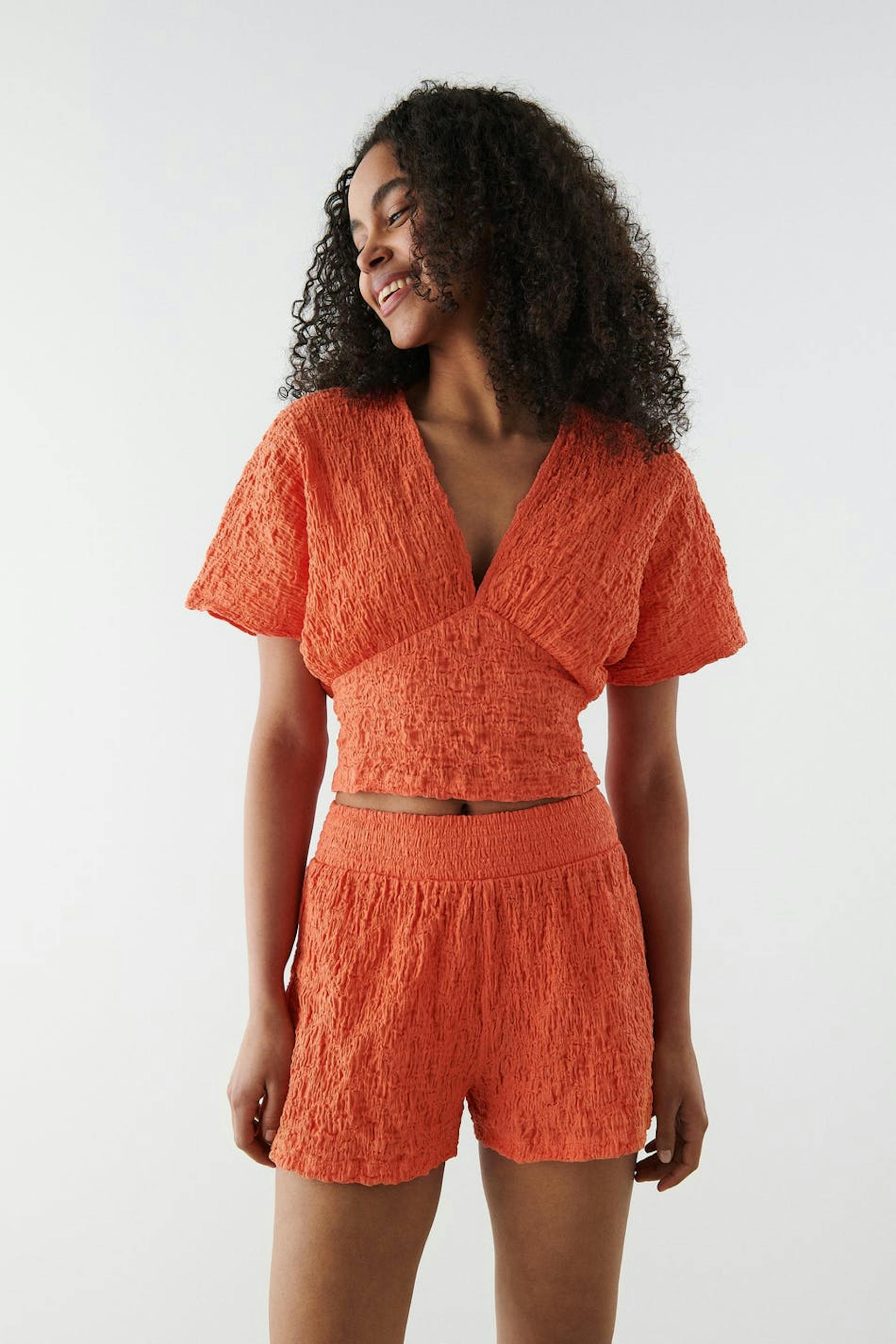 Jerseyshorts with a regular fit. The jerseyshorts is perfect for the spring and summer wardrobe and orange and has a waist in elastic.