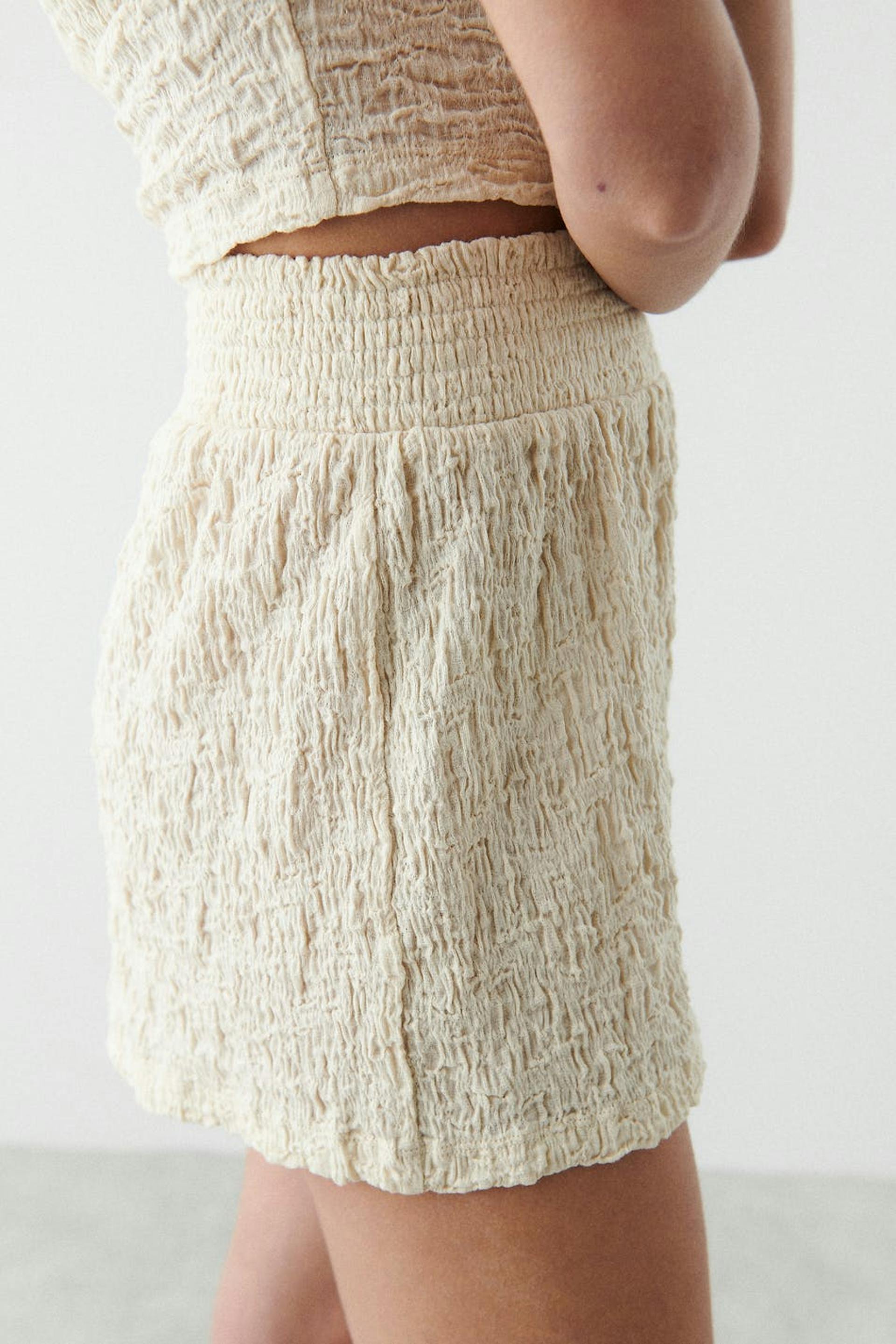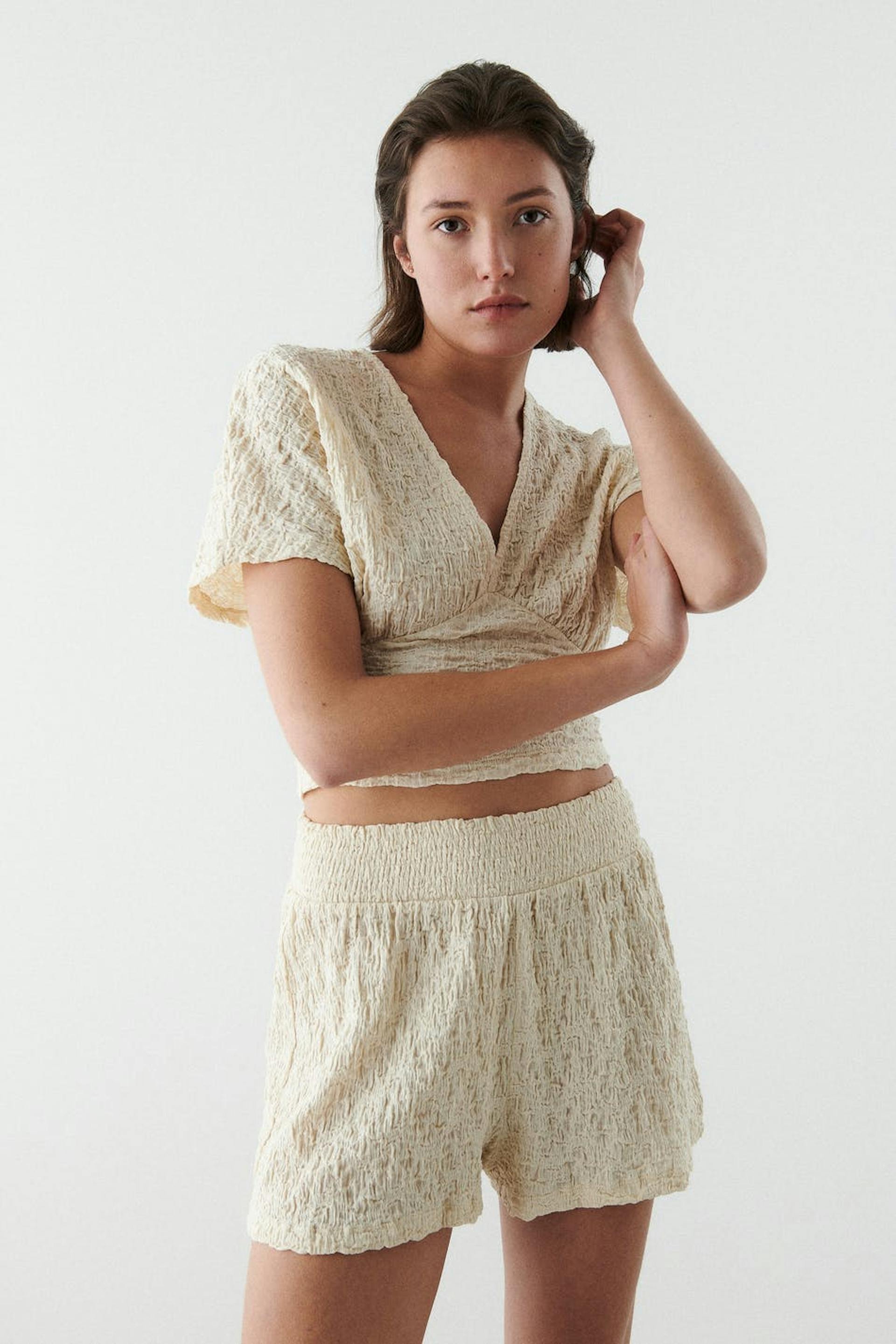 Jerseyshorts with a regular fit. The jerseyshorts is perfect for the spring and summer wardrobe and beige and has a waist in elastic.