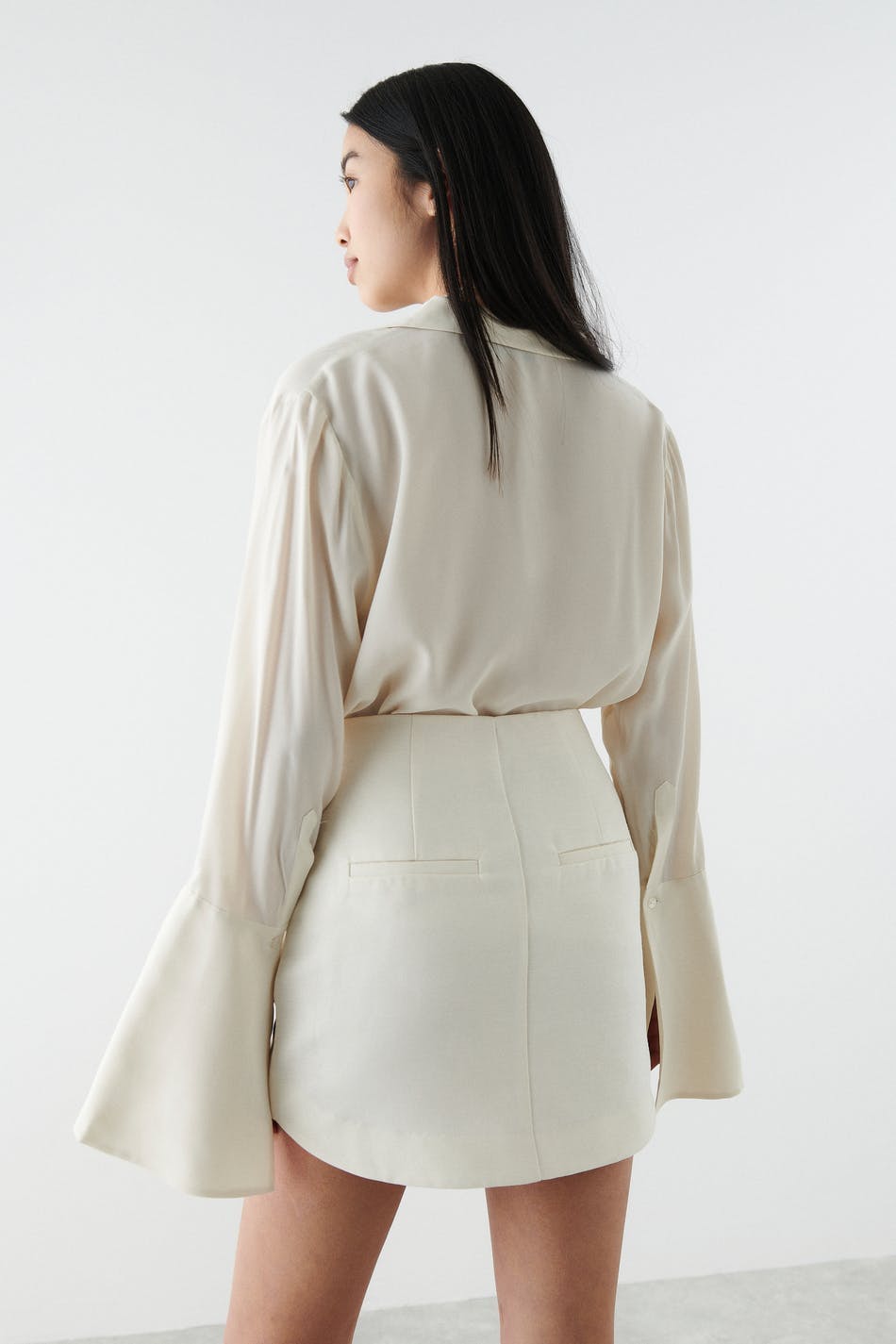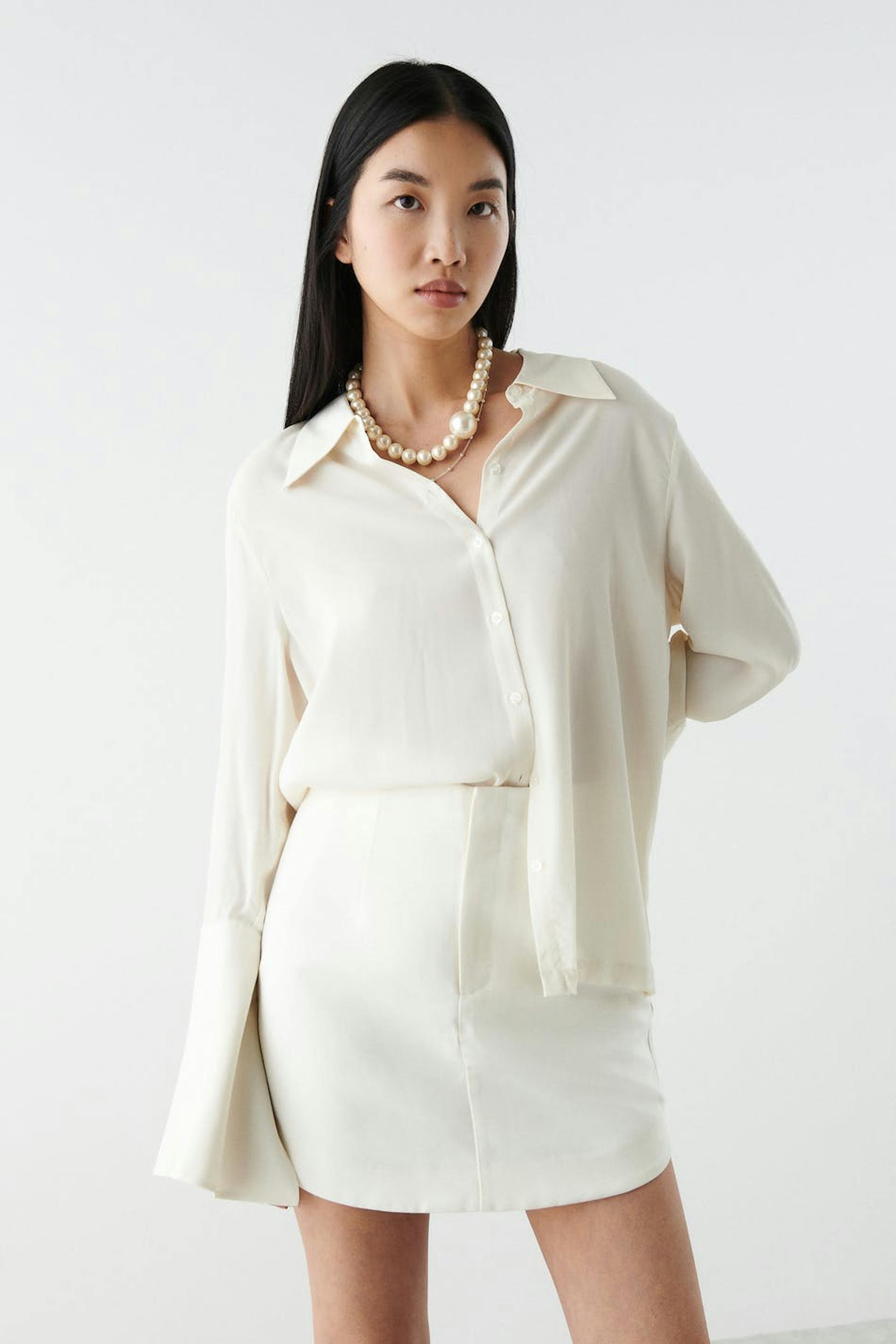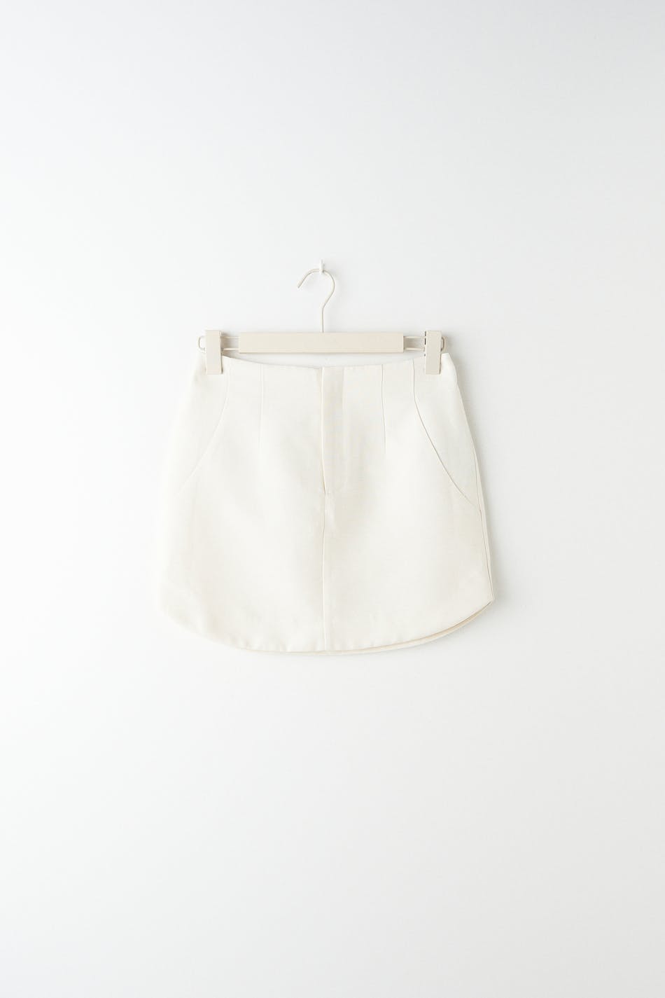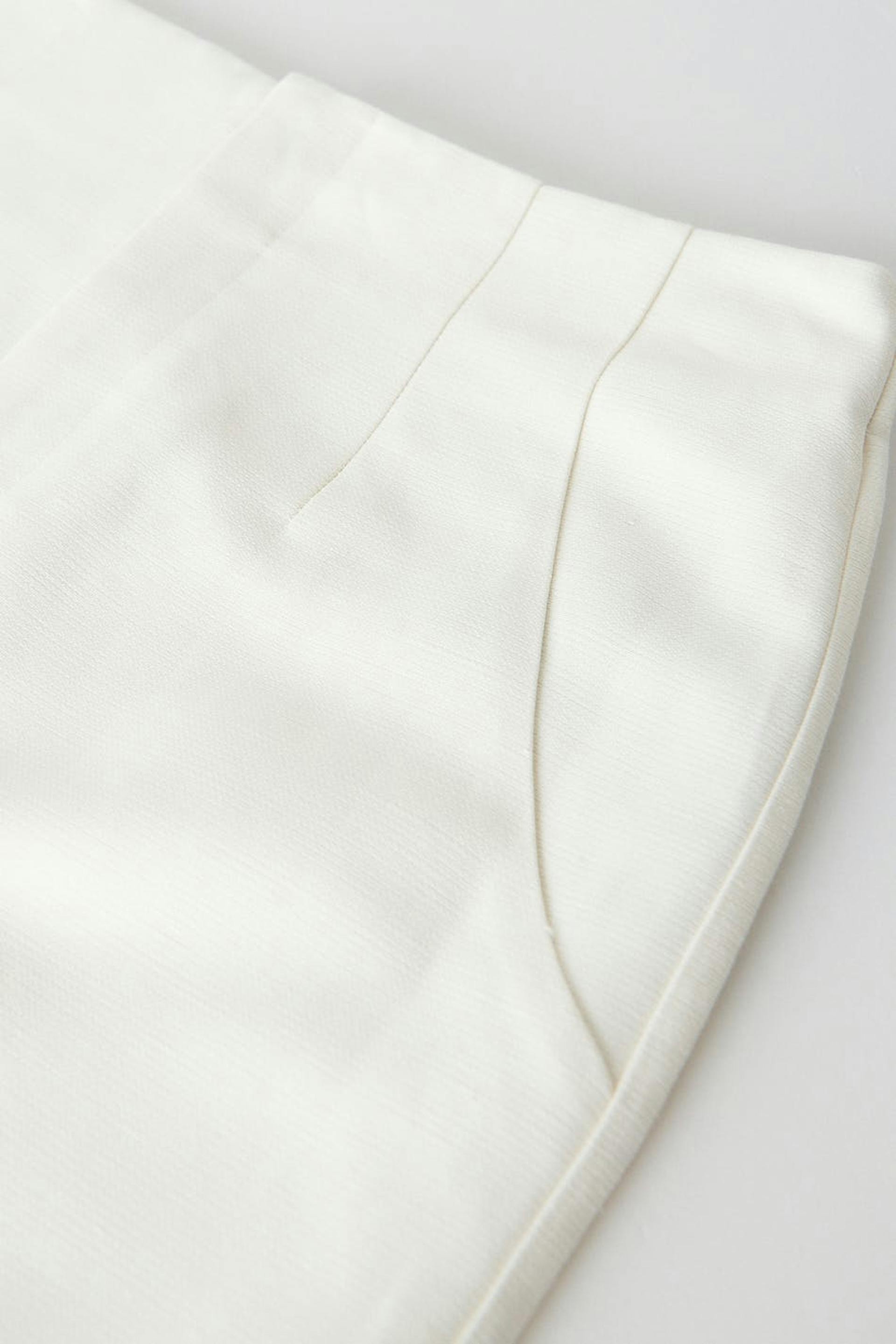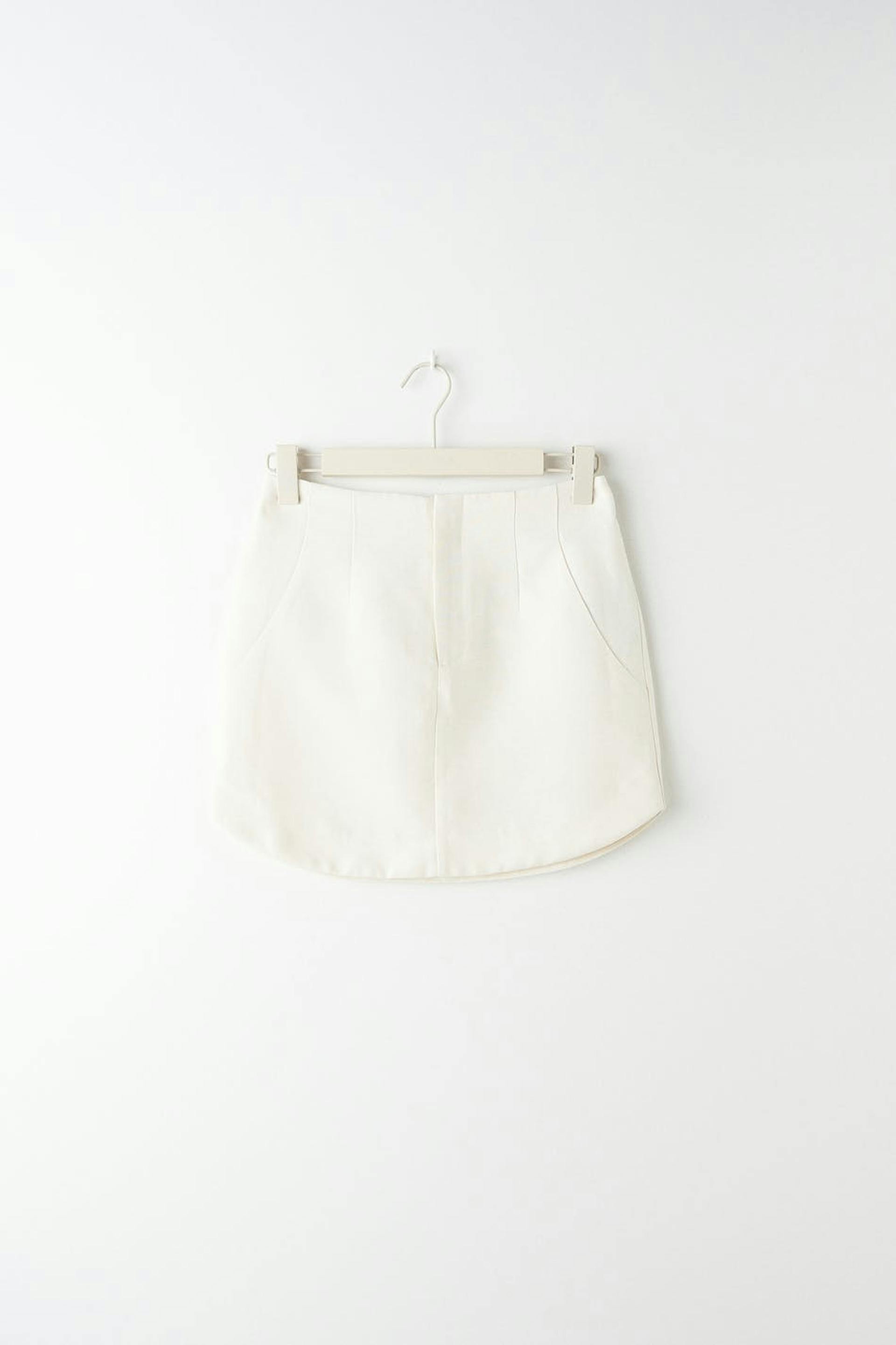 Mini skirt with high waist. The skirt is perfect for the party and white and has a zip fly. It has slit pockets at the back and decorative seam details in the sides.