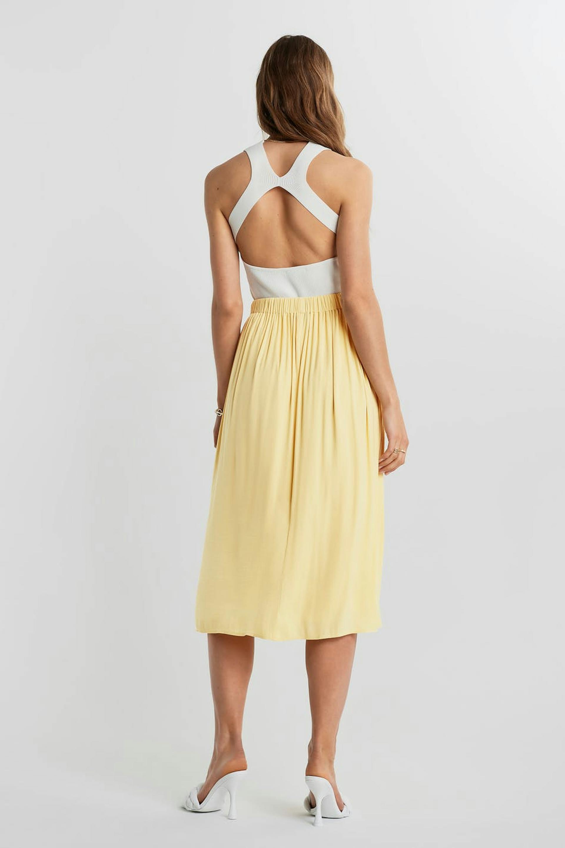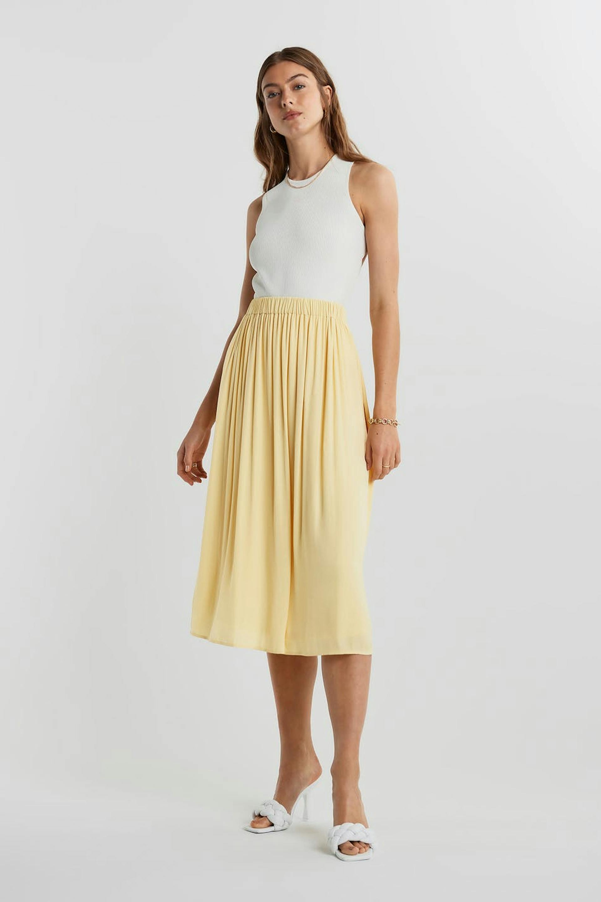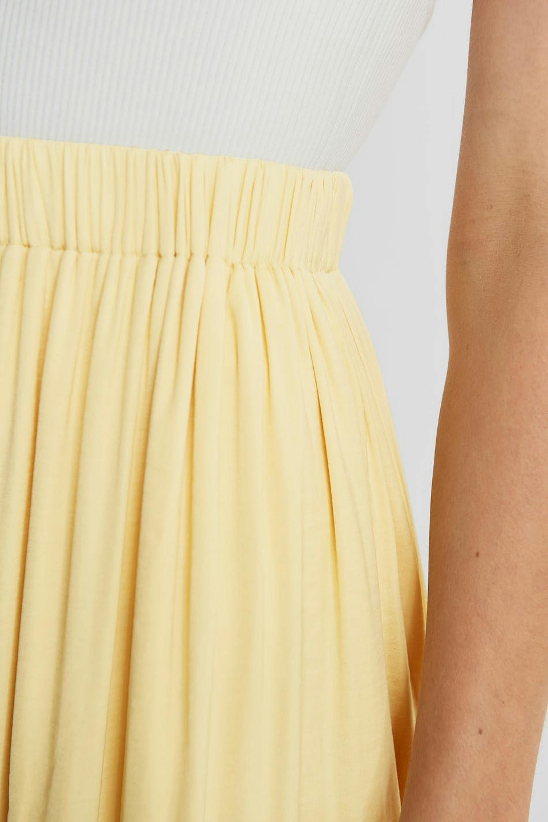 Skirt with an elastic band at the waist. The skirt is yellow and has an underskirt in satin.