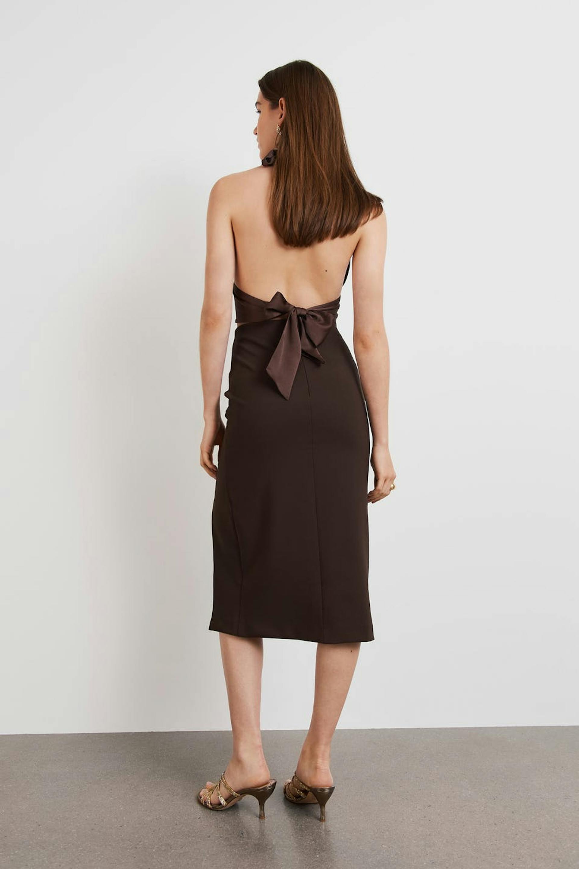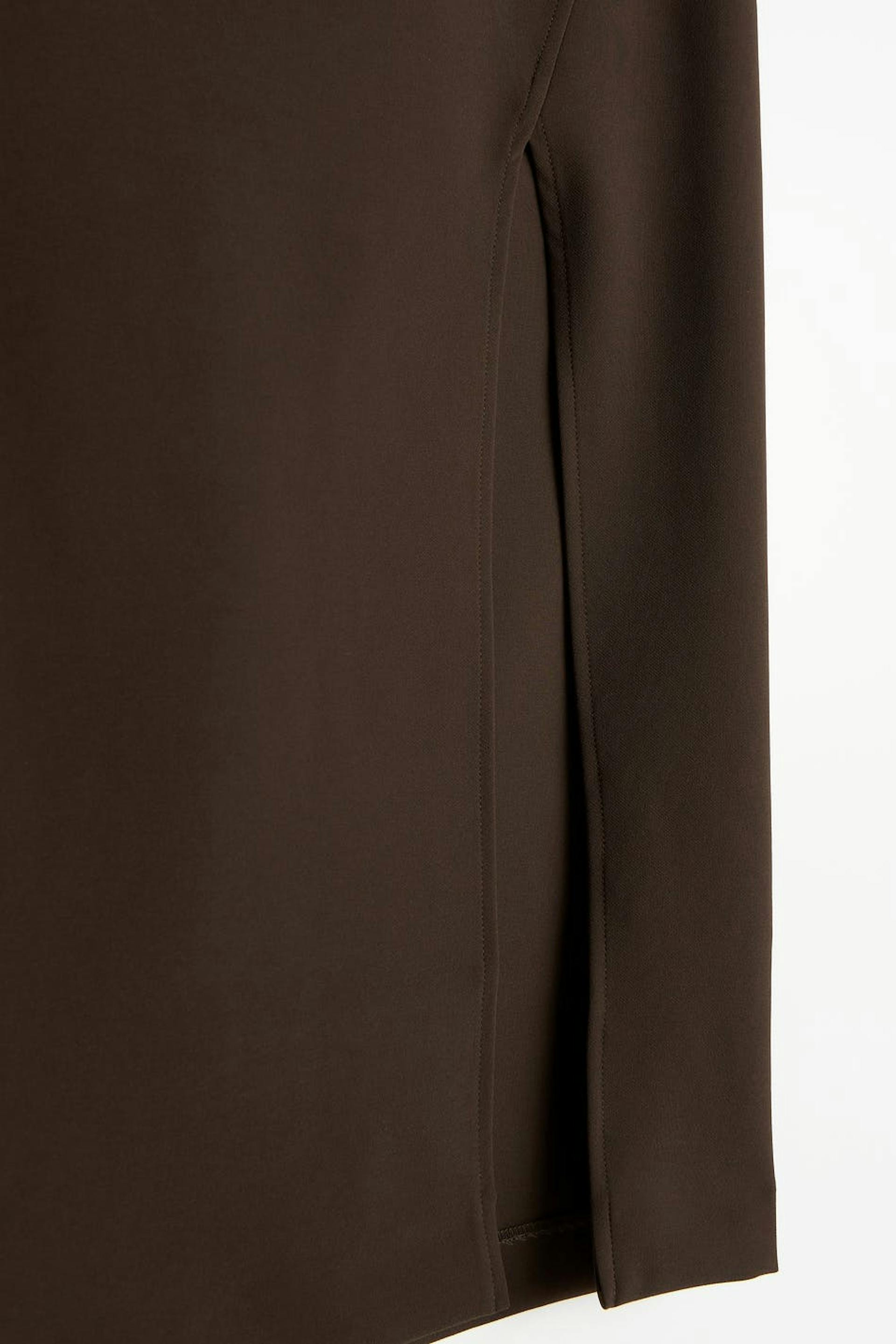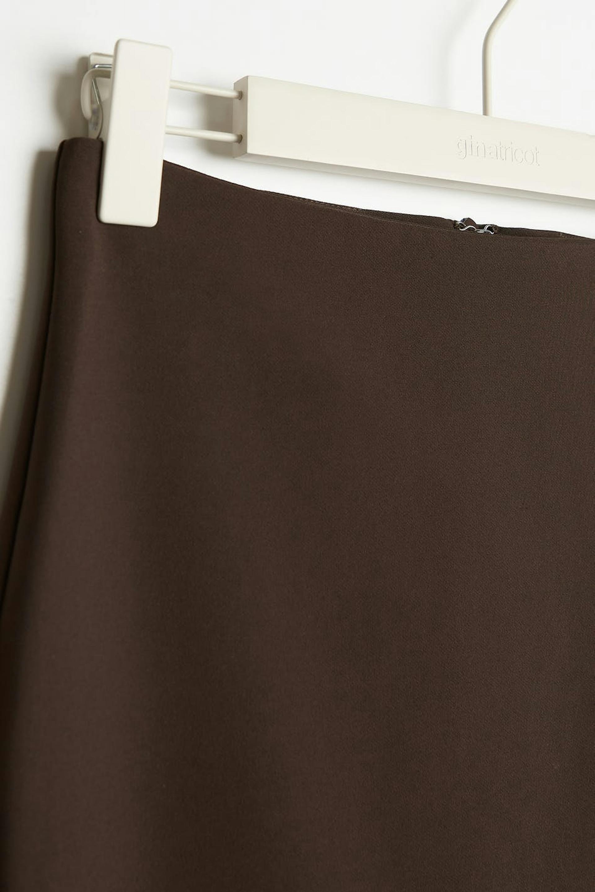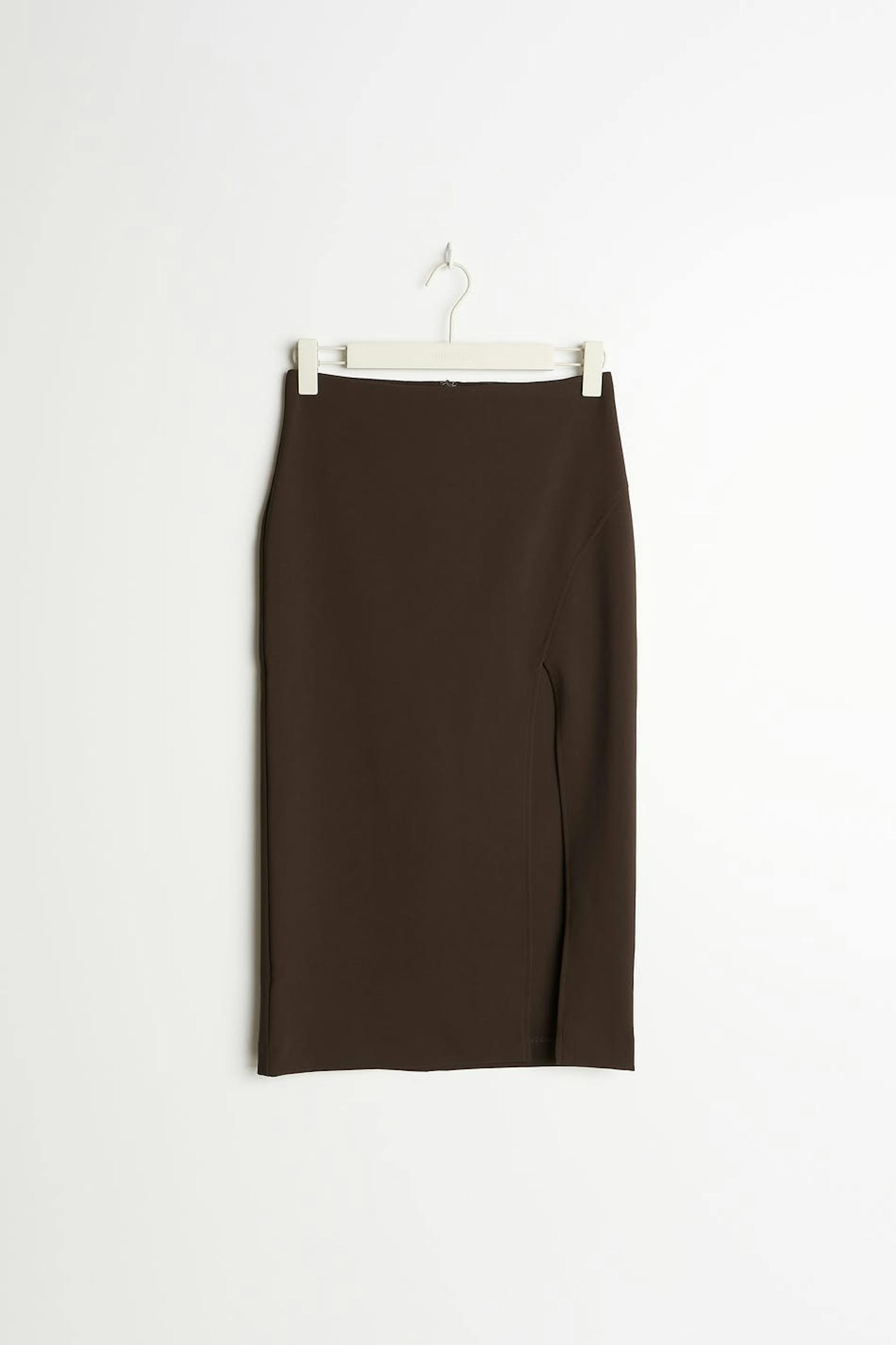 Pencil skirt with a slit at the front. The skirt is perfect for the party and brown and has comfortable stretch with a concealed zip at the back.