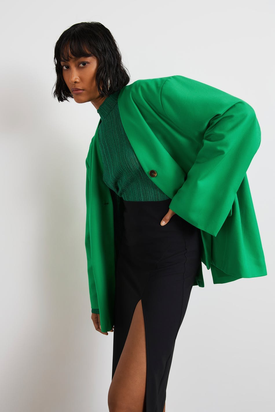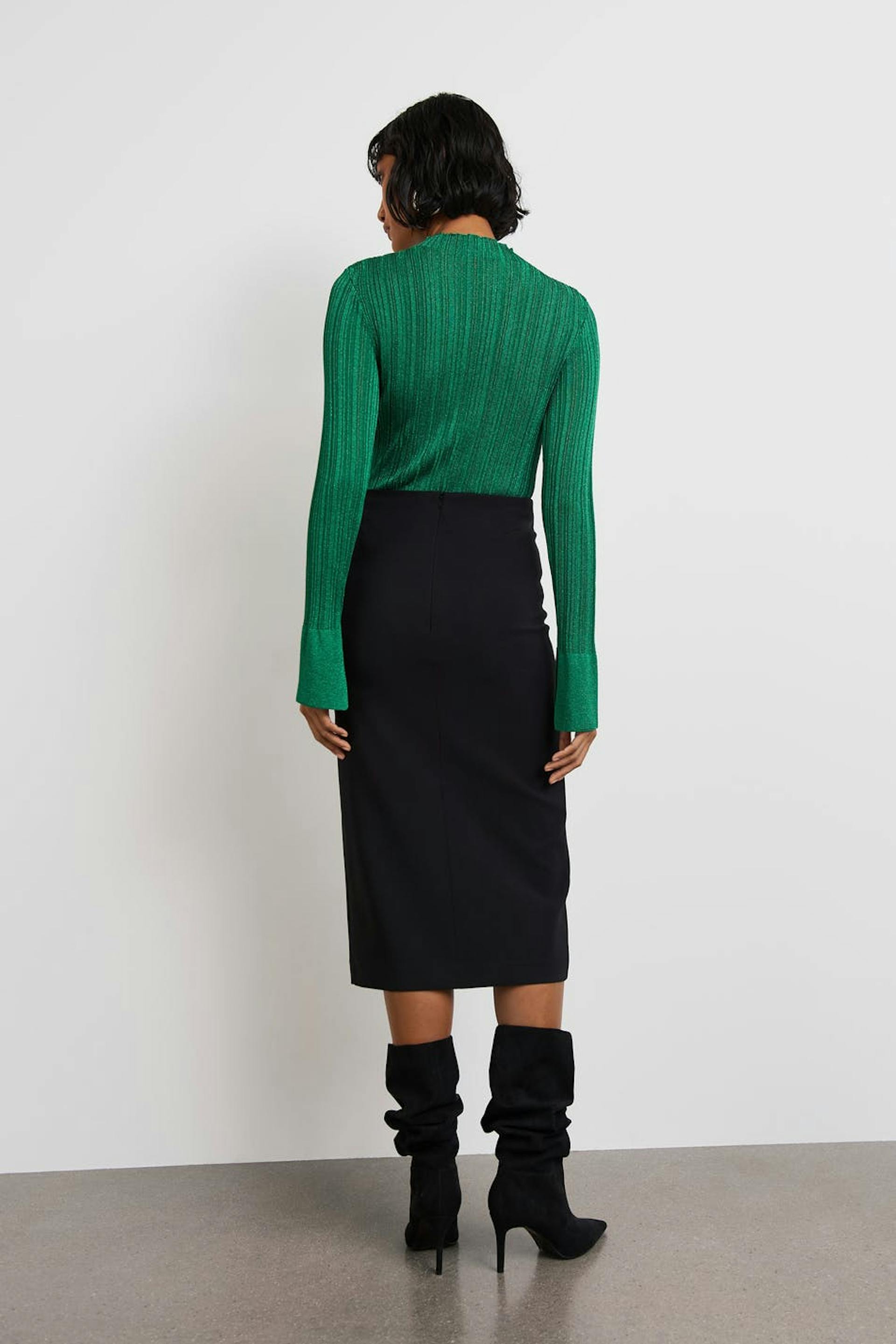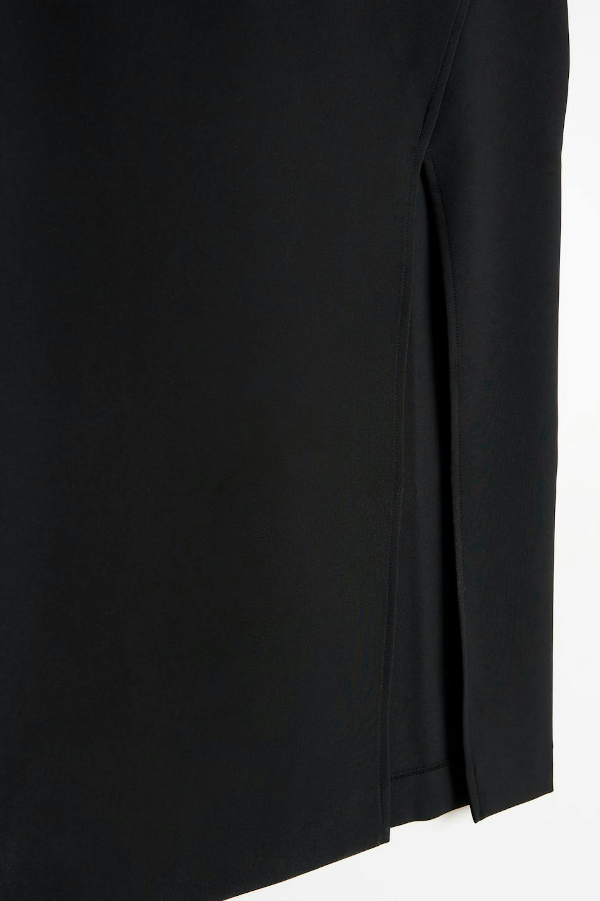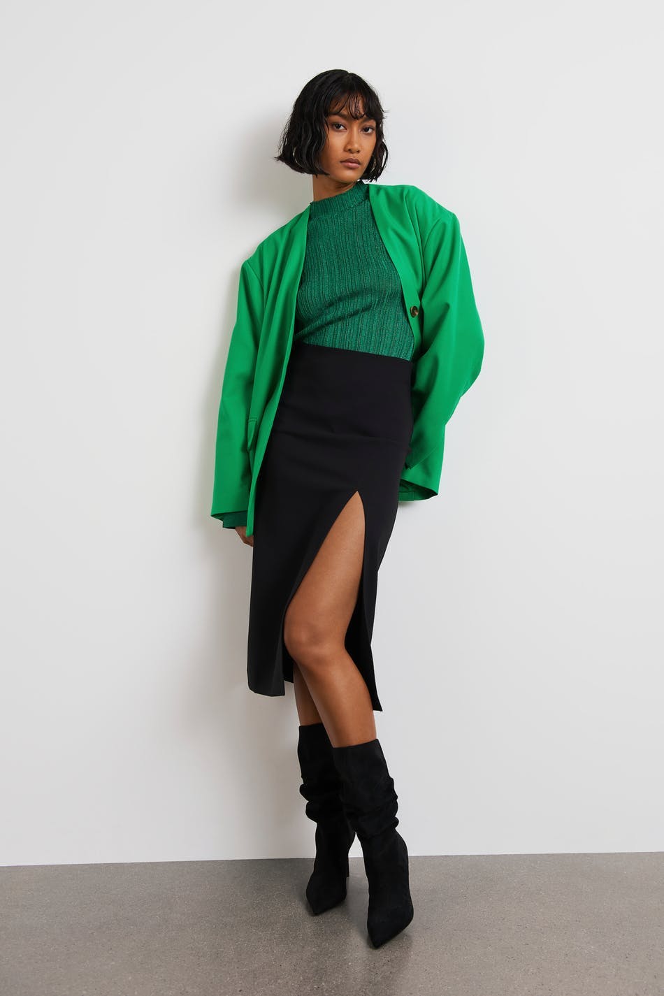 Knee length pencil skirt with a slit at the front. The skirt is perfect for the party and black and has comfortable stretch with a concealed zip at the back.