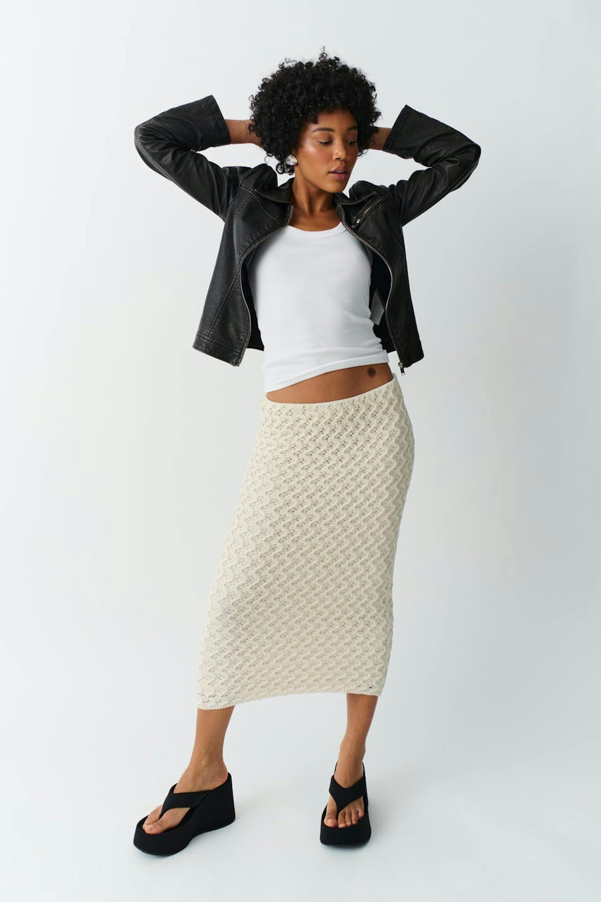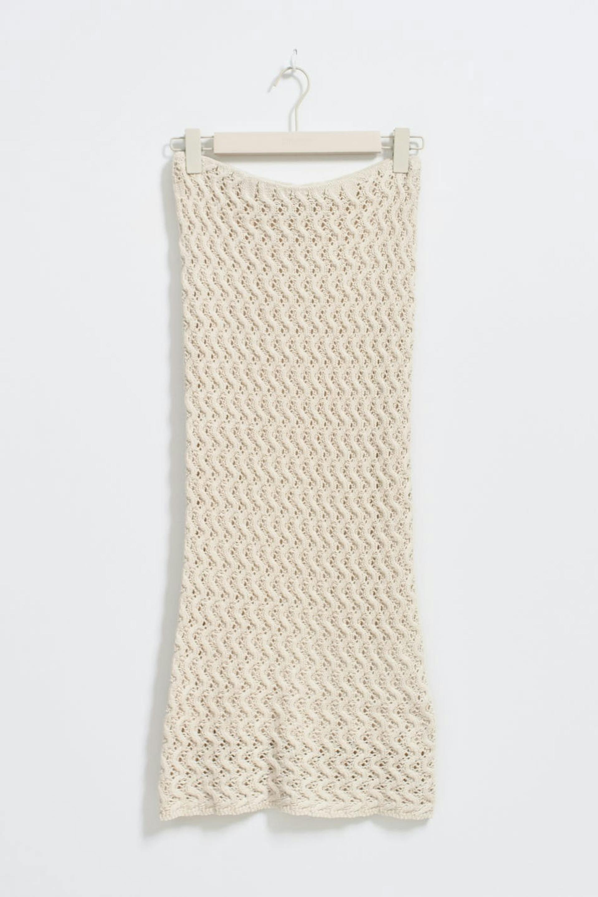 Crocheted skirt with regular fit. The skirt is beige and has midi length.