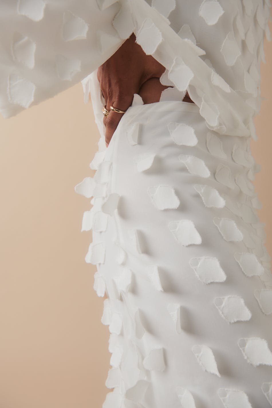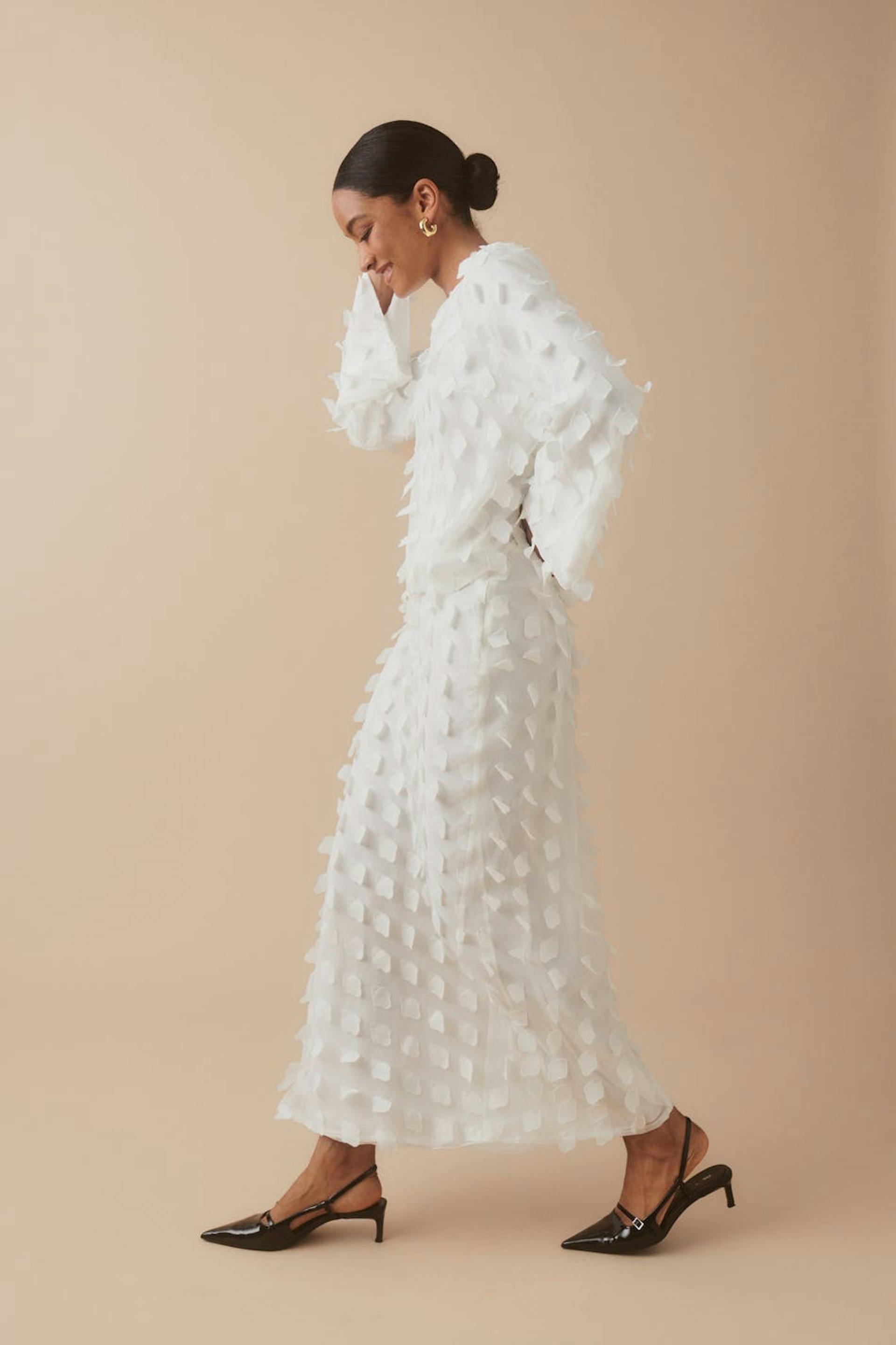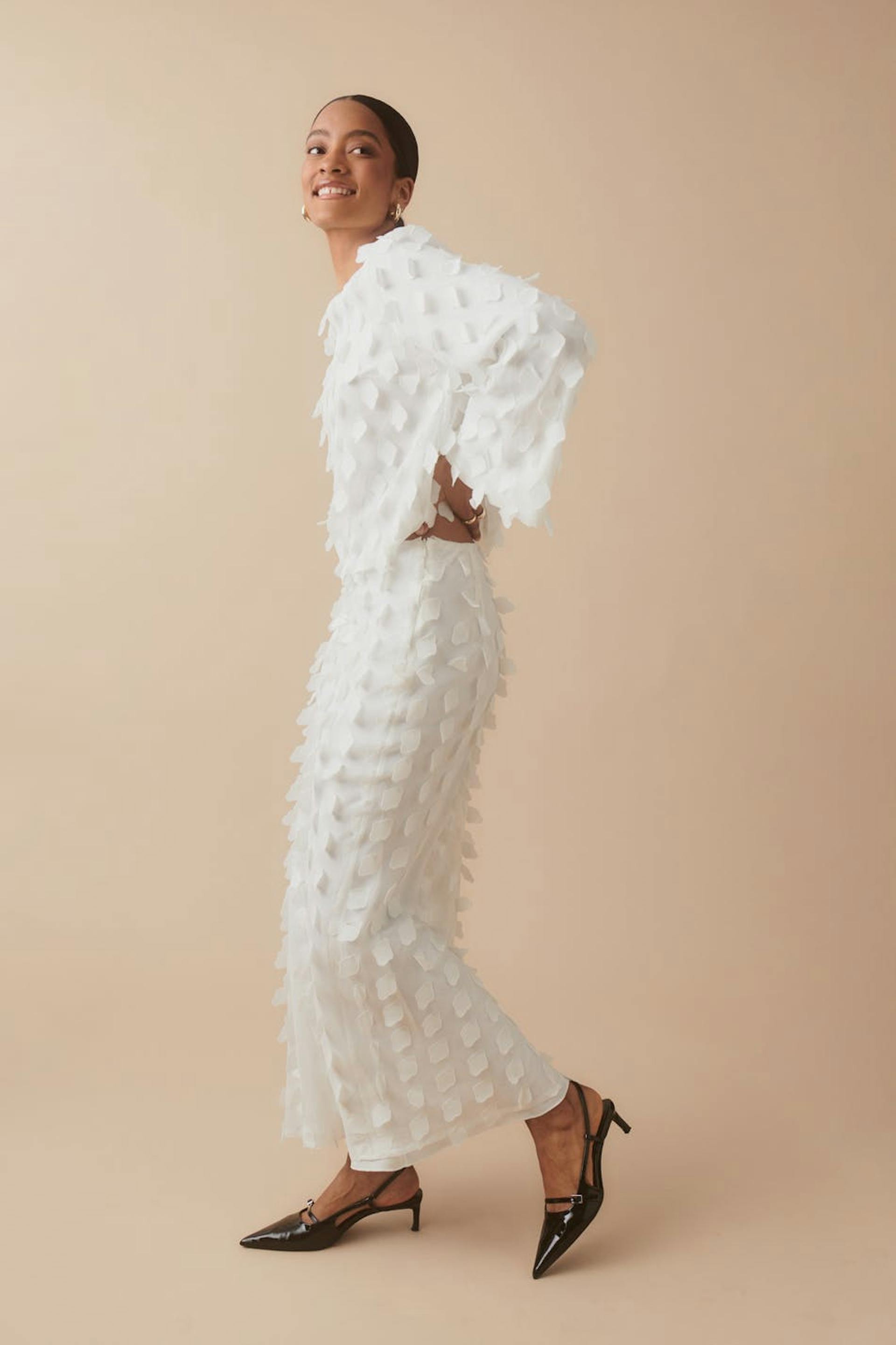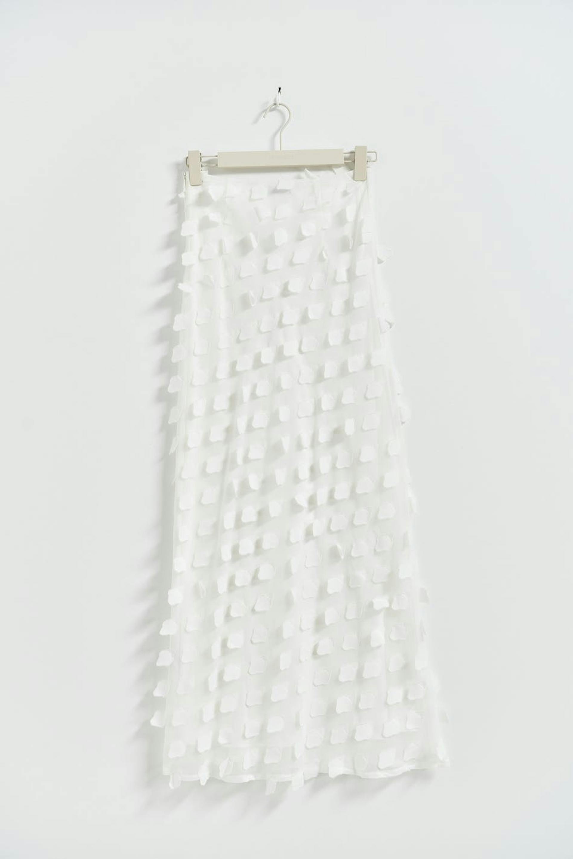 Lined maxi skirt with zip at the side. The skirt is white and has elastic at the back. It has regular fit.