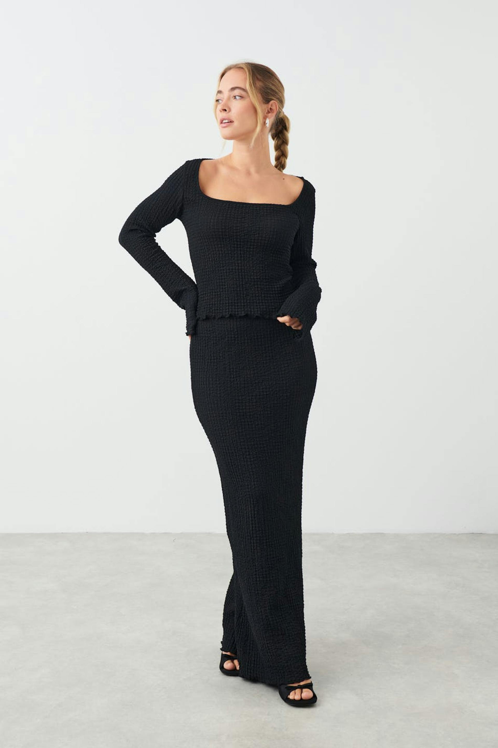 Textured maxi skirt