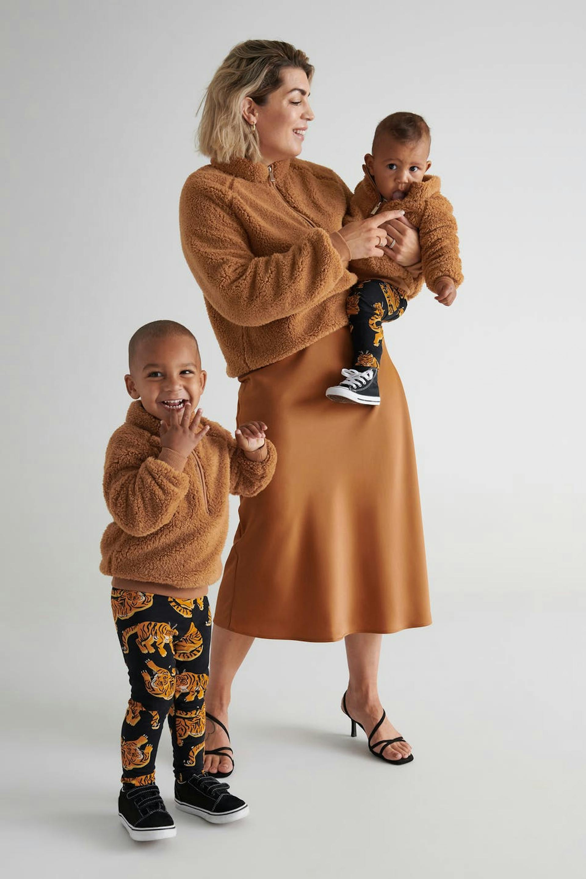 Calf-length skirt. The skirt is brown. It is made of satin.