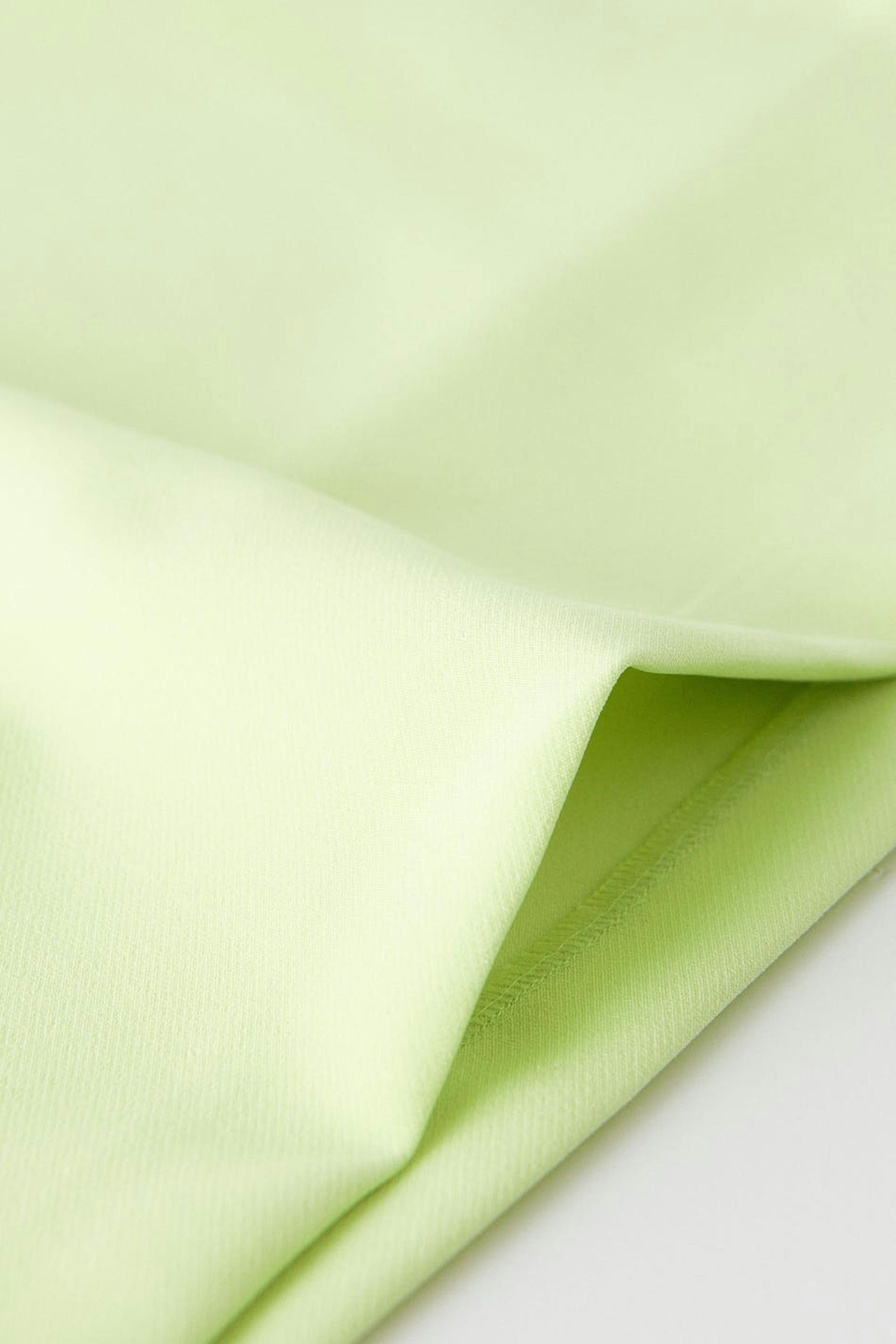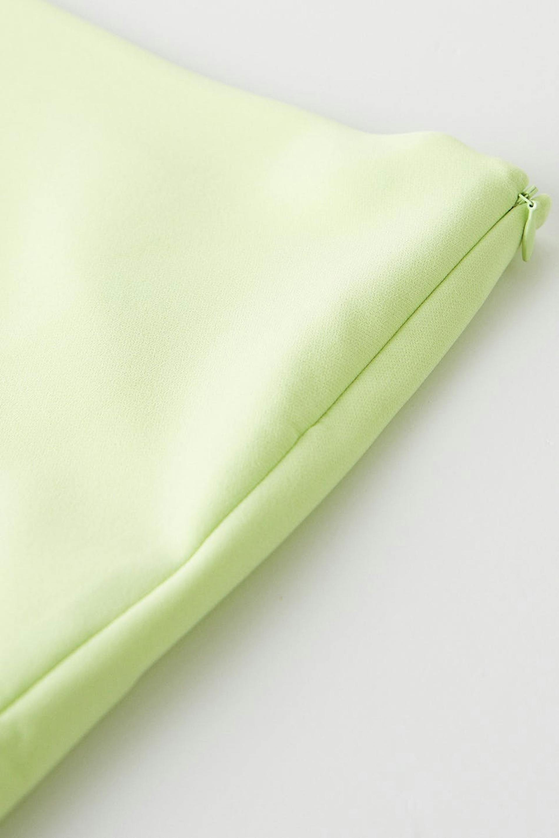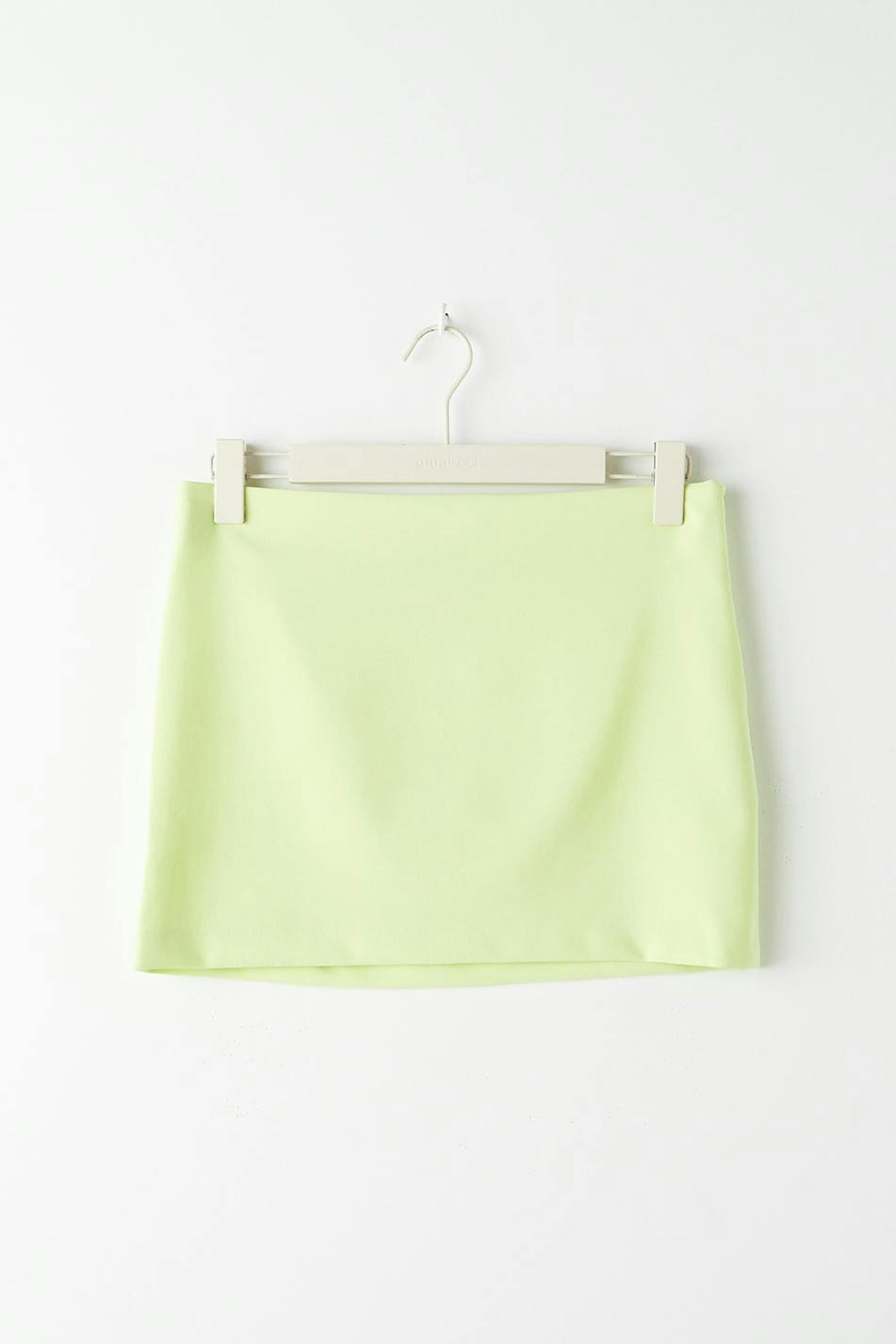 Mini skirt with low waist. The skirt is green and has a fitted fit with a zip in the side seam.