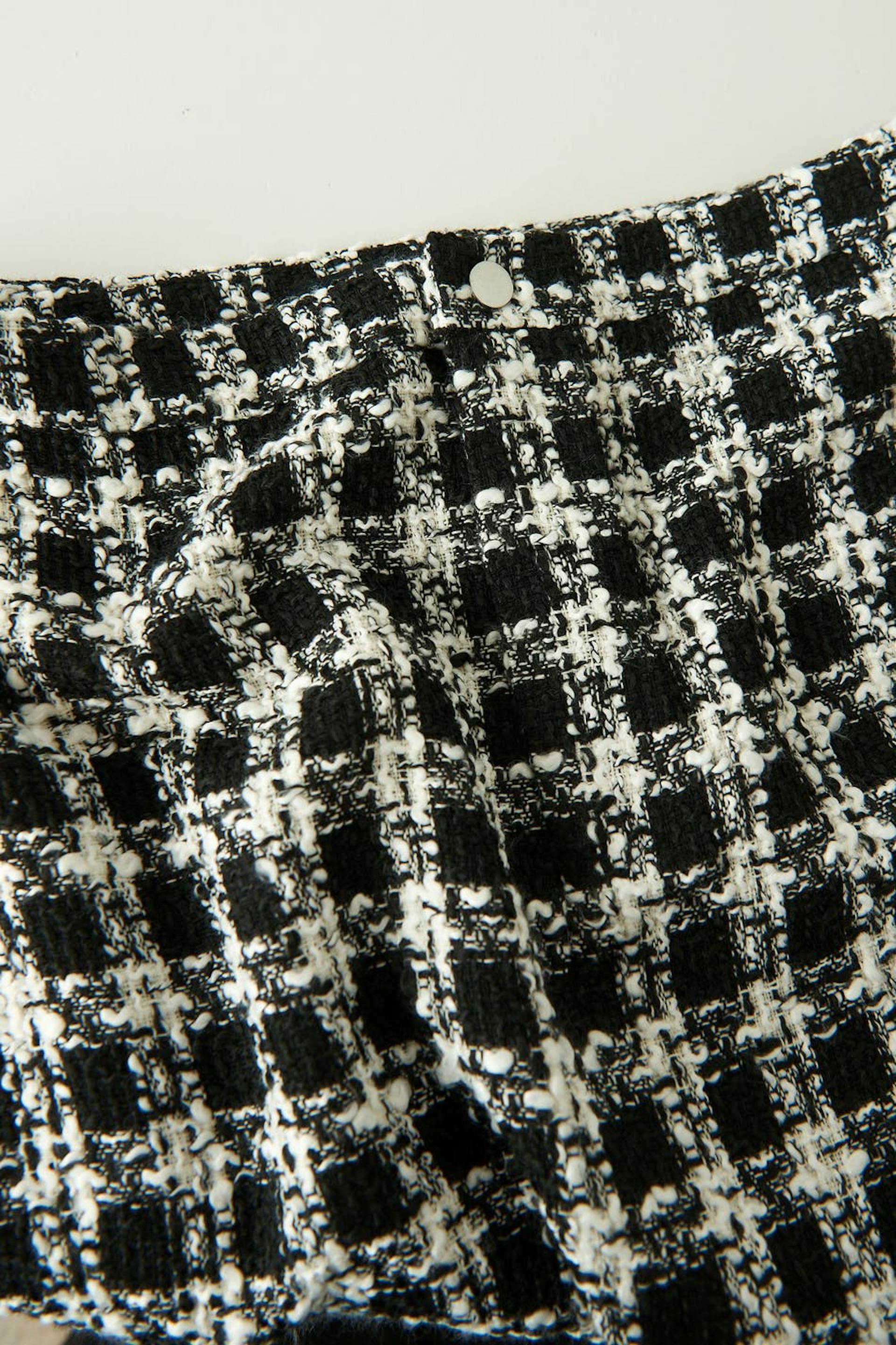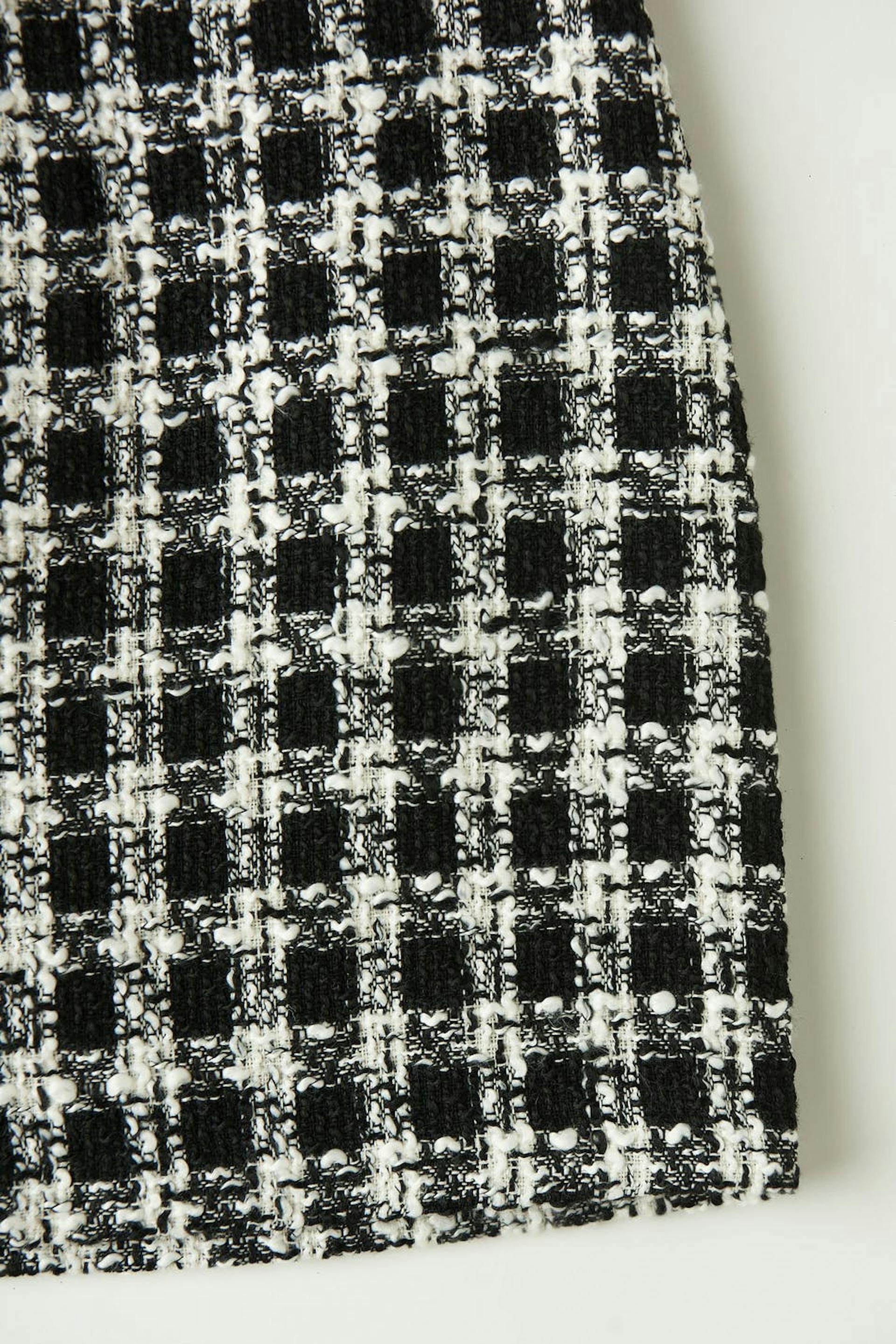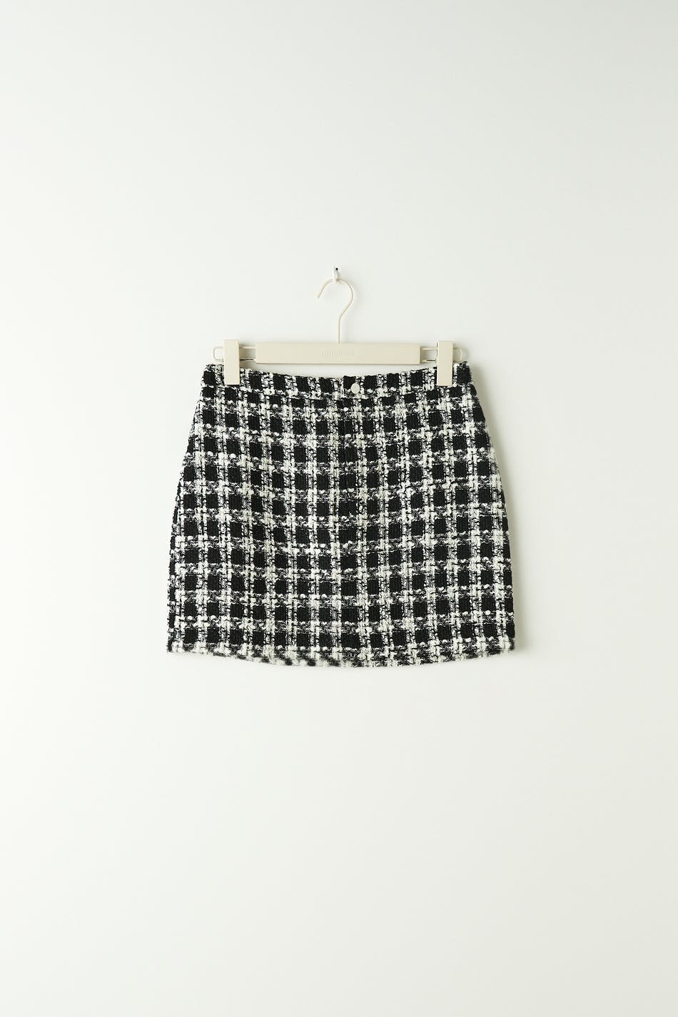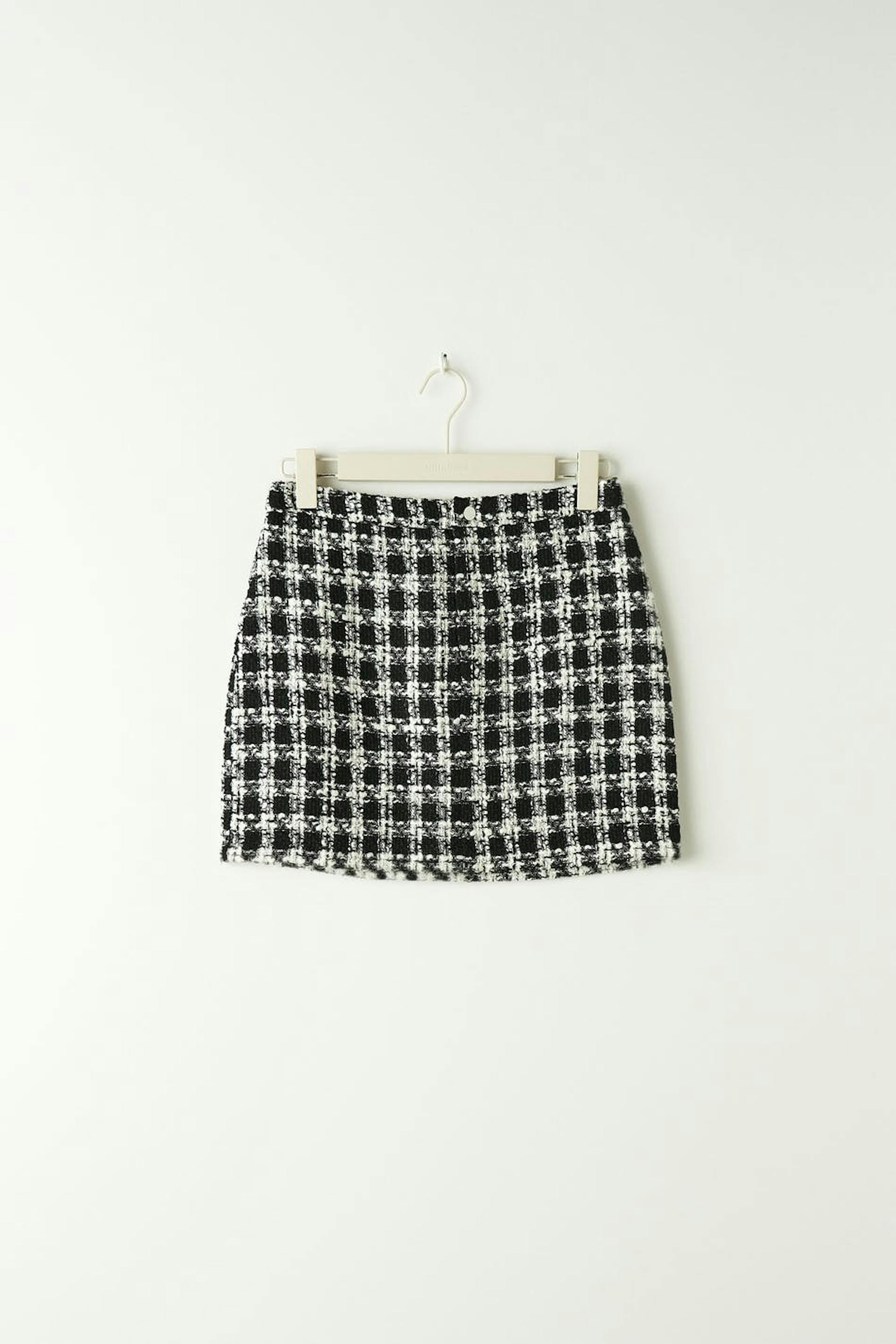 Checked mini skirt with fitted fit. The skirt is black and has zip fly.
