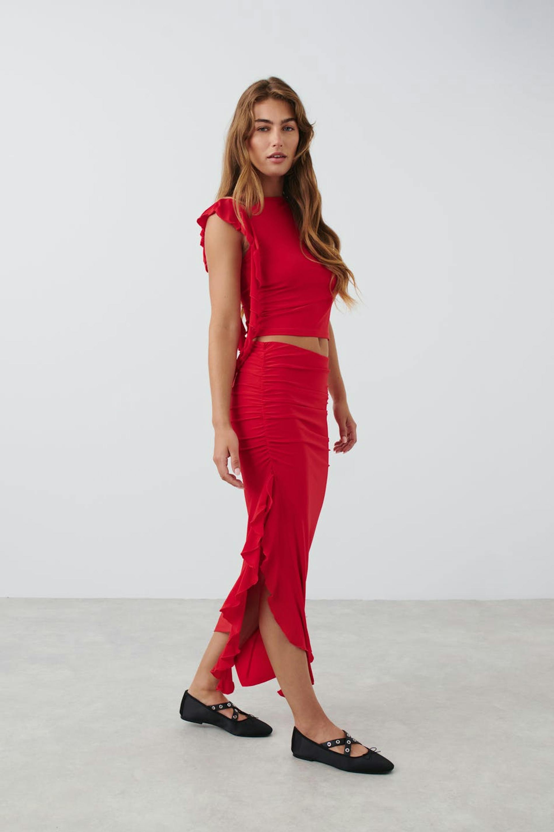 Rusched frill skirt