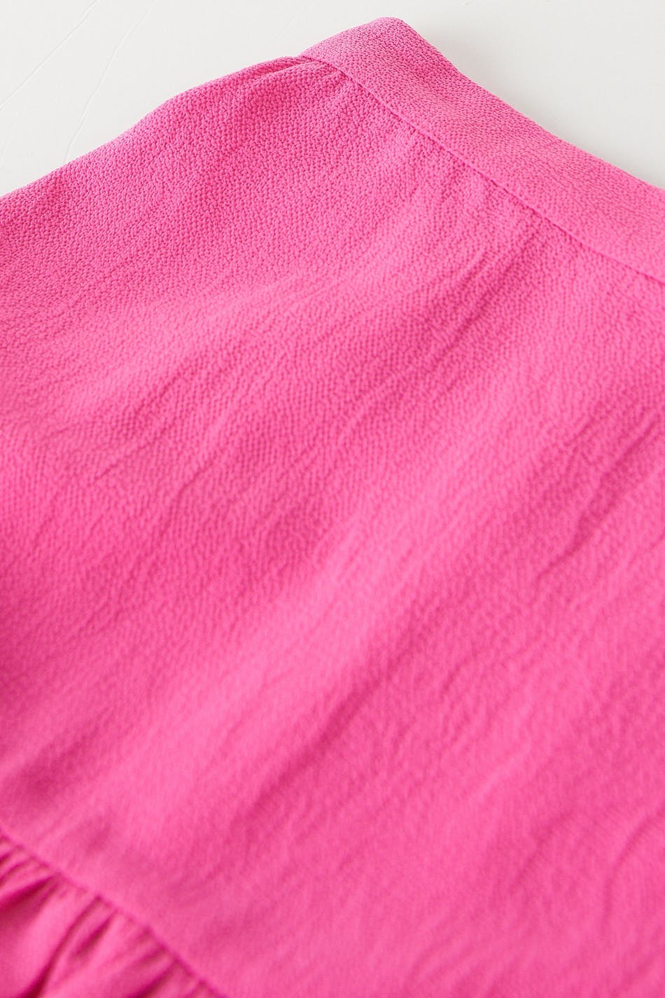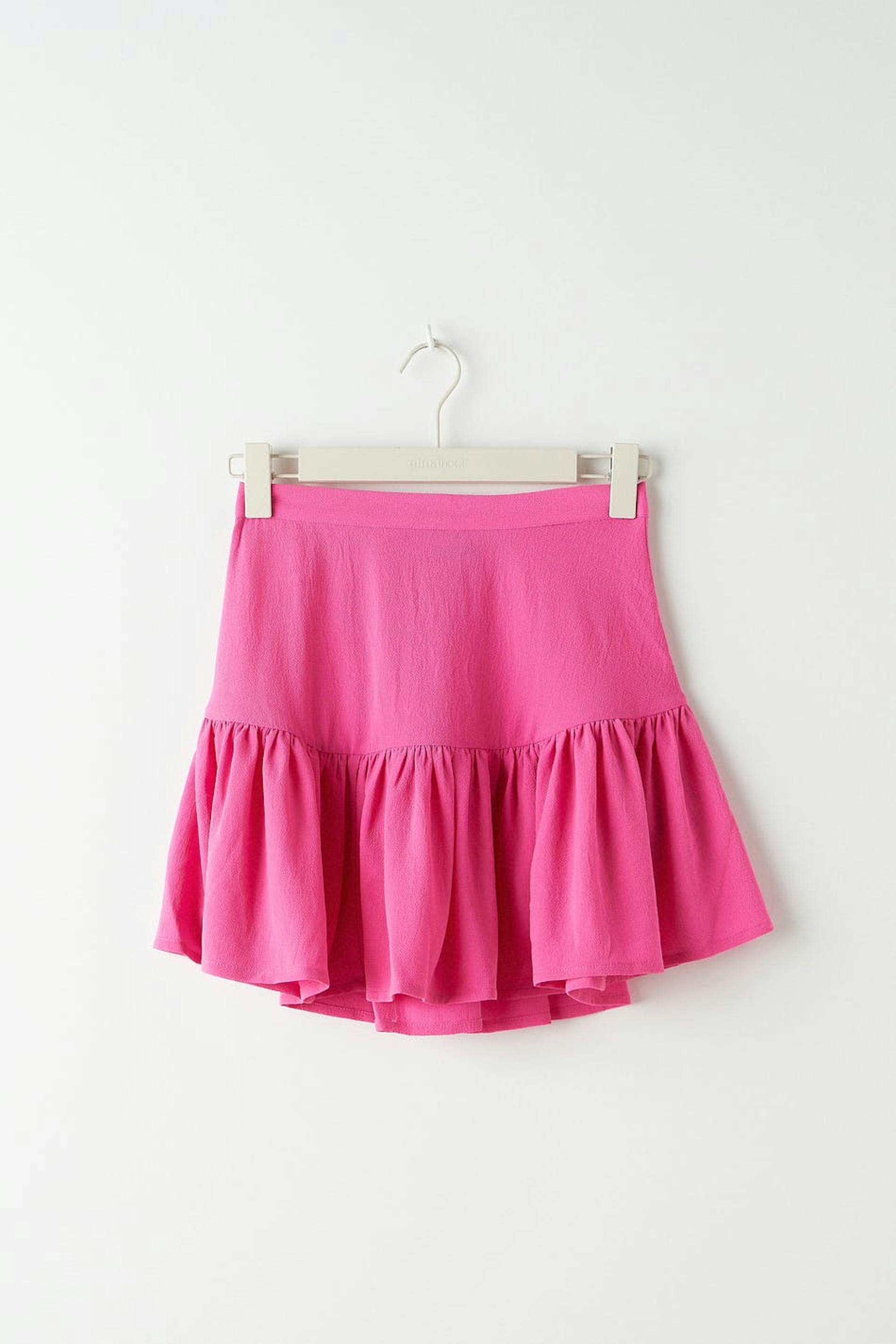 Short frill skirt with elastic at the back. The skirt is pink and has a material in recycled polyester.