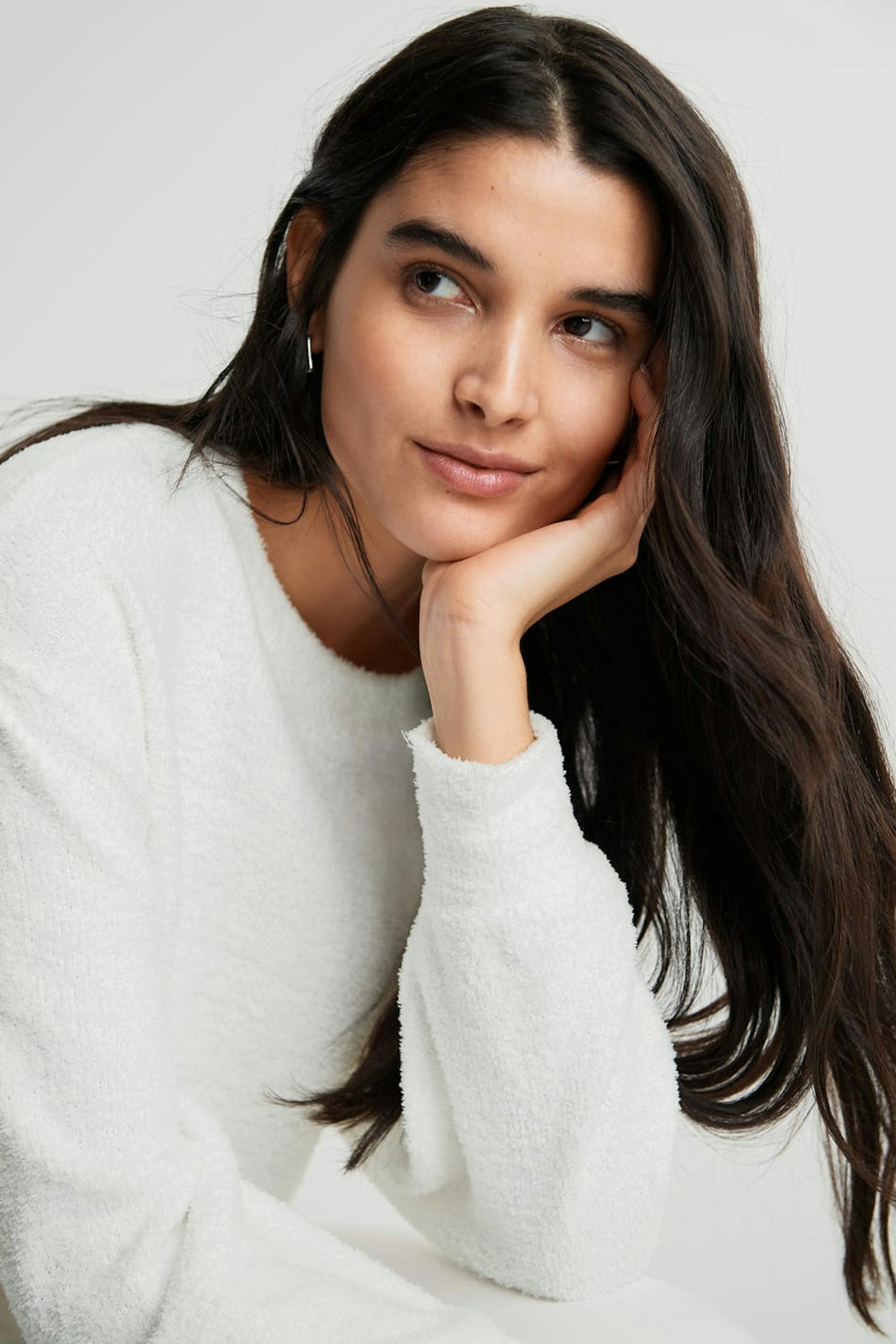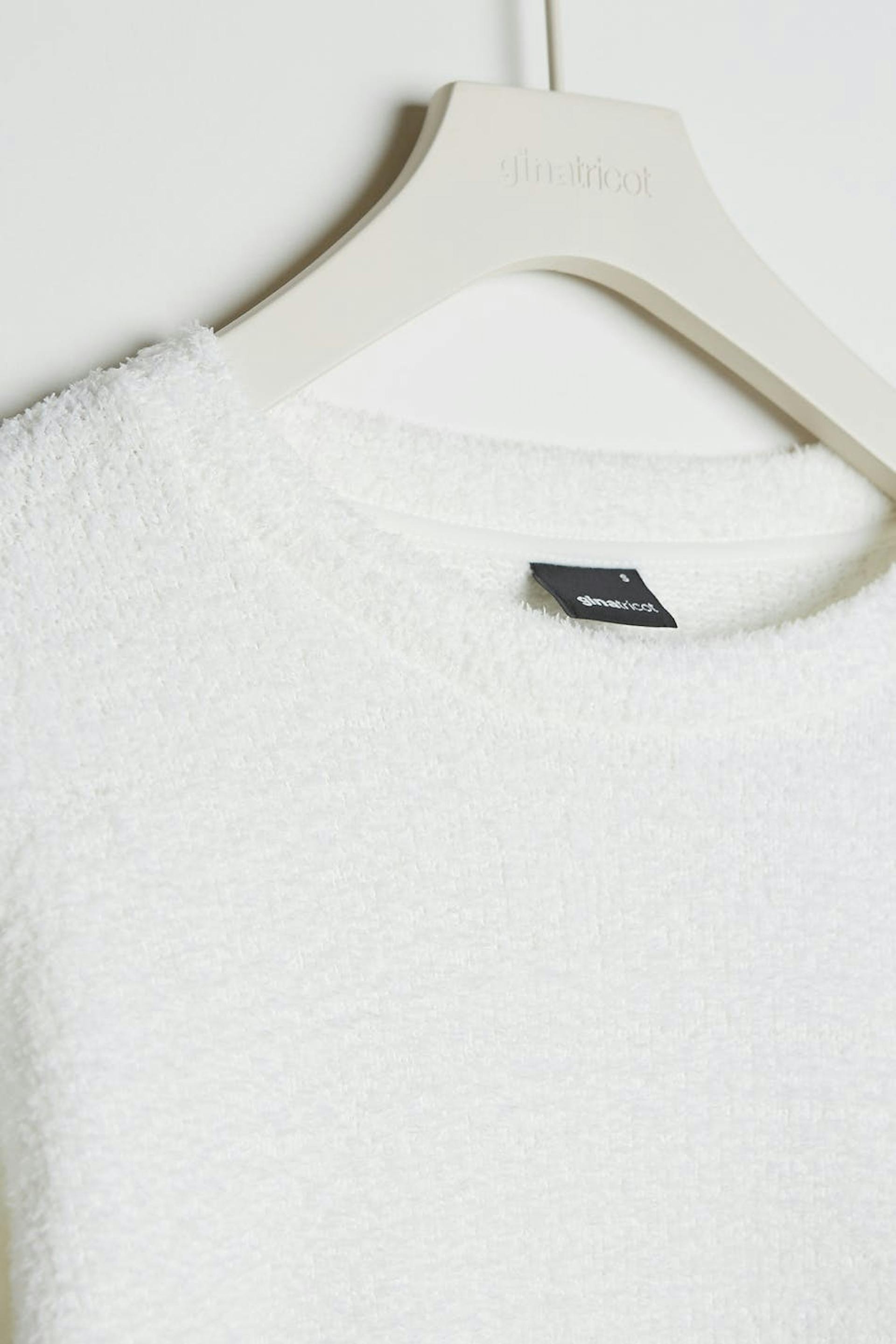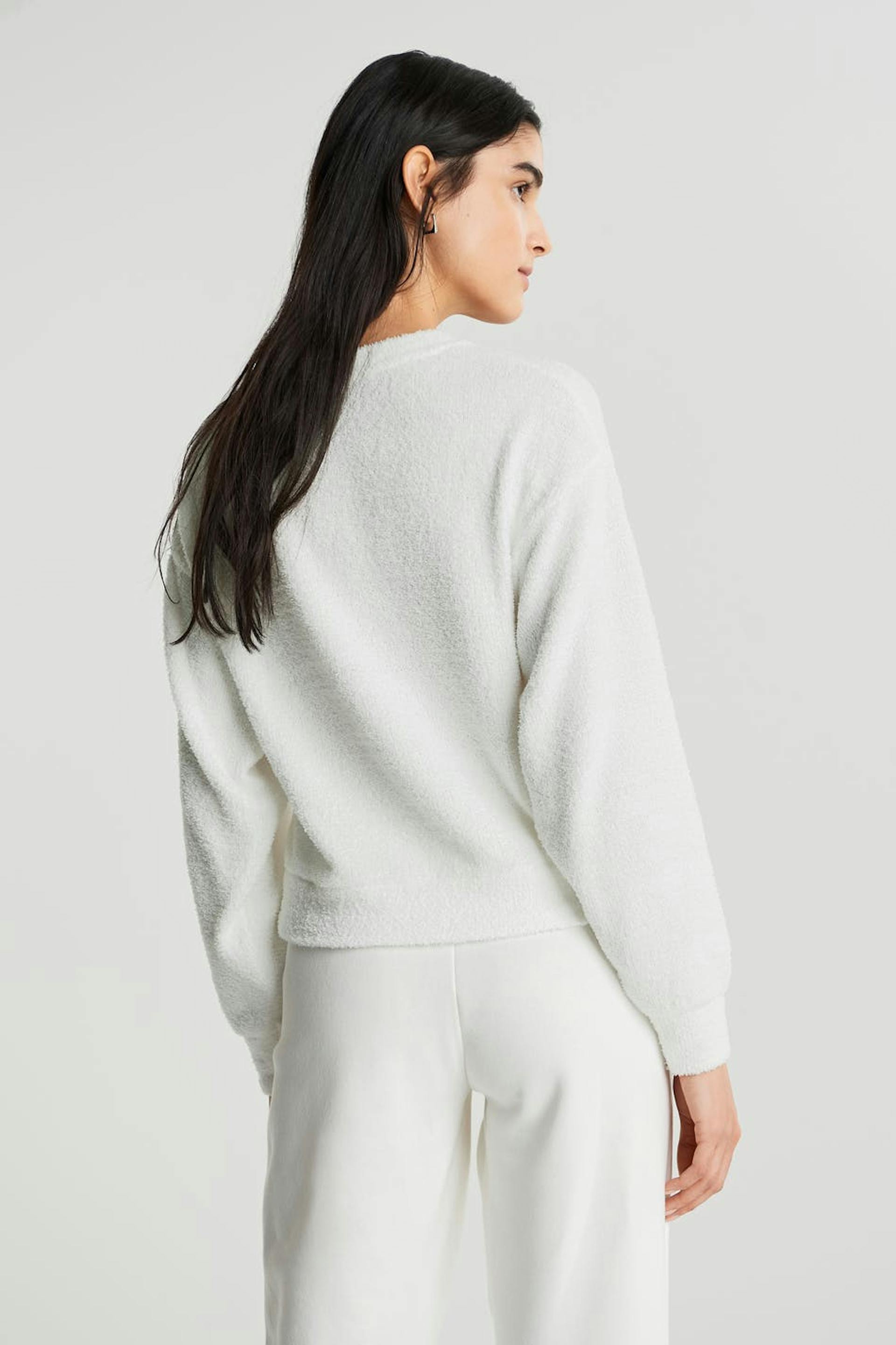 Cosy jumper with a regular fit. The jumper is white and long-sleeved. It is made of jersey.