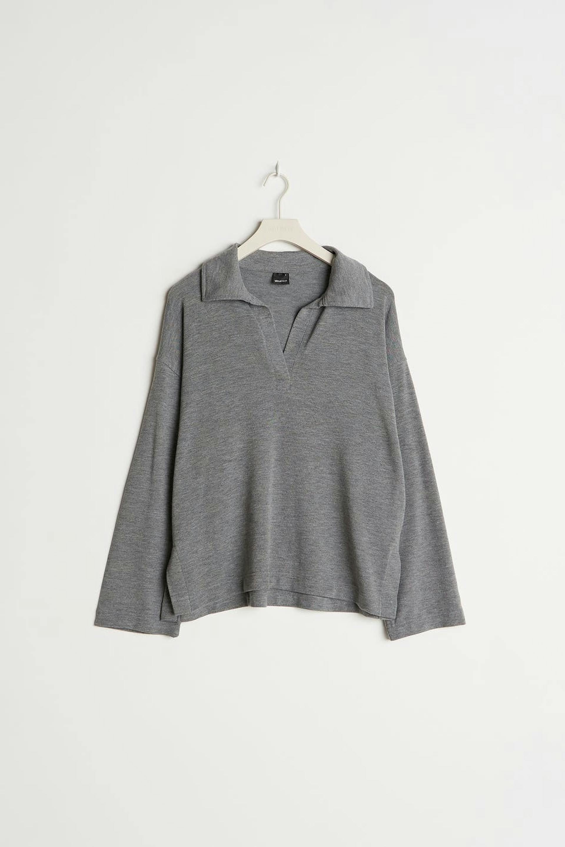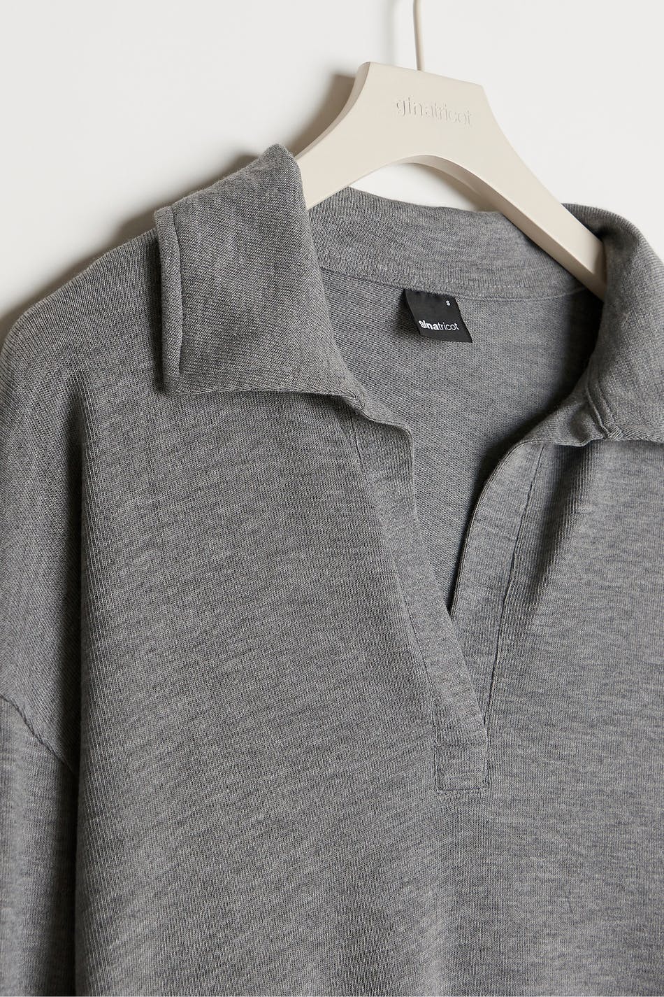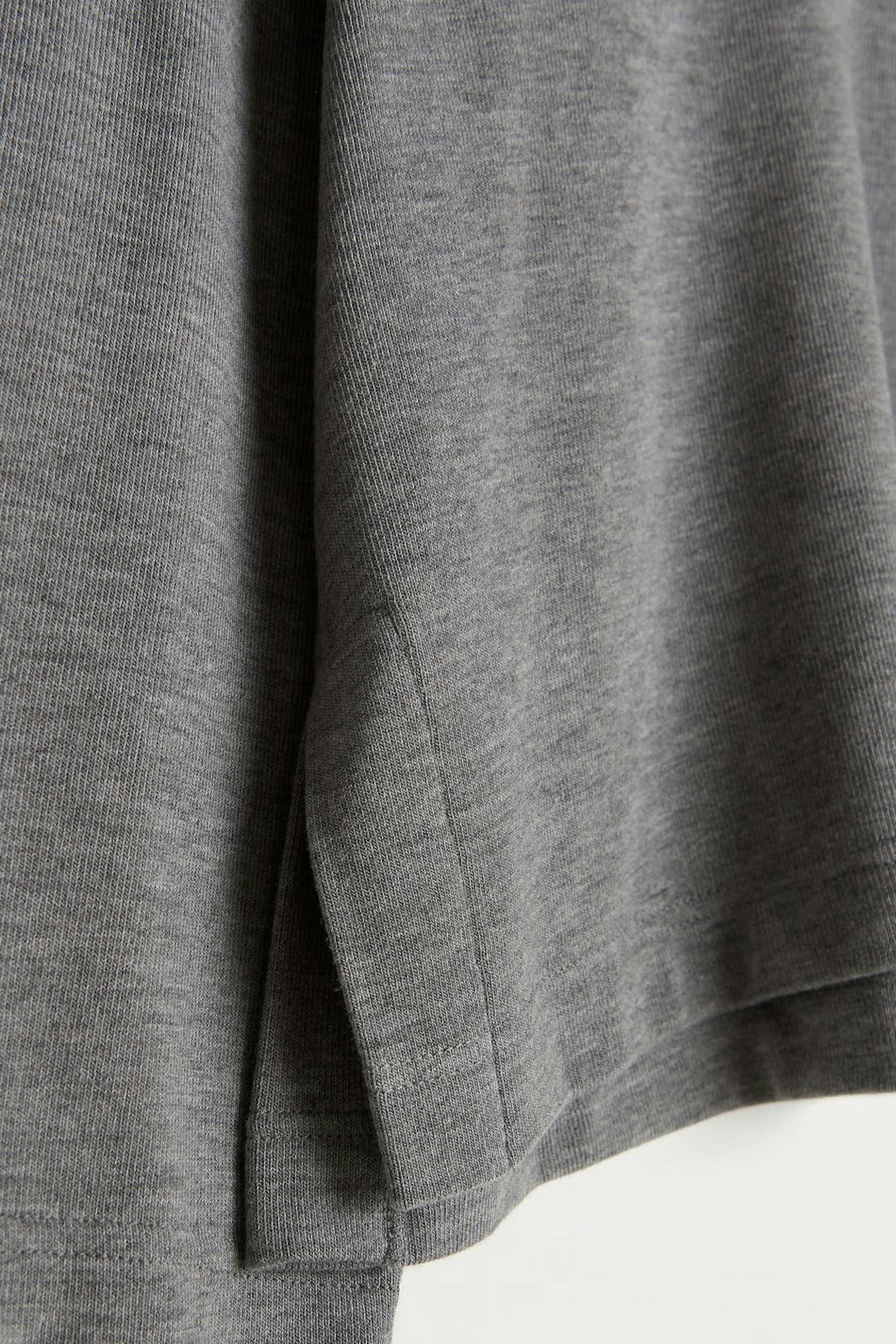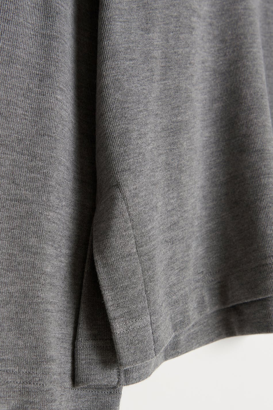 Sweat with an oversize fit. The sweat is grey and has a soft quality in jersey. It has a V-neck, a collar, dropped shoulders, slit on the sides and wide, long sleeves.