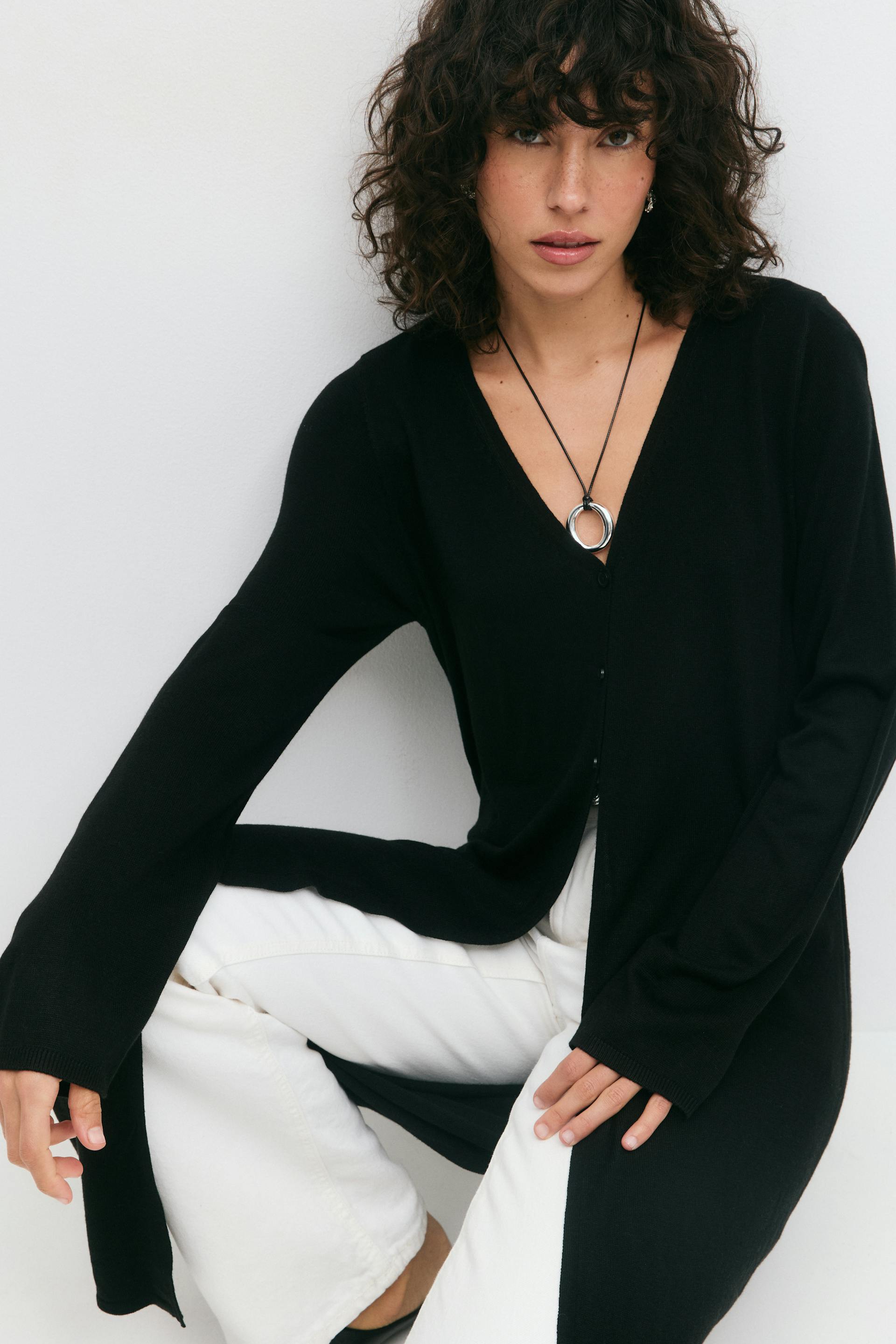 Long knitted cardigan