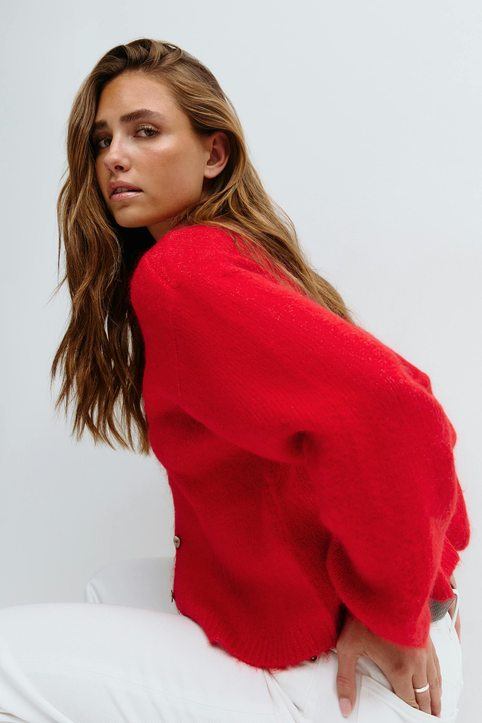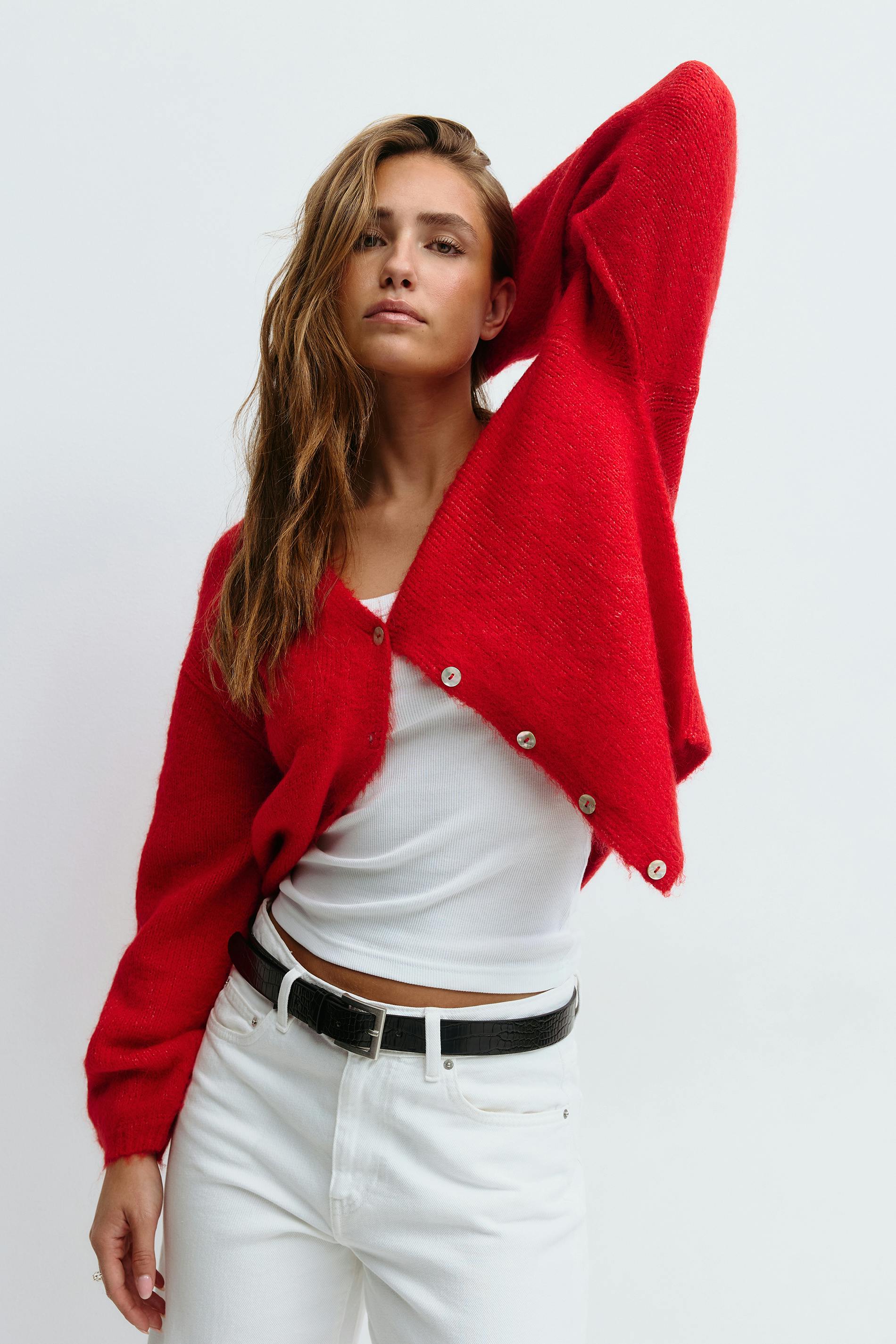 V-neck knitted cardigan