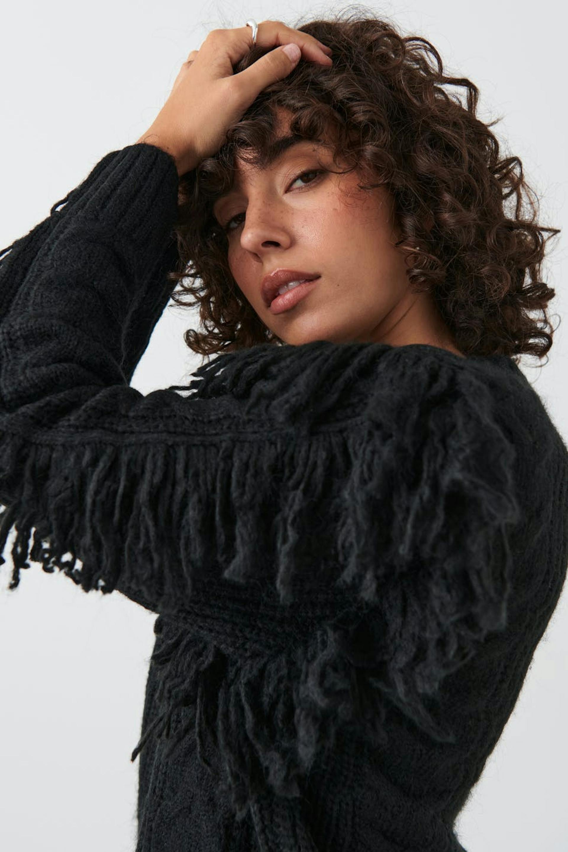 Knitted fringe sweater