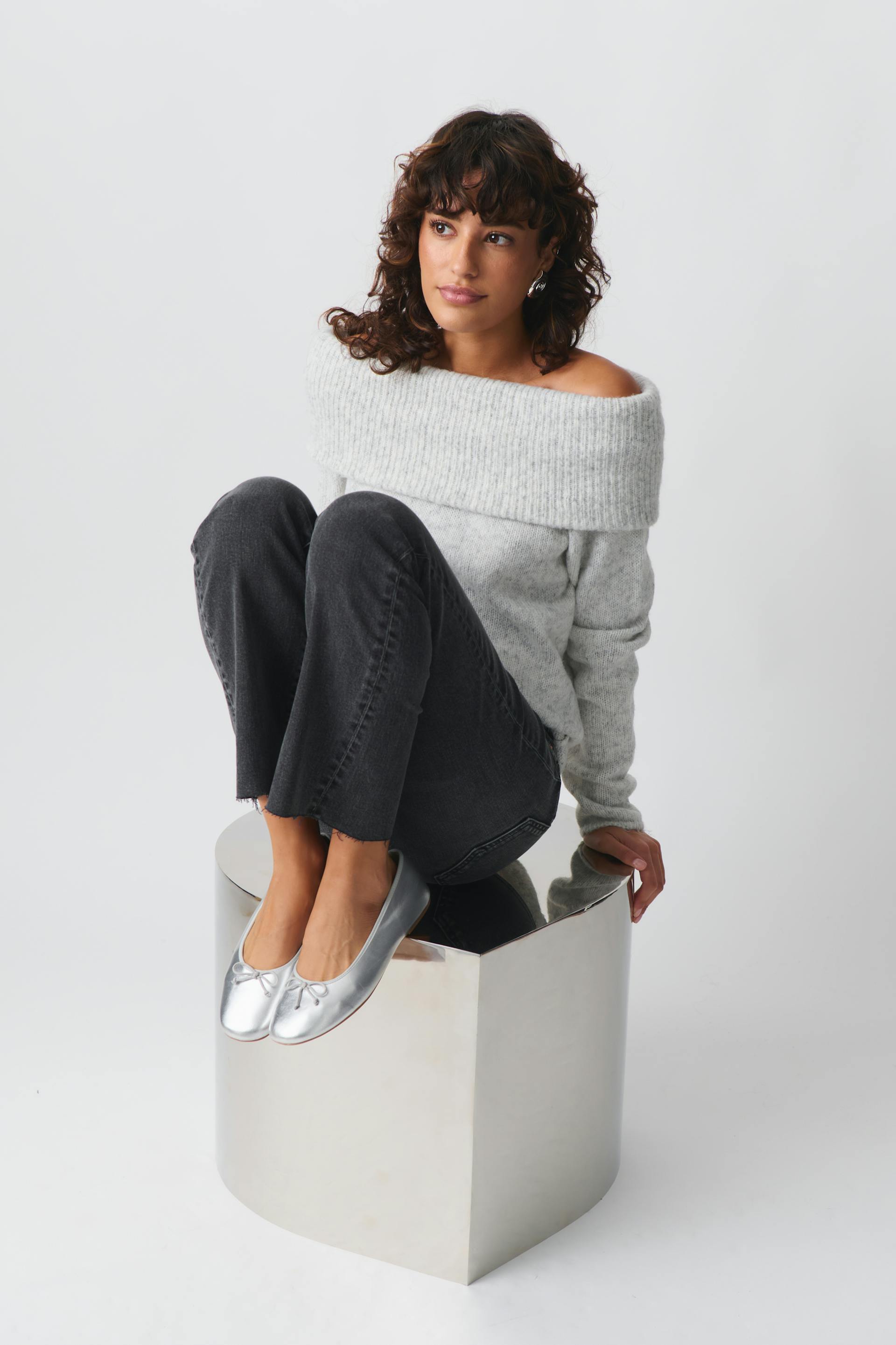 knitted off shoulder sweater