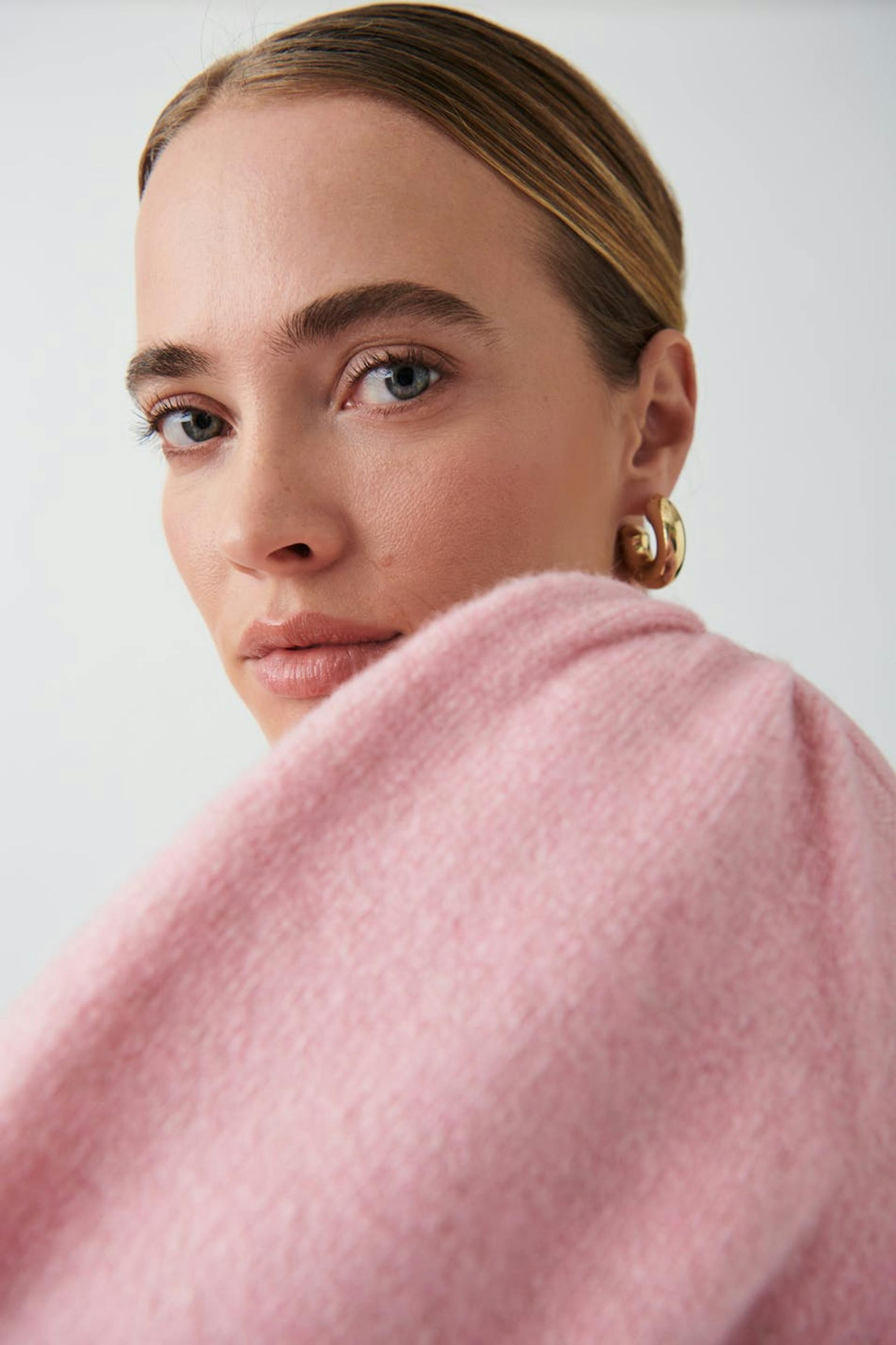 The model wears size 36 and is 173 cm tall