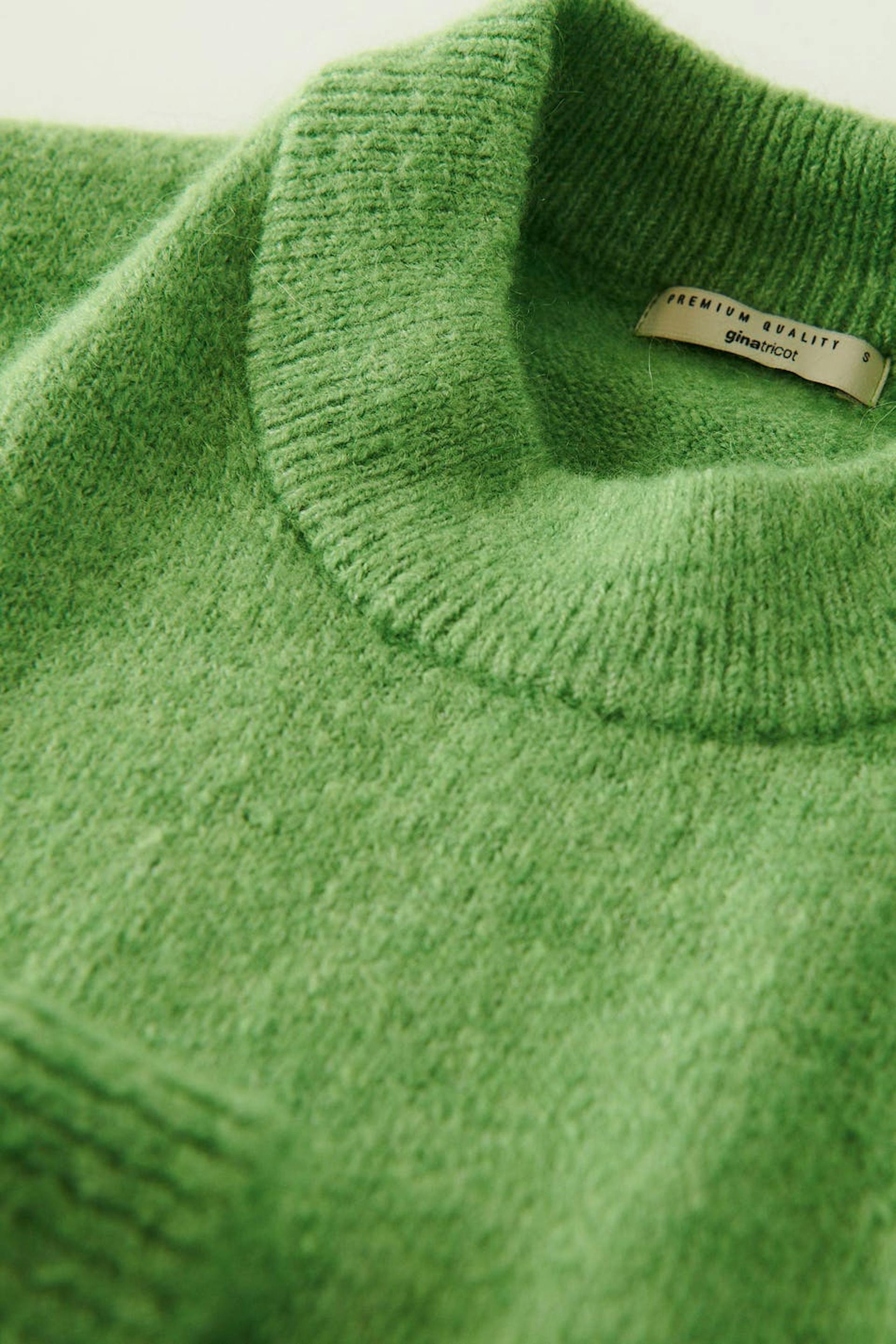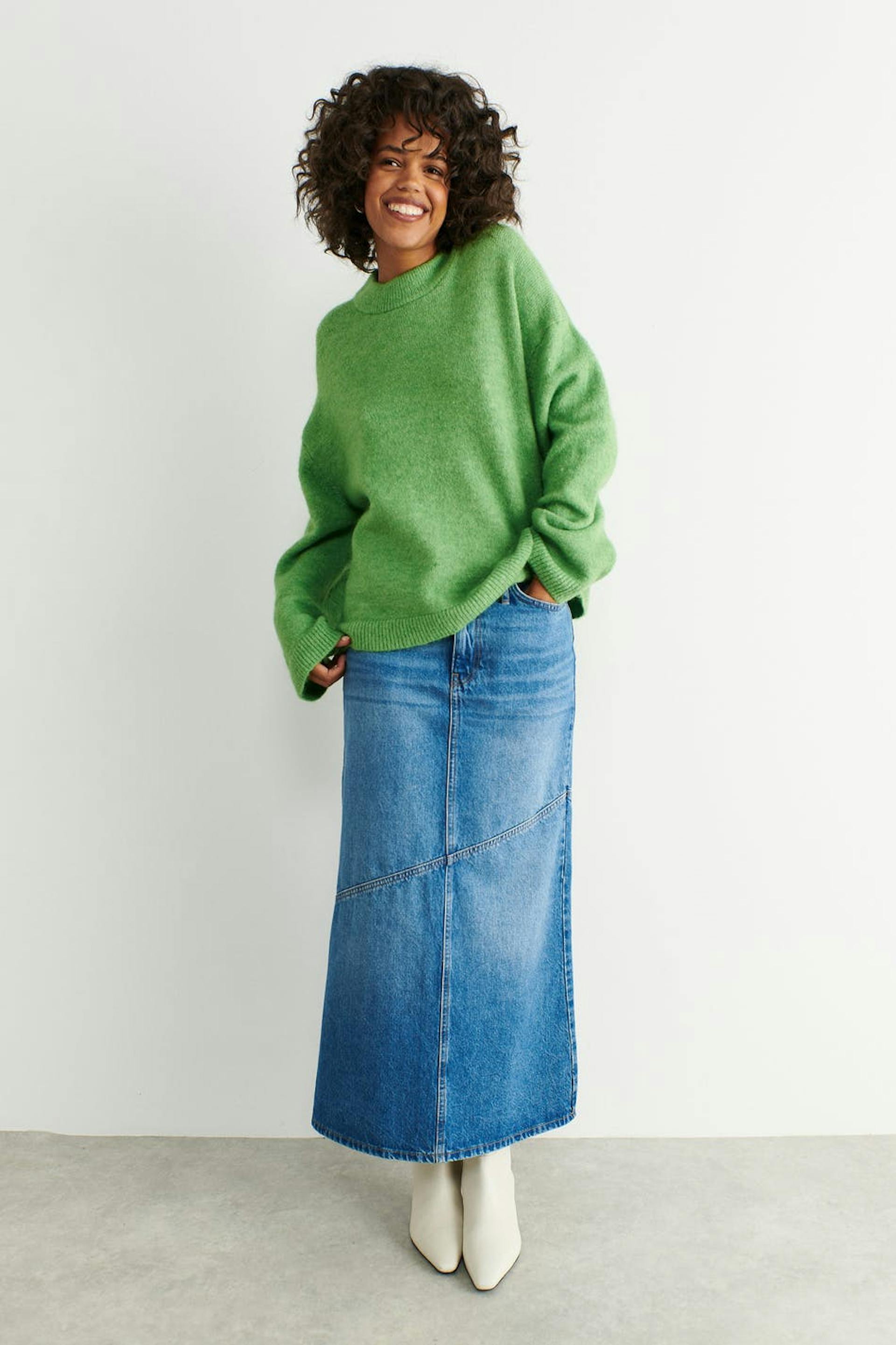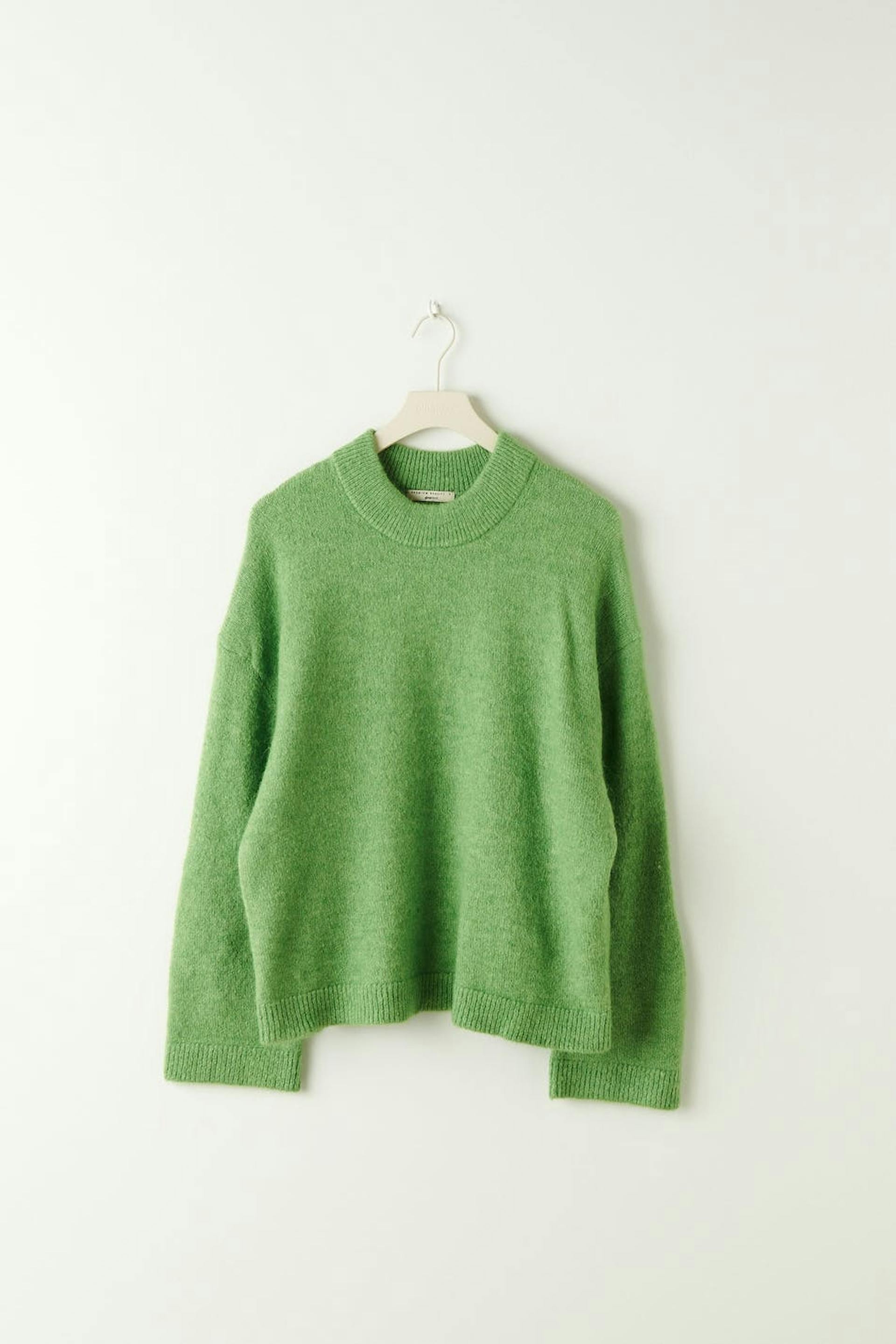 Soft jumper with boxy fit. The jumper is green and has dropped shoulders with a ribbed hem.
